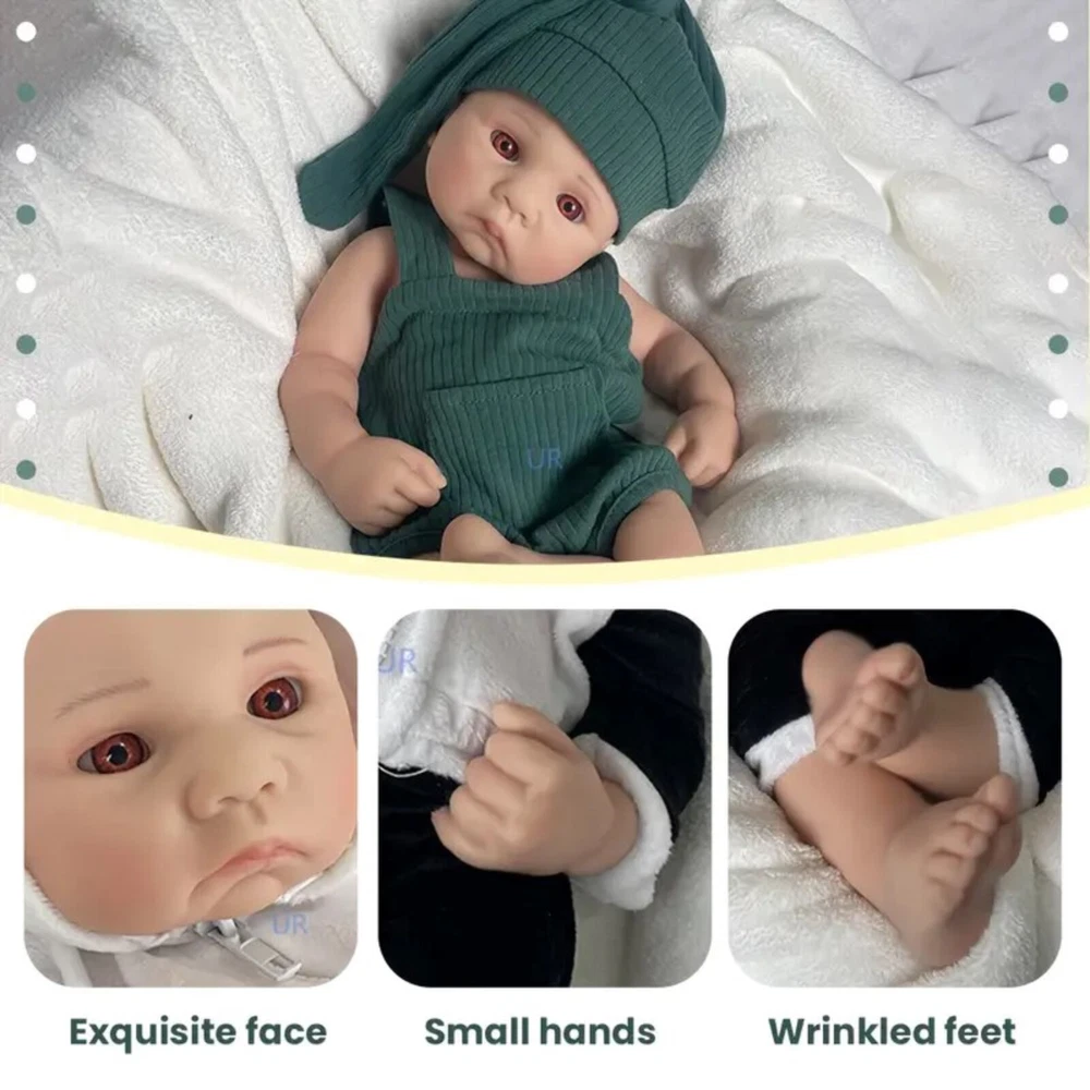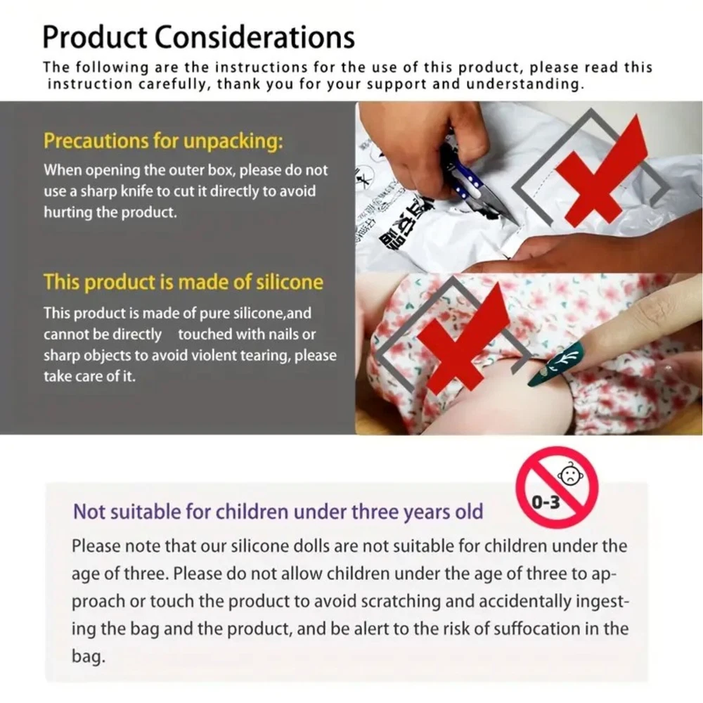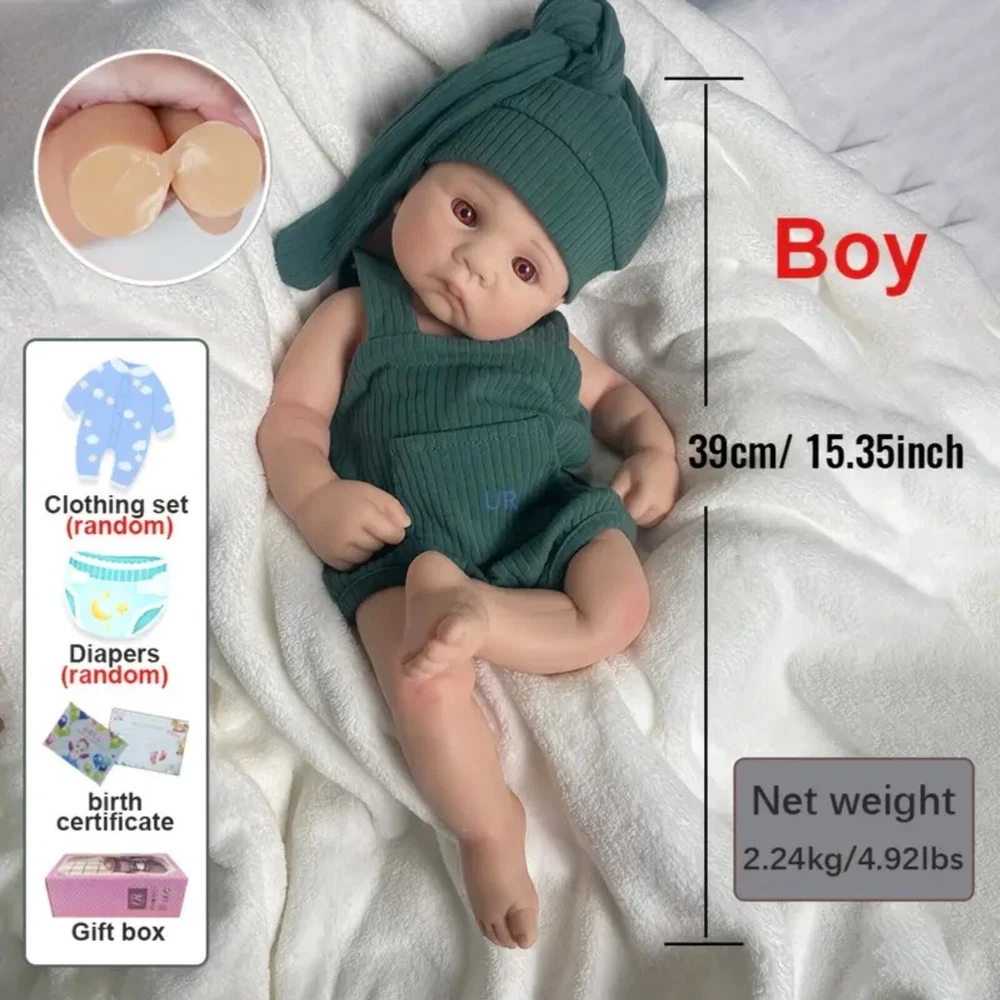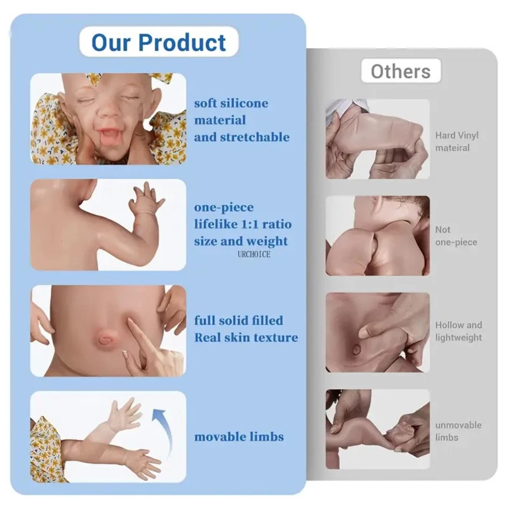 ★ Full body silicone : Our reborn baby doll's is made of Platinum Liquid Full Silicone, she is Solid reborn baby dolls ★ Better than Vinyl material : Medical silicone material is more environmentally friendly than vinyl and safer for your babys. ★ PVC Free, Non-Toxic ★ More real feeling : Our doll's touching feeling is like a real baby than Vinyl dolls ★ Great for Child and Best Choice For Adoption : Let your child feel that he is a playmate and not just a toy. Because it is Weighted Body for a "Real" Baby Feel. ★ The best gift for your child to improve social ability and open up thinking. Children will acquire strong cognitive ability. ★ The best choice for collecting baby dolls . So we think you should choose us, Not only give you the lifelike baby dolls, but also give you more choices. We have different sizes and genders realistic baby dolls. This boy is about 16 inch , ( Anatomically Corre ct), Net weight is :5 lb NOTE: Baby clothes are shooting propsThe doll costume is a product shooting prop, not a gift, package not included the picture clothes, you need to dress up the baby by yourself.