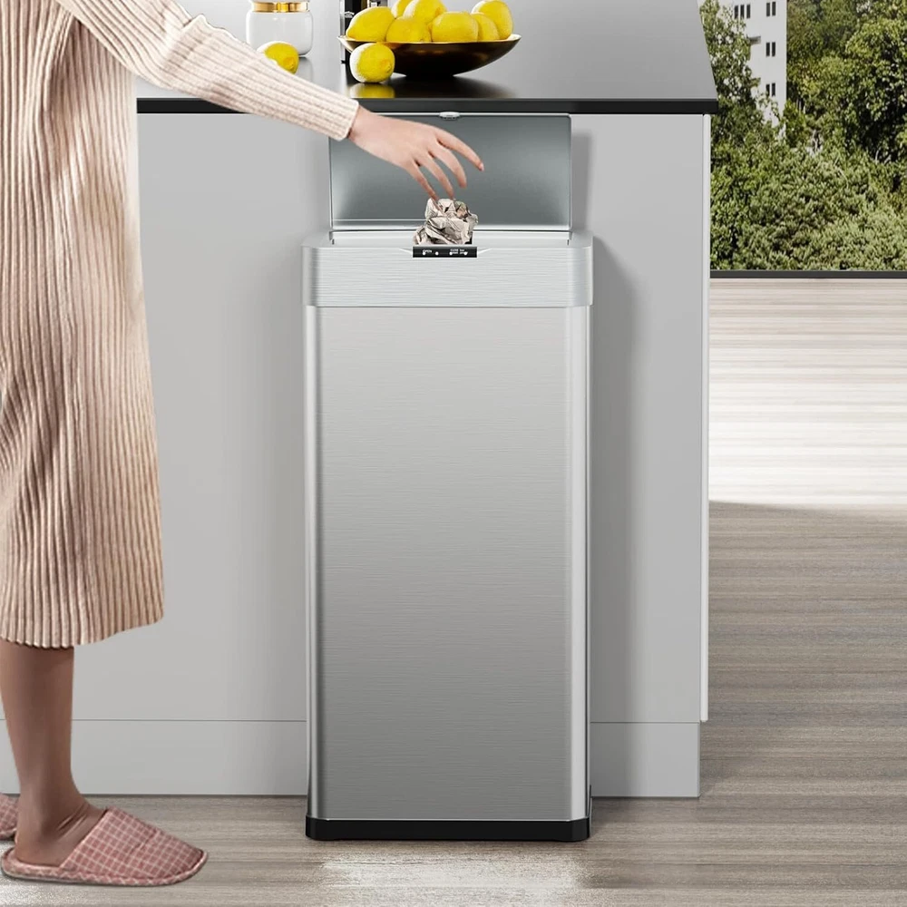 Description:Rectangular motion sensor trash can is a touch-free, hygienic home option made of stainless steel with a brushed surface that is fingerprint-resistant. 16 gallon trash can for can easily meet your daily waste disposal needs. Widely used in kitchen, dining room, bedroom, home, office and other indoor scenes.Automatic trash can is equipped with a motion sensor inside, simply wave your hands above the infrared motion sensor field and the lid will open automatically. The wide lid opening can easily put in large garbage, no need to frequently change garbage bags, saving your time. Motion sensor trash can can also be opened and closed manually, you can press the "OPEN" button to keep the lid open and then press the "CLOSE" butt... Yiwsz-0 Your Best Online Business Partner Sensor Trash Can, Touchless Motion Sensor Trash Bin, Smart Automatic Garbage Can with Soft-Close Lid, Bag Retainer Ring and Display Light, for Kitchen, Living Room Office (Silver, 16 Gal) Description: Rectangular motion sensor trash can is a touch-free, hygienic home option made of stainless steel with a brushed surface that is fingerprint-resistant. 16 gallon trash can for can easily meet your daily waste disposal needs. Widely used in kitchen, dining room, bedroom, home, office and other indoor scenes. Automatic trash can is equipped with a motion sensor inside, simply wave your hands above the infrared motion sensor field and the lid will open automatically. The wide lid opening can easily put in large garbage, no need to frequently change garbage bags, saving your time. Motion sensor trash can can also be opened and closed manually, you can press the "OPEN" button to keep the lid open and then press the "CLOSE" button to close it. The motion sensor trash can's lid closes quietly and slowly, so you can say goodbye to loud clanking noises and ensure a quiet environment. You can use it with just 4 AA batteries installed (Batteries not included). Note: The display light will illuminate red when the battery level reaches 4.8V. Features: SMART SENSOR: Automatic trash can has sensing area of 5.9 inches and can detect motion in just one second to open, and lid automatically closes after 9 seconds. STAY-OPEN MODE: During food preparation or cleaning, you can touch the "open" button to keep the lid open for 3 minutes. Lid can be closed by pressing the "CLOSE" button. SOFT CLOSE: Pirecart Touchless garbage can features auto-sensing technology and a silent closing lid, which opens and closes slowly and silently. LARGE CAPACITY: Pirecart large capacity of 16 gallons can hold a large amount of garbage. Its no-inner bucket and cube design reduces the footprint and increases the capacity by 25%. EASY TO CLEAN: Motion sensor trash can is made from ABS and 410 stainless steel, and the brushed surface is easy to clean and maintain. Just remove the lid, wipe it with a cloth.Detachable inner ring securely holds trash bag in place to prevent slipping. Specifications: Capacity:60 Liters Item Weight: 12 lb Room Type: Kitchen Shape: Rectangular Color: Silver Opening Mechanism: Motion-Sensor Recommended Uses For Product: Indoor Material: Stainless Steel Finish Type: Powder Coated Package Includes: 1*Trash Can Item Specifics Brand Unbranded Item Height 26.96 in Item Length 16.18 in Item Width 10.47 in Type Trash Can Capacity 16 gal Room Kitchen Color Silver Material Stainless Steel Features Lid Lock Item Weight 12 lb Suitable For Indoor Country/Region of Manufacture China Payment We only accept Payoneer payment. Shipping We will ship out your item within 24-48 business hours after payment received; We don't process orders on weekends and holidays. Returns 30 day returns. Full / Partial Money Back, or Replacement. Contact Us If you have ANY problems, please feel free to let us know, we'll get back to you ASAP and do our bets to resolve it. Yiwsz-0 Your Best Online Business Partner DESCRIPTION PAYMENT SHIPPING RETURN POLICY CONTACT US Store Category Store Home Kids Slide Garbage Can Indoor Furniture Home & Garden Pet Supplies Hot Item 60L Dual Trash Can Stainless Steel Step On Garbage Can Recycling Bin with Lid USD 127.99 8 Gallon Trash Can, Rectangular Step On Kitchen Trash Can, Stainless Garbage Can USD 59.99 60L / 16 Gal Dual Kitchen Trash Can,Stainless Steel Garbage Can Recycle Dustbin USD 129.99 60L / 16 Gal Dual Trash Can Stainless Steel Kitchen Garbage Bin Recycle Dustbin USD 116.99 8 gal Stainless Dual Trash Can Kitchen Step Garbage Can Classified Recycle Bin USD 79.99 New List Item 21.1 Gal Motion Sensor Kitchen Trash Can Stainless Steel Garbage Bin Automatic USD 99.99 13.2 Gallon Motion Sensor Kitchen Trash Can Stainless Steel Garbage Bin Silver USD 65.99 21.1 Gal Motion Sensor Kitchen Trash Can Stainless Steel Automatic Garbage Bin USD 99.99 13.2 Gal Motion Sensor Kitchen Trash Can Stainless Steel Recycling Garbage Bin USD 65.99 13.2 Gal Motion Sensor Trash Can for Kitchen Stainless Steel Garbage Can Black USD 65.99 Help & Info Payment Policy Shipping Policy Return Policy FAQ About Us Sensor Trash Can, Touchless Motion Sensor Trash Bin, Smart Automatic Garbage Can with Soft-Close Lid, Bag Retainer Ring and Display Light, for Kitchen, Living Room Office (Silver, 16 Gal) Description: Rectangular motion sensor trash can is a touch-free, hygienic home option made of stainless steel with a brushed surface that is fingerprint-resistant. 16 gallon trash can for can easily meet your daily waste disposal needs. Widely used in kitchen, dining room, bedroom, home, office and other indoor scenes. Automatic trash can is equipped with a motion sensor inside, simply wave your hands above the infrared motion sensor field and the lid will open automatically. The wide lid opening can easily put in large garbage, no need to frequently change garbage bags, saving your time. Motion sensor trash can can also be opened and closed manually, you can press the "OPEN" button to keep the lid open and then press the "CLOSE" button to close it. The motion s