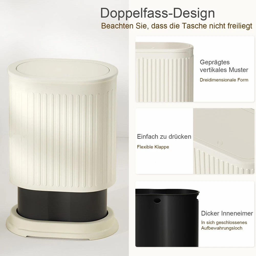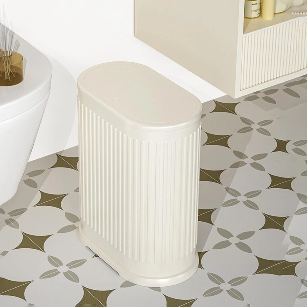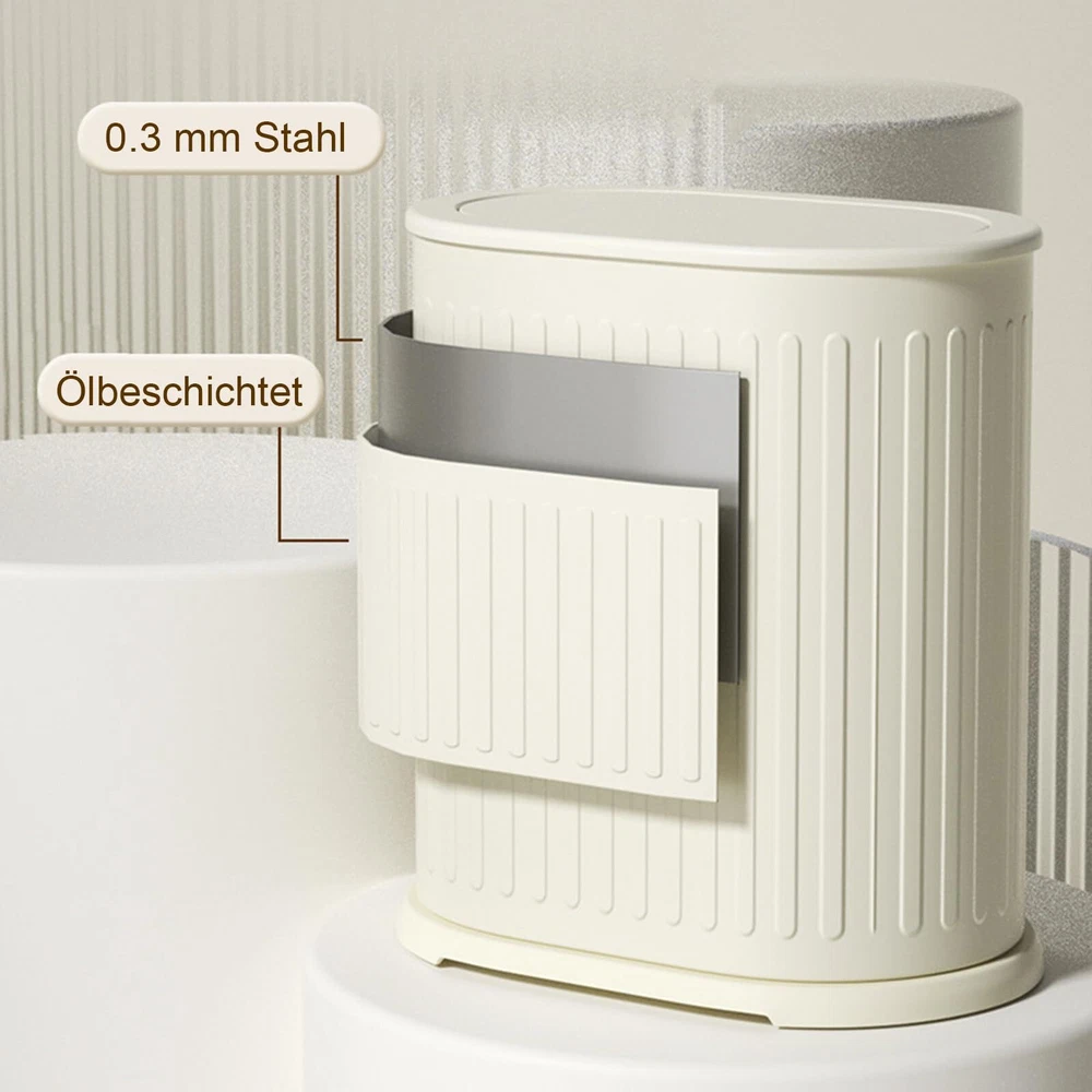 【 Perfect for Small Spaces 】 This is a 6 Liter/ 1.6 Gallon small trash bin. This narrow trash can fits well in the bathroom, bedroom, office, nursery, powder room, dorm room, next to the toilet, under the desk or wherever space is limited. 10.6*6.6*12.6 inches/ 26.8*16.7*32.0cm, press open the lid. 【 Kitchen Trash Can with Lid 】The small trash can with a lid secures your trash and stops your small pet dogs from trash bin diving. Unless your dogs tip the whole trash can over, they are probably not going to get the lid open and scatter garbage. The kitchen trash can with a lid covers up the smell of trash for a fresh, clean-smelling home and healthier air. 【Double Layers Design】This trash can is a special design with double layers, the outer layer is made of stainless steel, the inner layer is made of plastic, and both layer bins can be removed. The double-layer design can hide the trash bag. 【 Space Saving 】 The mini white trash can with a compact design is perfect for small spaces such as a bathroom, bedroom, living room, office, kid room, powder room, RVs, college dorm rooms, etc. You can put the mini trash can under the table or on the tabletop or in any place with limited space. Let you use the space more extreme, and become tidier. 【 Easy To Clean 】 The surface is smooth and easy to clean and can be quickly wiped off with a damp cloth. Make white easy to keep looking good
