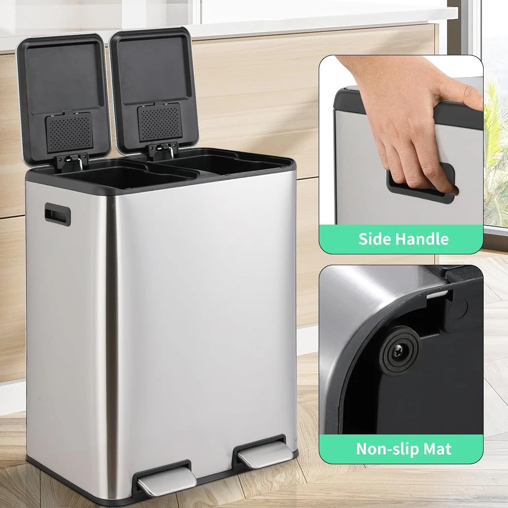 Description: Yiwsz-0 Your Best Online Business Partner 16 Gal Dual Kitchen Trash Can, Stainless Steel Garbage Bin, Recycle Waste Dustbin, w/ 2 Built-in Box for Odor Control, Soft-Close Lid,2 Buckets, Foot Pedal, Side Handle, for Home Office Description: Dual 8 gallon Compartment Bins: Trash can measures 20.3in * 14.6in * 26.2in. With a large capacity of 60 liters, it offers plenty of room for garbage and recycling, Combo garbage bin comes with two removable inner barrels, and each compartment has an independent lid and a widened pedal, which effectively isolates the smell of garbage and facilitates the opening of each compartment. Stainless Steel Outer &ABS Inner: Step trash can is made of 410 steel metal with a durable surface that is fingerprint-resistant, stain-resistant and easy to clean, you just need to wipe the surface of the trash cans with a damp cloth. Inner buckets are made of ABS material. And bucket is with pocket holes so that you can fix the plastic bags in place. Labor-saving Foot Pedal: Waste bins' footrest design allows you to throw away the trash without getting your hands dirty and without touching the trash can lid directly.You can dispose of your waste with your hands free. Built-in Box for Odor Control: Dual trash combo is perfect for the kitchen. Both lids are equipped with built-in box for storaging cleaning material for helping to improve the air quality around the trash can. Enjoy a clean and pleasant environment. Sealing Base&Soft Close: Recycling bin uses sealing base, which is effectively pet-proof and waterproof. And anti-slip rubber pads can prevent trash can from toppling over. Once your foot leaves the pedal,trash can lid will drop down automatically and quietly. Slow-closing lid design prevents sudden banging noises. Specifications: Shape: Rectangular Capacity: 16 Gallons Opening Mechanism: Step-On Color: Silver Finish Type: Powder Coated Item Weight: 23 Pounds Product Dimensions: 20.3 x 14.3 x 26.2 inches; 23 Pounds Date First Available: October 18, 2024 Country of Origin: China Item Specifics Brand Unbranded Item Height 26.2 in Item Length 20.3 in Item Width 14.3 in Type Trash Can Capacity 16 Gal Room Kitchen Color Silver Material Stainless Steel Features Lid Lock Size Medium Item Weight 23 Pounds Suitable For Indoor Country/Region of Manufacture China Payment We only accept Payoneer payment. Shipping We will ship out your item within 24-48 business hours after payment received; We don't process orders on weekends and holidays. Returns 30 day returns. Full / Partial Money Back, or Replacement. Contact Us If you have ANY problems, please feel free to let us know, we'll get back to you ASAP and do our bets to resolve it. Yiwsz-0 Your Best Online Business Partner DESCRIPTION PAYMENT SHIPPING RETURN POLICY CONTACT US Store Category Store Home Kids Slide Garbage Can Indoor Furniture Home & Garden Pet Supplies Hot Item 60L / 16 Gal Dual Trash Can Stainless Steel Kitchen Garbage Bin Recycle Dustbin USD 116.99 8 Gallon Trash Can, Rectangular Step On Kitchen Trash Can, Stainless Garbage Can USD 59.99 8 gal Stainless Dual Trash Can Kitchen Step Garbage Can Classified Recycle Bin USD 79.99 60L / 16 Gal Dual Kitchen Trash Can,Stainless Steel Garbage Can Recycle Dustbin USD 129.99 60L Dual Trash Can Stainless Steel Step On Garbage Can Recycling Bin with Lid USD 127.99 New List Item Metal Chicken Coop Outdoor Metal Walk-in Poultry Cage with Cover 23x6.6x6.6ft USD 239.99 LED Bathroom Mirror Wall Vanity Makeup Mirror 3 Colors Touch Anti-Fog Dimmable USD 109.99 Hollywood Makeup Vanity Mirror W/ 20 LED Bulbs & Bluetooth 3 Colors Light 31" USD 109.99 Hollywood LED Makeup Vanity Mirror 3 Color Light Bathroom Mirror Anti-Fog USD 99.99 Portable Soft Dog Crate Foldable 4-Door Dog Kennel Travel Dog Crate Lightweight USD 69.99 Help & Info Payment Policy Shipping Policy Return Policy FAQ About Us 16 Gal Dual Kitchen Trash Can, Stainless Steel Garbage Bin, Recycle Waste Dustbin, w/ 2 Built-in Box for Odor Control, Soft-Close Lid,2 Buckets, Foot Pedal, Side Handle, for Home Office Description: Dual 8 gallon Compartment Bins: Trash can measures 20.3in * 14.6in * 26.2in. With a large capacity of 60 liters, it offers plenty of room for garbage and recycling, Combo garbage bin comes with two removable inner barrels, and each compartment has an independent lid and a widened pedal, which effectively isolates the smell of garbage and facilitates the opening of each compartment. Stainless Steel Outer &ABS Inner: Step trash can is made of 410 steel metal with a durable surface that is fingerprint-resistant, stain-resistant and easy to clean, you just need to wipe the surface of the trash cans with a damp cloth. Inner buckets are made of ABS material. And bucket is with pocket holes so that you can fix the plastic bags in place. Labor-saving Foot Pedal: Waste bins' footrest design allows you to throw away the trash without getting your hands dirty and without touching the trash can lid directly.You can dispose of your waste with your hands free. Built-in Box for Odor Control: Dual trash combo is perfect for the kitchen. Both lids are equipped with built-in box for storaging cleaning material for helping to improve the air quality around the trash can. Enjoy a clean and pleasant environment. Sealing Base&Soft Close: Recycling bin uses sealing base, which is effectively pet-proof and waterproof. And anti-slip rubber pads can prevent trash can from toppling over. Once your foot leaves the pedal,trash can lid will drop down automatically and quietly. Slow-closing lid design prevents sudden banging noises. Specifications: Shape: Rectangular Capacity: 16 Gallons Opening Mechanism: Step-On Color: Silver Finish Type: Powder Coated Item Weight: 23 Pounds Product Dimensions: 20.3 x 14.3 x 26.2 inches; 23 Pounds Date First Available: October 18, 2024 Country of Origin: China Payment Shipping Returns Contact Us We only accept Payoneer payment. We will ship out your item within 24-48 business hours af