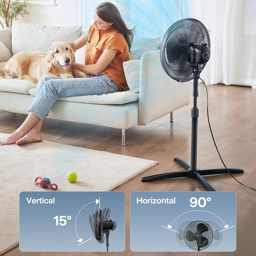 16 Inch 3-Speed Adjustable Oscillating Pedestal Fan Powerful Cooling Quiet Black