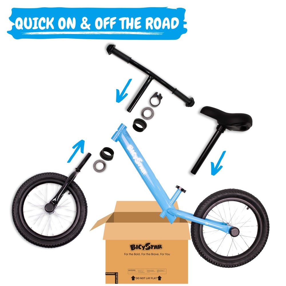 Introducing our 16-inch Balance Bike, a thrilling ensemble of innovation, comfort, and adrenaline-infused experience. Like a well-choreographed dance of form and function, our balance bike is the answer to your child's quest for the perfect biking adventure! ADJUSTABLE EXCELLENCE - Customizability rules the roost with an adjustable seat height of 17-24 inches and handlebar height at 25-28 inches. Geared for 5-9 years old riders, our childrens Balance Bike promises a riding experience as unique as your child, time after time. SUPER-TREAD TIRES - Ride with confidence as the 1.8-inch wide air knobby tires conquer all terrains in style. No track is out of bounds as they invite more speed, stability, cushioning, and better traction. < EASE OF BALANCE - Lightweight brilliance at 10.8lb ensures the balance bike is easily portable. The lighter build promises a perfectly balanced ride, every time. LARGER AND MORE COMFORTABLE - The larger frame design is engineered to smoothen transition from a pedalless balance training bike to a pedal bike, especially for the initially timid bikers. Imagine your little biker exploring the neighborhood, mastering the art of balance on this sleek ride. Their grin widening with each ride, their joy resonating with each flight taken on that bunny hop, that's the story of our 16 inch Balance Bike. Built to hone their biking skills while erupting laughter and promoting growth, our Balance Bike is shaping new biking narratives daily. A smooth ride, comfortable enough to ease hesitant hearts into biking, yet thrilling enough to keep them pining for more. Assembly is a breeze, letting fun times roll sooner. Get ready, set, and vroooom! GAME OF GROWTH - Our toddler bike isn’t just fun, it’s also a medium to enhance their motor skills, self-confidence, and independence. Empower your child with balance and coordination. Our toddler balance bike is your child’s first step towards biking independence and designed for nothing less than extraordinary adventures for your little one. PERSONALIZED CHILD FIT - With height adjustability that spans from 17 to 24 inches (seat) and 25 to 28 inches (handlebar), suitable for kids aged 5-9 years old, it stands proudly as a loyal buddy through your child's growth spurts. The quick-release makes real-time adjustments a cinch. Our kids balance bike adapts instantly to your child's ever-changing needs. THE FANTASIA OF BALANCE - Bike light. Bike right. With lightweight(10.8lb), low stand-over height, ideal for future tricksters, balancing becomes less of learning and more of laughter. ORDER NOW to gift your child the joys of uncomplicated fun. EXPEDITION WITHOUT BOUNDARIES - Gear up for an adrenaline-pumping thrill ride with our 1.8-inch wide air knobby tires. Offering superior stability and traction, this balance bike 4+ year old is destined to turn every terrain into a thrilling quest. So go ahead, take the fun off-roads too! A bike that tolerates, supports, and partners all the bumps, the thrills, the growth spurts. ASSEMBLY IS AS EASY AS A RIDE - Receive your balance bike nearly ready to fly! Just assemble the fork, insert the handlebar and seat-post and watch your child soar! Our no pedals bike is the quickest ticket to independence and endless fun!