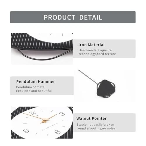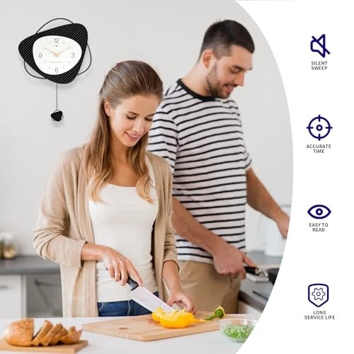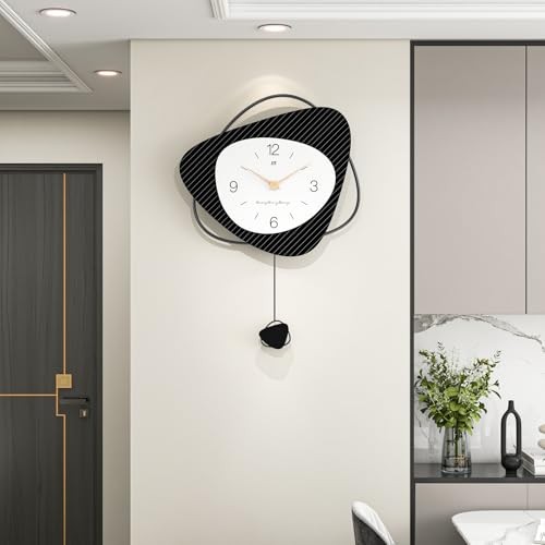 This clock is absolutely stunning! The sleek black and white design fits perfectly in my modern living room. It's completely silent, which I love, and the pendulum adds such a classy touch. Super easy to set up and looks way more expensive than it is. Fast shipping too!
