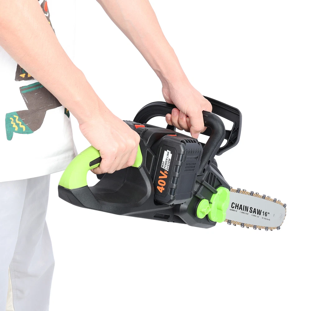 | | | | | | 16" Cordless Chainsaw,Brushless Motor Electric Chainsaw,Battery Powered < < < > > > < < < < < < < < < > > > > > > > > > Description: Brushless Motor & High Power: Since the electric chainsaw is designed with a powerful brushless motor, it provides your tool with longer run-time, more torque, and more power. Once release the switch, it can stop automatically. The 16 inch chain saw has a chain speed of 17000rpm. 1800W power for super-effective performance with flexible operation and strong cutting ability. Safe Switch & Front Baffle: With safe switch design, you can press the safety start switch lock first, and then hold still and press the start button to prevent injury by sudden start. The front baffle protects the user from flying debris. High Quality Material & Easy to Use: Electric cordless chainsaw is made of high-quality ABS eco-friendly plastic, steel and pure copper brushless motor material. Comes with complete installation tool, this electric chainsaw is very easy to use. Push button start, no gas or fumes, no carburetor, and no starter rope. Multi Advantages: Unlike the market to use a screwdriver to adjust the chain, this electric chain saw is equipped with a knob to be adjusted slightly before the looseness and length of chain, which to prevent the chain to fall off. Automatic oiler system, the lubricant volume to ensure sufficient and uniform work. Equipped with oil pouring port, you can control the oil spraying speed. The integrated guide plate is designed to resist high temperature and wear. The electric chainsaw has a brushless motor for durability, high efficiency and quiet operation. Wide Applications: Featuring an anti-slip handle and switch control design, it is comfortable to grip and easy to control. The electric chainsaw for smooth and fast cutting through dry wood and live logs. Suitable for forest cutting, family logging, professional use by workers. Item Name: Electric Chain Saw Material: Metal, ABS Material: ABS Eco-friendly Plastic, Steel, Pure Copper Length of Guide Plate: 16" (about 41cm) Motor: Pure Copper Brushless Motor Power: 1800w Speed: 17000rpm Motor Compatible Voltage: Direct Current 36-42V Length of The Whole Machine: About 84cm Handle Width: 15cm Compatible Charging Voltage: AC100-240V 50/60Hz Working Time: About 120min Battery Capacity: 4Ah Spraying Method: Automatic Oiler Control Type: Two-Hand Control Features: Comfortable Grip, Long Endurance, Integrated Guide Plate Size Details: L: 85cm/33.46", W: 35cm/13.78", H: 35cm/13.78" (Approx.) Notes: Due to the light and screen setting difference, the item's color may be slightly different from the pictures. Please allow slight dimension difference due to different manual measurement. Package Includes: 1 x Electric Chain Saw 2 x Batteries 2 x Charger 1 x Chain 1 x Guide Plate 1 x Screwdriver 1 x User Manual Matters Needing Attention 1. To reduce the risk of personal injury and product damage due to a short circuit never immerse your tool battery pack or charger in fluid or allow a fluid to flow inside them. Corrosive or conductive fluids, such as seawater, certain industrial chemical and bleach or bleach-containing products, etc, can cause a short circuit. 2. If any parts are damaged or missing,do not operate this product until the parts are replaced. Use of this product with damaged or missing parts could result in serious personal injury. 3. Do not attempt to modify this tool or create accessories not recommended for use with this tool. Any such alteration or modification is misuse and could result in a hazardous condition leading to possible serious injury. 4. To prevent accidental starting that could cause serious personal injury, always remove the battery pack from the tool when assembling parts, making adjustments, cleaning, or when not in use. 5. Do not allow familiarity with this product to make you careless. Remember that a careless fraction of a second is sufficient to inflict serious injury. 6. Always wear eye protection with side shields, along with hearing protection. Failure to do so could result in objects being thrown into your eyes and other possibly serious injuries. 7. Before each use, inspect the entire product for damaged, missing, or loose parts, such as screws, nuts, bolts, caps, etc. Tighten securely all fasteners and caps and do not operate this product until ll missing or damaged parts are replaced. Payment Shipping Return Contact Us 1. We acceptPayPal,Credit card,Debit card,Apple Pay,Google Pay ect as payment. 2. Please be sure your shipping address is correct before make a payment. 1. We ship to your eBay or Paypal address. Please make sure your eBay and Paypal address is correct before you pay. 2. Items will be shipped within 1-7 business days when we received payment. 3. Delivery time depends on destination and other factors. 4. International buyers please note: a. Import duties, taxes and charges are not included in the item price or shipping charges. These charges are buyer's responsibility. We will try our best to reduce the risk of the custom duties. b. Please check with your country's customs office to determine what these additional costs will be prior to buying. 30 DAY RETURN POLICY Customer Satisfaction is our main goal, all items are quality checked prior to being listed and sent out. Please contact us prior to leaving any Negative Feedback and allow us to make things right! If you not satisfied with it please include the original packaging and return form & tracking number otherwise the return may take longer to process the refund. Once we have received the item and inspected it we will issue the refund or resend within 1-7 business days. Please contact us in time if any enquriy under any circumstances. We greatly appreciate your positive feedback and we'll do the same to you. We care about our valued customers, and will always try our best to help you, if you have any problems. Working time: Greenwich Mean Time+8 / 9:00-18:30 in normal we will reply y