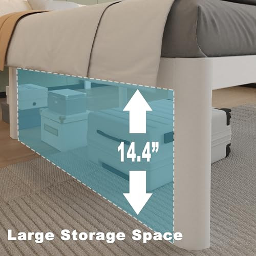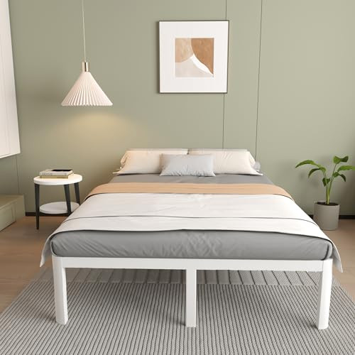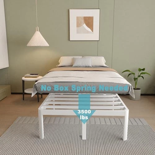 16 Inch Full White Metal Platform Bed Frame No Box Spring Needed
