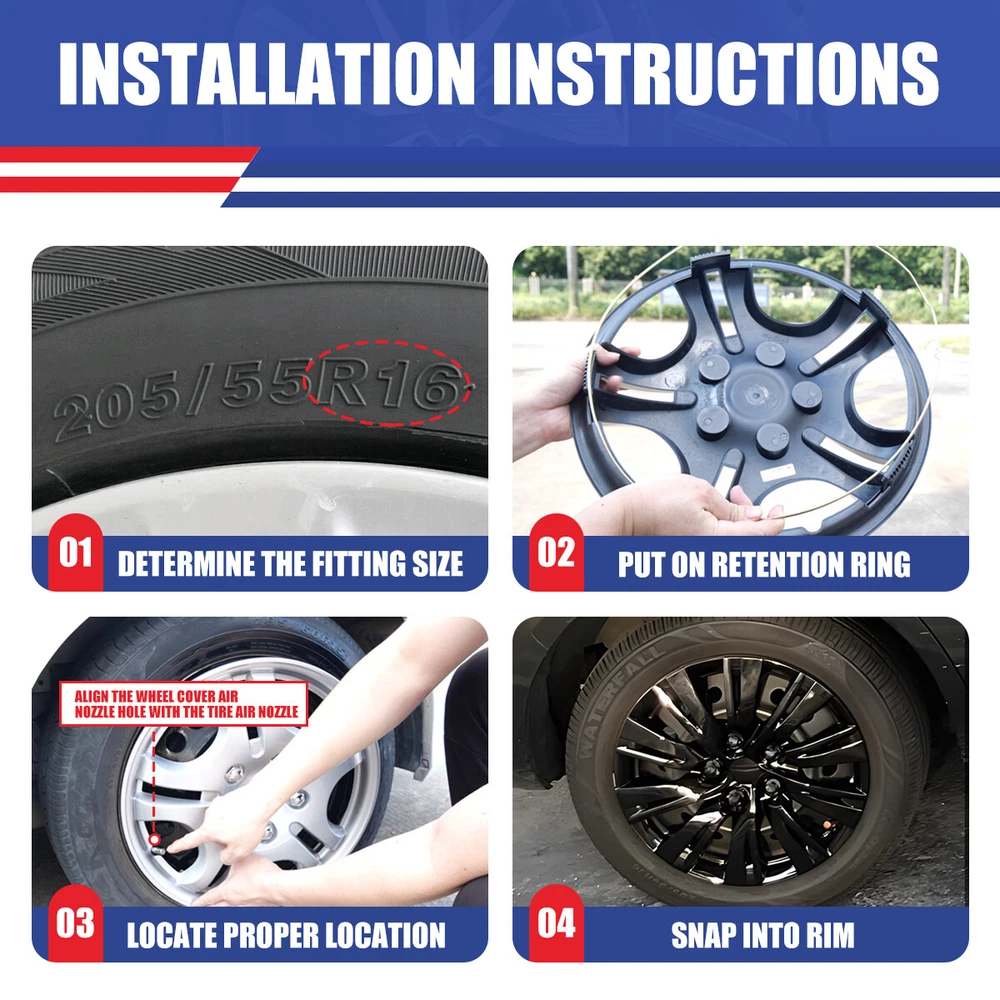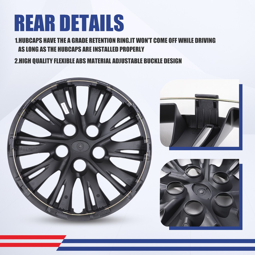 Fitment: for 2012 2013 2014 Toyota Camry 16'' Hubcaps Wheel Rim Cover Description: This set of 4 wheel covers is perfectly designed to fit your 16 inch Tire Size for 2012 2013 2014 Toyota Camry ...and easily installs over your existing factory steel wheels in minutes! These wheel covers are constructed from durable, automotive grade plastic and feature an attractive finish for a custom look. ---Before Purchase: Please make sure to check your tire/wheel size before purchase! To confirm wheel size, please refer to the last two digits after the "R" of the tire. Designed for steel wheels, not for alloy wheels.Not suitable for wheels with middle protrusions higher than the rim. Not suitable for iron rims with long lug nuts. ---Easy Installation: Align the grooves of the adjustable steel retaining ring with the grooves of the hubcap and align the hubcap with the tire valve before snapping it onto the wheel. ---Stylish Appearance: The rim covers are very stylish and modernized with a finish, easily transforming the appearance of your wheels and enhancing the overall aesthetics of your car. ---Protect Your Wheels: universal hubcap can protect the tire screws and make it waterproof and rustproof. The hubcaps are easy to clean and maintain, can be quickly wiped with a damp cloth to remove any dirt. ---Quality Service: The wheel cover kit is compatible with most steel wheels. NOTE: Our wheel hubcaps are not suitable for wheels fitted with dynamic balancing blocks. If you have any other questions, please contact us. Specifications: - 10 Spoke Style - Front and Rear - Size:16 Inch - Material:High Quality Hard and Durable ABS Plastic - Fitment is for factory for 2012 2013 2014 Toyota Camry 16" steel wheels only Package: 1 set of Wheel Covers(4 x Wheel Covers)