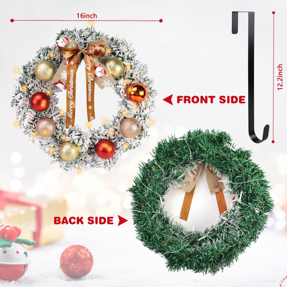 16 Inch Lighted Christmas Wreath with Metal Hanger, Christmas Wreath with Balls Ornaments Bowknot for Front Door, Battery Operated 20 LED Lights, for Front Door Gate Wall Xmas Party Decorations Christmas Wreath for Front Door: Green pine needles covered in snowflakes, with golden, red, and orange Christmas balls Ornaments and a golden bowknot. This stunning wreath is the perfect touch to enhance the festive atmosphere of your Christmas party decorations. High-Quality Christmas Wreath: Our Christmas wreath is made of high-quality materials. Good workmanship, this light-up Christmas wreath is sturdy and can be used for a long time. We offer the 15" metal hanger made from high quality steel, the surface treatment is very smooth and clean. It is durable, not easy to bend, will not damage the door and door frame, please rest assured to use. Battery Operated Wreath: This Christmas wreath come with 20 led lights light string, powered by 2 AA batteries (not included). Just place them anywhere without the worry of needing a plug socket nearby, adding a charming and festive glow to illuminate your home. Ideal Christmas Decoration: This versatile Christmas wreath is perfect for both indoor and outdoor settings. Perfect for front doors, staircases, balconies, offices, bedrooms, Christmas parties, walls, fireplaces, gardens, terraces, and swing stands, adding a festive touch to every corner of your home. Perfect Size: The Wreath is 16 inch dia. After opening the packaging, the branches can be adjusted to expand the wreath and get the perfect shape. 16 inch Lighted Christmas Wreath with 20 Led Lights Christmas Wreaths for Home Decor This Christmas wreath for front door has a 16 inch size We offer the 15" metal hanger for your convenience. LED lights need 2 AA Batteries, but batteries are not included in the package. The wreath can be used indoors or outdoors. To prolong the life of the wreath, it is best to be hung under a covered location. Christmas Theme Design: Made of high quality materials. Balls Ornaments on the Christmas door wreath, this unique design will make your front door outstanding. Package Includes: 1 x 16'' Christmas Wreath 1 x 20 Led Lights Lamp string 1 x 15" metal hanger Notes: Manual measurement, please allow slight errors on size. The color may exist a slight difference due to different screen displays. SHIPPING Domestic Buyers - We have confidence in our products, but if you are not fully satisfied please contact us within 30 days of purchase and you will get full refund. - We ship within 3 business days of payment, usually sooner - We offer FREE shipping on all orders! - We only ship to the lower 48 states, no APO/FPO addresses or PO Boxes allowed International buyers – please note: Import duties, taxes, and charges aren't included in the item price or postage cost. These charges are the buyer's responsibility. - Please check with your country's customs office to determine what these additional costs will be prior to bidding or buying. * Order Cancellation Policy ** You can return a product for up to 30 days from the date you purchased it. 1. The seller reserves the right to cancel the special case only due to eBay cancellation fee. 2. The decision of seller is the final. 3. The seller will respond to the cancellation request within 2 business days. Please wait for the result of cancellation. 4. In case the cancellation is not completed by some reasons, the buyer can follow the options below to get the refund. 4.1 The buyer can reject the item when it arrives. 4.2 The buyer can send the item back to the seller within 30 days If the buyer receives item (USA Shipment ONLY). The seller will provide the FREE return label to the buyer when the buyer opens " Return Item" case on eBay by using the reason as "Change my mind" ONLY. 5. When buyer has placed the order. The order will be processed and completed by automatic warehouse system within 5 minutes. In case that buyer sends the cancellation request after 5 minutes of placing the order, the request will be rejected. **Sending direct message to cancel the order is not allowed for every case.* Return Policy For the return case - If buyer would like to return the items for refund or replacement, please CONTACT SELLER to receive the free return label from seller. The refund or replacement will be processed with the tracking number of return label which is provided by seller only. The other ways of return which are not approved by seller will not be processed for the refund or replacement.