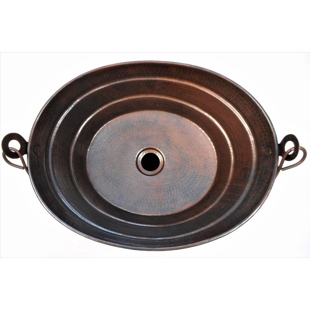 Welcome to SimplyCopper. Discover the Old-World Beauty of our Handmade Copper Sinks!SimplyCopper 16" Oval BUCKET design is created of 18-gauge copper, which is hand-hammered to provide a rustic antiqued look. This copper sink is installed as a vessel. Shape: Oval Outside Dimensions: 16" x 12-1/2" x 6"D Inside Dimensions: 16 x 12-1/2" x 6"D Bottom Measures: 11" x 8-1/2" Edge (Lip): Wire Rimmed Drain Opening: 1-1/2" { Non-Overflow } Drain Sold Separately Faucet Not Included Design: Hand-Hammered Surface Gauge: 18 Material: Copper Naturally Antimicrobial Finish: Aged Copper Overflow: No Installation Type: Vessel Warranty: Limited Lifetime Suggested Accessories: Compatible Faucets; ( OS-SC81H26-ORB ), ( OS-FLG100045 ), ( OS-89051B-3) Compatible Non-Overflow Sink Drain- Free Shipping Over $49.99* Details 16" Oval Farmhouse Copper Vessel BUCKET Bathroom Sink by SimplyCopper - 16" X Product Description: Welcome to SimplyCopper. Discover the Old-World Beauty of our Handmade Copper Sinks! SimplyCopper 16" Oval BUCKET design is created of 18-gauge copper, which is hand-hammered to provide a rustic antiqued look. This copper sink is installed as a vessel. ShapeOval Outside Dimensions16" x 12-1/2" x 6"D Inside Dimensions16 x 12-1/2" x 6"D Bottom Measures11" x 8-1/2" Edge (Lip)Wire Rimmed Drain Opening1-1/2" { Non-Overflow } Drain Sold Separately Faucet Not Included DesignHand-Hammered Surface Gauge18 MaterialCopper Naturally Antimicrobial FinishAged Copper OverflowNo Installation TypeVessel WarrantyLimited Lifetime Suggested Accessories: Compatible Faucets; ( OS-SC81H26-ORB ), ( OS-FLG100045 ), ( OS-89051B-3) Compatible Non-Overflow Sink Drain - (O-LT), (OS-DD) ,(O-Grid), (O-POP) Included: (1) Copper Sink Installation Instructions Copper Sink Care Warranty Information Please Note: Each sink is handmade by Skilled Artisans. Our sinks are unique and one of a kind. You will use the sink as your template as dimensions can vary slightly due to the handmade nature. Variations in the patina are normal and not considered to be a defect. We recommend a professional for installation. Use only mild soap and water with a soft cloth for cleaning.