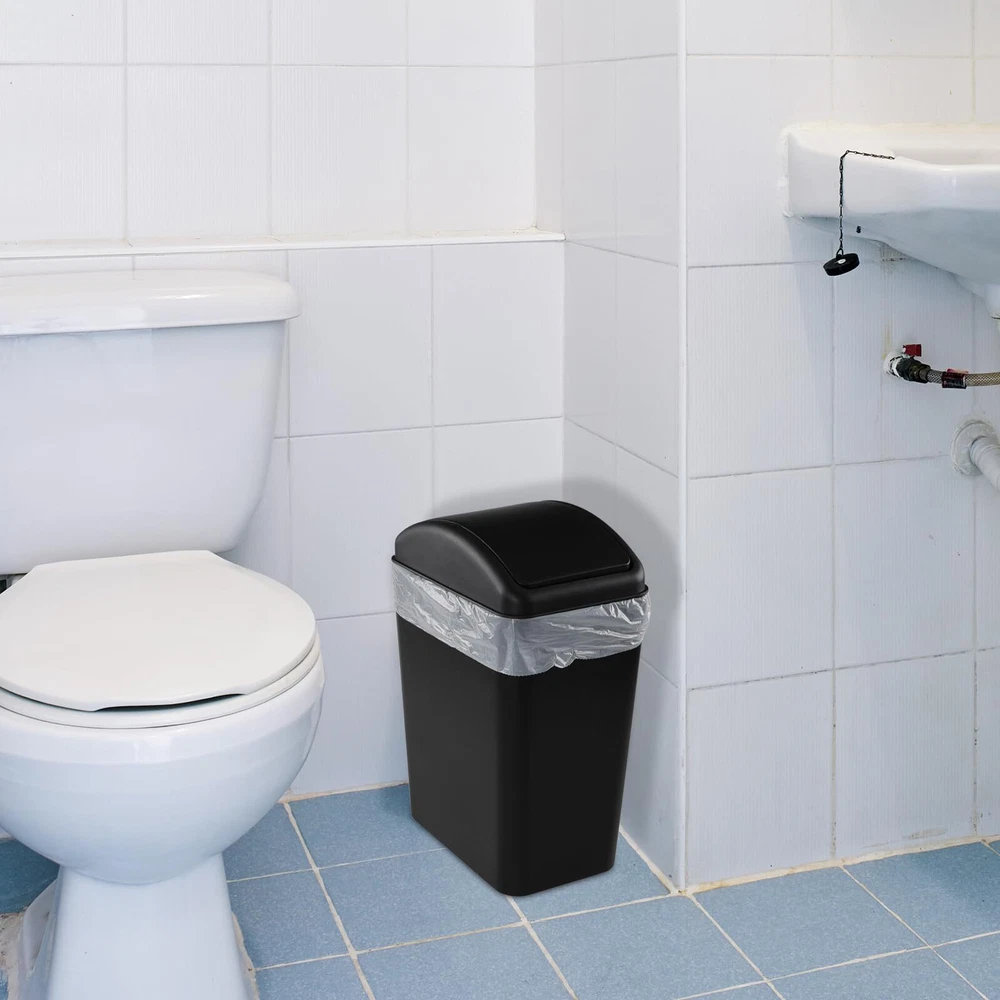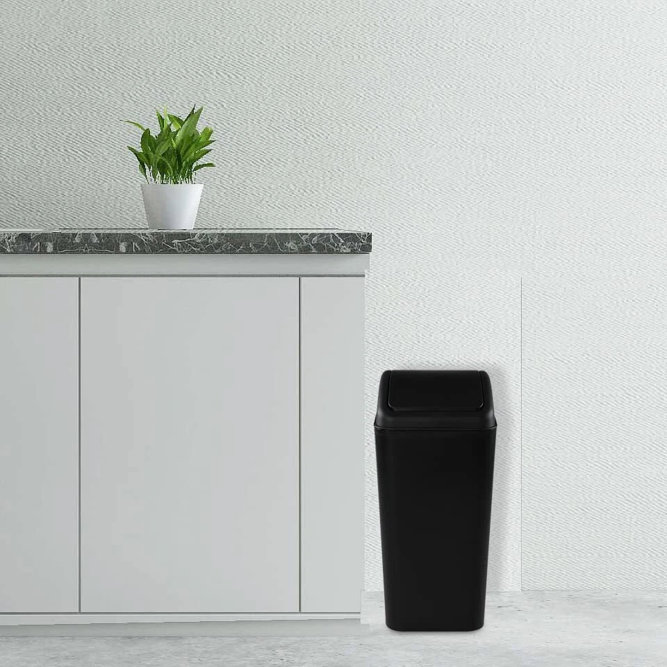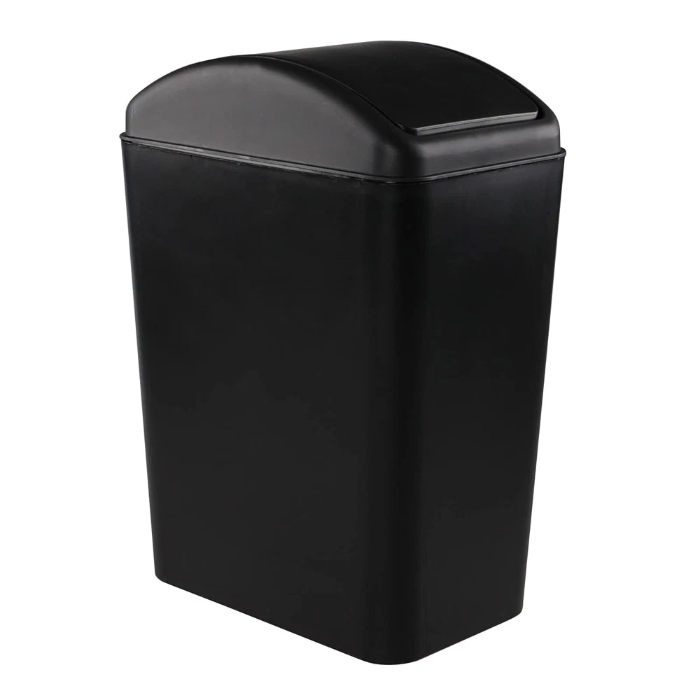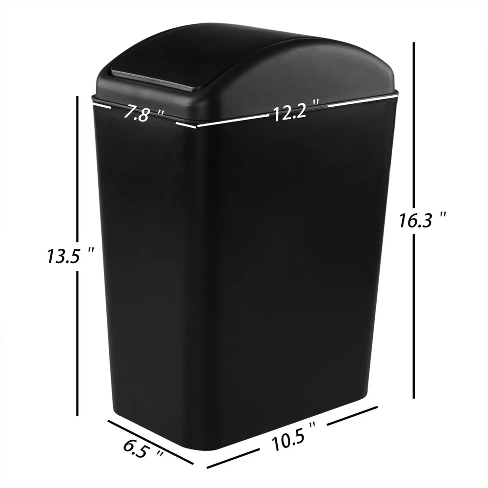 Garbage can with swing lid, easy to use Approximate capacity: 16 L / 4 Gal Plastic slim trash can, perfect for narrow space Size: 12.2" x 7.8" x 16.3" Suitable for office, bathroom, bedroom, kitchen, living room, etc.