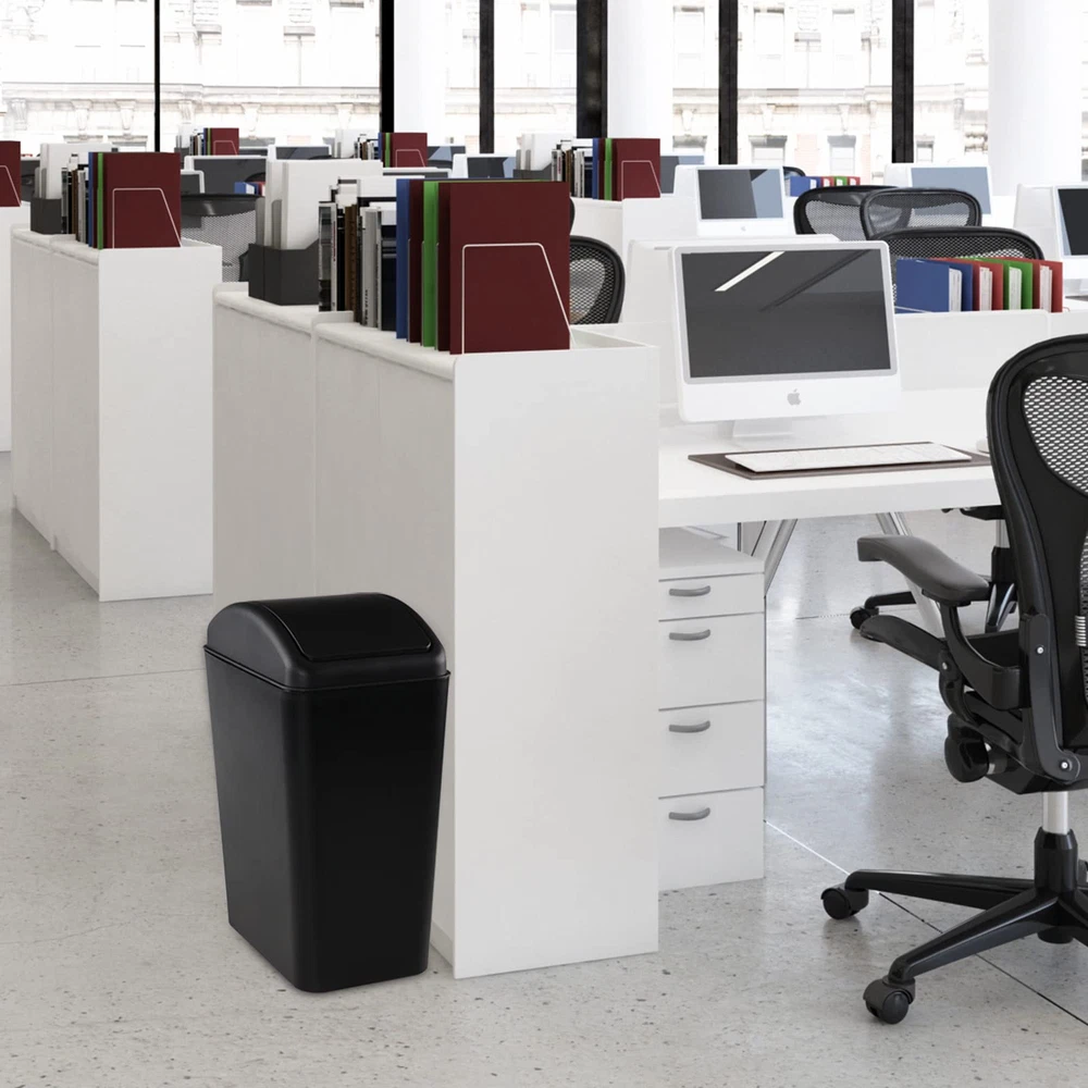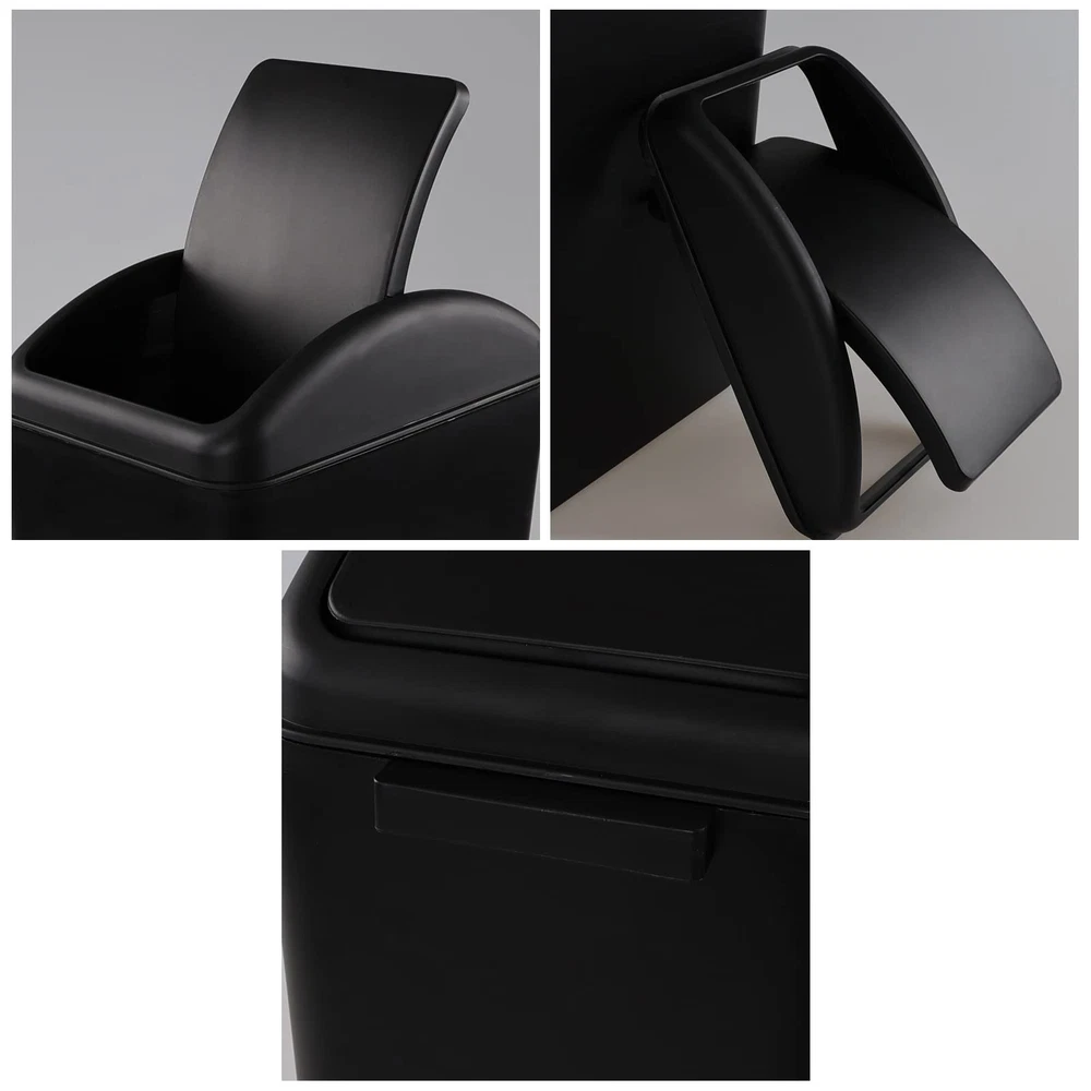 Garbage can with swing lid, easy to use Approximate capacity: 16 L / 4 Gal Plastic slim trash can, perfect for narrow space Size: 12.2" x 7.8" x 16.3" Suitable for office, bathroom, bedroom, kitchen, living room, etc.