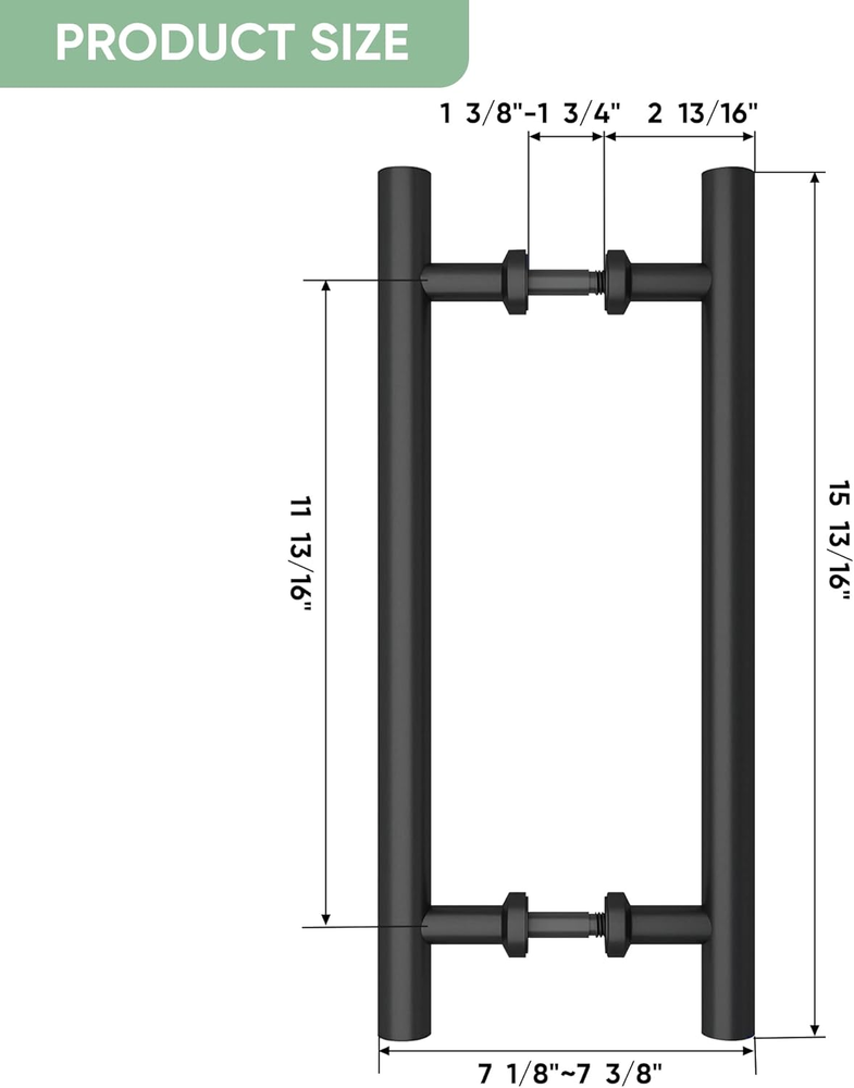 Store New Arrivals Add to Favorite View Feedback Contact 16" Matte Black Stainless Steel Barn Door Handles - Heavy Du Door Pull Set for Sliding Barn Doors, Pocket Doors, Interior/Exterior Doors Description Item model number 2.070.039.44A Number of Items 1 Country of Origin China Shape Rectangular Finish pe Powder Coated Theme Industrial Batteries Included? No Unit Count 1.0 Count Batteries Required? No Finish Powder Coated Special Feature Easy to Install, Durable Material Stainless Steel Handle Material Stainless Steel Metal Type Stainless Steel Is Discontinued By Manufacturer No Specific Uses For Product ['pocket door'] Item Package Quantity 1 Number of Handles 1 Item Weight 2 pounds Size 15-13/16",Heavy Du Special Features Easy to Install, Durable Exterior Finish Powder Coated Black Part Number 2.070.039.44A Color Matte Black Center To Center Spacing 11.81 Inches Projection Distance 2.81 Inches Style Industrial Handle pe Pull Handle Included Components Installation Hardware Product Dimensions 15.83"L x 2.78"W Number Of Pieces 1 Premium Black Stainless Steel Handles: Crafted from rust-resistant stainless steel with a durable powder-coated black finish. Built to last through daily use, offering strength and a sleek, modern look for any barn door or sliding door setup. Perfect Fit for Multiple Door Types: Designed for doors up to 1-3/4" thick, including sliding barn doors, pocket doors, and swing doors. Hole pitch (11-13/16") ensures easy alignment—ideal for interior/exterior use. Easy Installation with Included Tools: Comes with 2 handles, 2 hex wrenches, and step-by-step instructions. No special skills required. Heavy-Duty & Stylish Door Handrails: Sturdy 1" diameter cross-section provides a solid grip. The matte black finish blends seamlessly with rustic, industrial, or modern décor. QUALITY SERVICE: We are reliable and qualified manufacturer of barn door and hardware. For any quality problems or missing parts, or installation problems, please let us know. Professional customer service team are whole day online to help you. Product Description JUBEST 12'' double side barn door handle ABOUT US We offer the best prices around on high quality products. Our E-store includes media such as books, movies, music and games while offering electronics, toys, sporting apparel, clothing, tools, general home, garden items and more. SHIPPING We are always working hard to ensure your package arrives as soon as possible. Please understand that some factors like weather, high postal traffic, and the performance of shipping companies are outside of our control. We offer free shipping to the lower 48 states and ship within 2 business days of payment, usually sooner. We do not accept P.O. Boxes. Please provide a physical address. For shipping outside of the continental USA, we only use eBay's Global Shipping Program.The item is shipped to KY and then sent to the rest of the world. International customers are responsible for all duties and taxes. Continue to check out in order to calculate costs for shipping the item to your country. Messages regarding eBay's Global Shipping Program MUST be directed at eBay EXCLUSIVELY. RETURNS We offer a 30-Day Return Policy on items which you are not completely satisfied with. You have the option for a full-refund or an exchange of the item. No returns are available on items shipped outside of the USA. PAYMENT We accept PayPal. CONTACT US This page content is yet to come Please ad us to your favorite seller and visit again later Thank You CUSTOMER SATISFACTION We try our very best to make sure every customer is completely satisfied. If there's a problem, message us! We're happy to help. WE ACCEPT Copyright © 2021 AutoDS. | All Rights Reserved