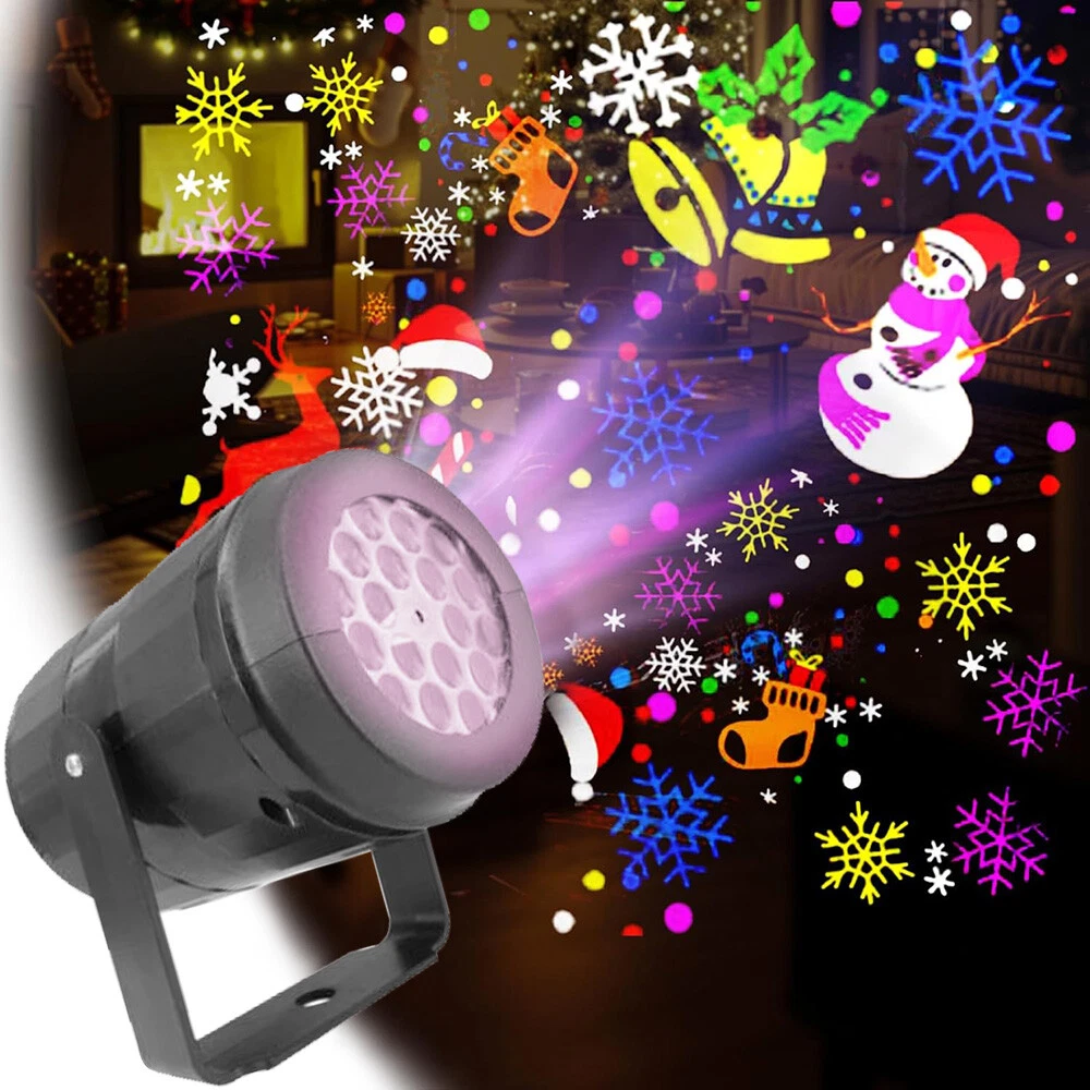 16 Patterns Christmas LED Projector Light Laser Moving Landscape Xmas Decor Lamp