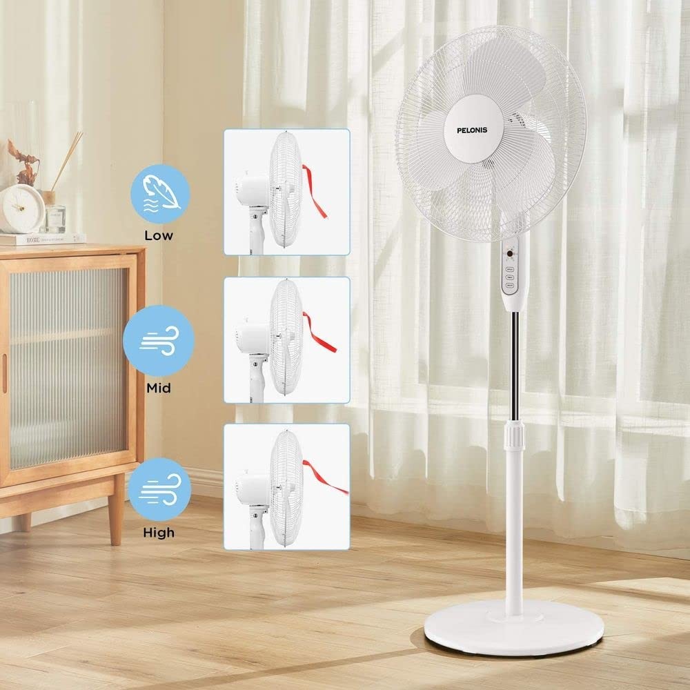 Item Package Quantity: 1 Indoor Outdoor Usage: Indoor Finish Type: Painted gtin13: 0810049710378 Installation Type: Freestanding Electric Fan Design: Floor Fan Brand: Pelonis Color: White Main Power Connector Type: C13 Or C14 Connector Style: 1 Pack Wattage: 60.0 Number of Speeds: 3 Power Source Type: Corded Electric EAN: 0810049710378 Weight: 13.36 Pounds Motor Type: Ac Number Of Boxes: 1 Speed: 1181.1 Recommended Uses For Product: Cooling Package Dimensions LxWxH: 23.15x20.08x5.51 Inches Customer Package Type: Standard Packaging Size: Ac Motor-16 Inch Material: Plastic Voltage: 110.0 Operating Sound Rating: 50.0 Controller Type: Remote Control Part Number: Pfs40A4Bww Included Components: Pedestal Fan With Remote Control Air Flow Capacity: 30.0 Blade Length: 16.0 Model Name: Pfs40A4Bww Type: Does not apply Number of Blades: 3 Room Type: Bathroom, Dining Room, Home Office, Living Room ISBN: 0810049710378 Model Number: Pfs40A4Bww Control Method: Remote Number Of Power Levels: 3 UPC: 810049710378 Mounting Type: Floor Mount Switch Type: Push Button