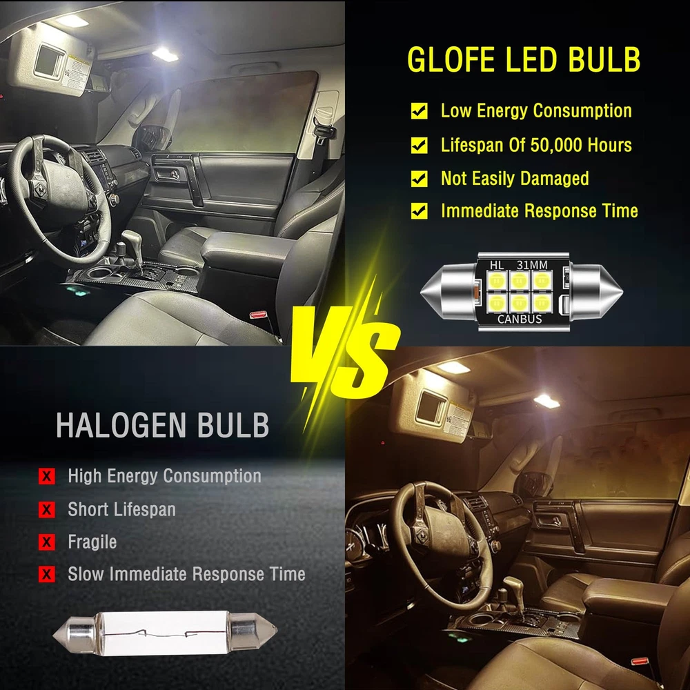 Store Categories Store Categories Other 16 Piece 6000K White LED Interior Light Kit Replacement for 2010-2022 Toyota Product Description Comprehensive Compatibility: This LED Interior Light Kit is specifically designed to Replacement for the 2010-2022 Toyota 4Runner, accommodating all trims and cab sizes for seamless installation. All-Inclusive Package: The package includes a total of 16 LED bulbs, covering various interior lighting components such as Map Lights, Dome Lights, Vanity Mirror Lights, Glove Box Lights, Footwell Lights, Courtesy Door Lights, Trunk Lights, License Plate Lights, and Side Mirror Puddle Lights. Enhanced Brightness: Experience a significant upgrade in brightness with these LED bulbs, offering a 300% improvement over the original stock lights. Built-in Constant Current IC ensures consistent illumination and a lifespan of over 60,000 hours. Hassle-Free Installation: With a plug-and-play design, installation is straightforward and requires no additional parts or modifications. Warranty and Support: Purchase with confidence knowing that GLOFE provides a 1-Year warranty. In the rare event of any product or installation issues, our dedicated customer support team is available to assist you within 24 hours. Payment Policy Shipping Policy Returns Policy Contact us FAQ Payment Policy 1. Payment must be completed via PayPal within three days following the purchase date. 2. I t is important to ensure that the address provided on PayPal matches the one listed on eBay. 3. I f you have successfully bid on an item, please arrange payment within four days to avoid receiving an Unpaid Item Reminder from eBay, w hich could negatively impact your eBay history. 4. B uyers should be aware that they are liable for any import duties, custo ms charges, and taxes that may apply. We recommend consulting with your local customs office to ascertain any extra expenses prior to finalizing your order. Shipping Policy All items will be shipped in 48 hours after receiving your payment . 1. To USA , take standard(10-20 working days) or expedited shipping(4-6 working days). expedited shipping need charge extra shipping fee. 2. To other countries, take standard(15-25 working days) or expedited shipping(5-8 working days). expedited shipping need charge extra shipping fee. Returns Policy We offer 30 days return policy. Please contact us within 30 days t from the date you receive your order if you have any issues with the product or want return .Refund will be send after we got your resend package. All returned items should be in the original packaging , return tracking information should be provided . Buyer is responsible for return shipping cost due to the problem not caused by item quality itself . Don''t worry , please remember we also hope business smooth, our mission like google "Don't be evil" and "communication make life better". Contact us Our office hours are MONDAY - FRIDAY 9:00PM - 6:00PM PST, but we will response you once we get your message .There will be some delay on response if you send message or E-Mail on weekend. We are always been trying to provide best service and reliable products for every customer. If you are satisfied with the product you received,please leave us positive feedback. If you are not satisfied for any reason, please do not be quick to leave negative or neutral feedback.We will work hard to make sure every customer 100 percent satisfied, and resolve any problem for you. FAQ Q1: Will this bulb fit my vehicle? A: We can match almost any vehicle to one of our bulb sizes. eBay only lets us include partial vehicle fitments per listing, but if your vehicle does not show up on the compatibility table at the top of our listings, welcome you to contact us for free consulation before purchasing a product. Q2: My item has not arrived, what's taking so long? A: Sometimes items take longer than expected, especially if it’s going far or to rural area. Check with your post office to see if your item has been held up. Sometimes USPS will not update a tracking number until it has arrived at its destination. If your item still has not arrived after a few days, let us know so we can double check for you and help solve it asap. Q3: Do I need to mention the Year, Make and Model in the notes when place order? A: YES. Please include the Year, Make, and Model in the notes section during checkout to ensure you receive everything needed for your kit! Q4: My bulbs wo n't fit, help! A: Special bulb holder may be required. See if you can take the holder from the stock bulb. If not, let us know. The bulb size may be wrong, double check the item you received with the item you ordered. Do you have an aftermarket lighting housing? These may not be perfectly fitted for aftermarket bulbs and will require some manual modifications. Q5: Neither side lighting up? Both sides flicker, flash, or work inconsistantly. A:Check the headlight fuses, and then check the ballast plugs to insure correct installation. If this doesn't work, there may be a voltage problem with the vehicle. You probably just need a relay or capacitor. Q6: WARNING ABOUT POLARITY Unlike halogen bulbs, LED are polarity sensitive. BEFORE you start your LED kit installation, verify the polarity on your vehicle by simply plugging the LED bulb into your vehicle socket. - if your light turns on, please proceed to install both bulbs onto your vehicle. - if your light DOES NOT turn on, disconnect the bulb and flip the socket in order to reverse the polarity (this will not damage your vehicle electrical system in any way). Once you made sure the LED bulb turns on, please proceed to install both bulbs onto your vehicle. Note: There is no convention when it comes to polarity. Different car manufactures have different polarity setup, even within the car model the polarity setup on your low beams and high beams might be different. Copyright © 2023 Dianxiaomi