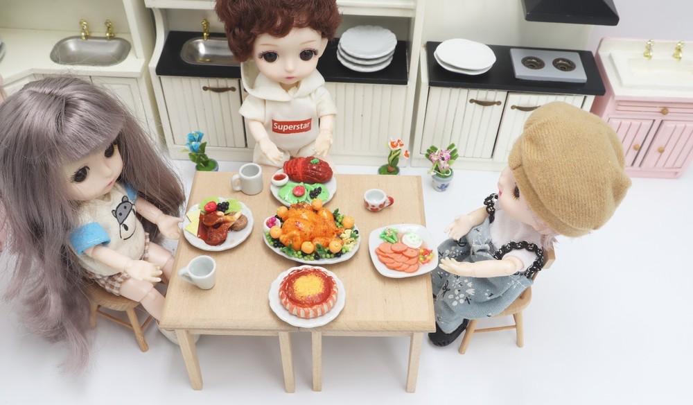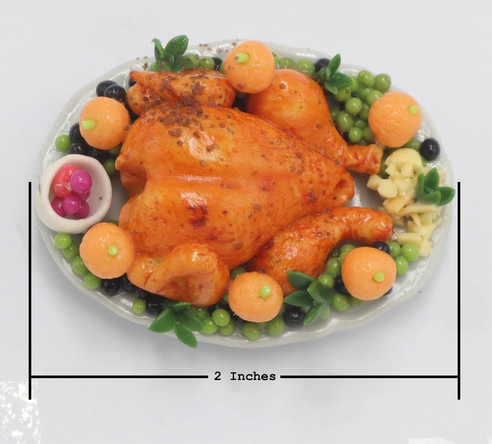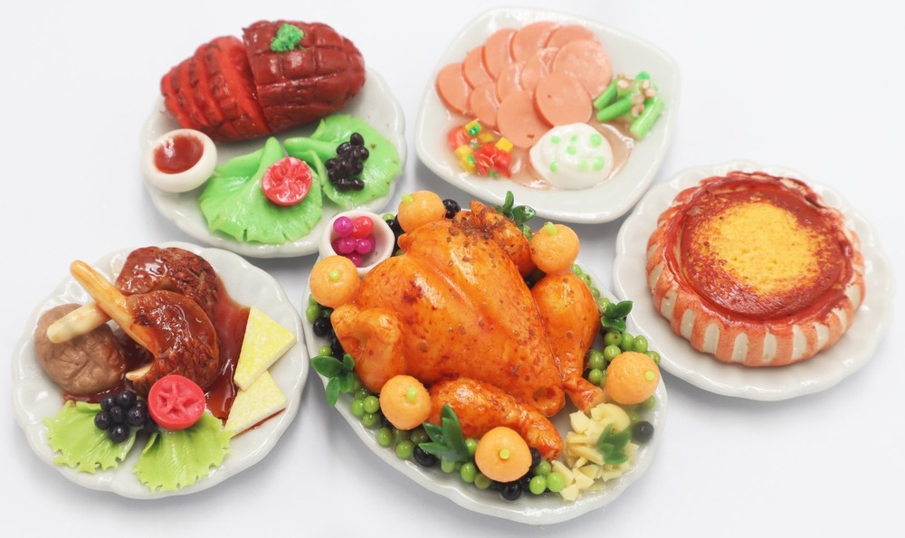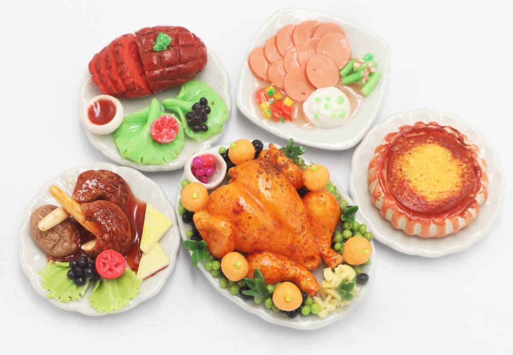 Premium Handmade Miniature Unique • Handcrafted • Collectible Art Highly Detailed 1/6 Scale Dollhouse Miniature Food Set – Roast Turkey Dinner Collection Product Description Bring your dollhouse scenes to life with this ultra-realistic miniature food set , featuring a beautifully crafted roast turkey centerpiece along with a variety of classic side dishes. Perfect for collectors, hobbyists, and miniature food lovers. Key Features Scale: 1/6 Dollhouse Miniature Handmade Craftsmanship: Each piece is carefully sculpted and painted by hand Ultra Realistic Design: Detailed textures, colors, and plating Premium Materials: Durable clay food + ceramic-style plates Complete Dinner Set: Includes roast turkey, vegetables, desserts, and side dishes 🍽️ What’s Included Roast turkey platter with vegetables Sliced meat dish Sausage / cold cut plate Dessert pie Additional side dishes & garnishes 🎯 Perfect For Dollhouse decoration (1/6 scale scenes) Miniature food collectors DIY crafts & display Photography props Gifts for hobby lovers 📏 Size Plate diameter approx. 3–4 cm,1.4-2 Inches Fits standard 1/6 scale dollhouse setups Note This is a miniature model , not real food Handmade items may have slight variations (adds uniqueness) Specifications Scale 1/6 Material Polymer Clay & Resin Style Handmade Miniature Food Condition New Shipping & Delivery Carefully packed to ensure safe delivery Processing time: 1–3 business days Worldwide shipping with tracking Estimated delivery: 7–21 business days Returns & Guarantee 30-day return policy Item must be in original condition Refund or replacement available Fast customer support response Buy with Confidence: Every item is handmade and quality-checked before shipping. Add to Cart Now Limited handmade pieces available – order today! © Handmade Miniature Studio | All Rights Reserved