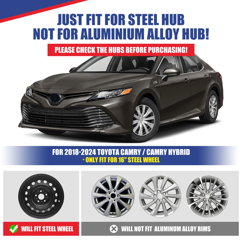 Head Lights Tail Lights Fog Lights Turn Signal Bumper Fender Flare Inner Fender Hubcaps Refrigerator Other Items for sale Head Lights Tail Lights Fog Lights Turn Signal Bumper Fender Flare Inner Fender Liners Portable Refrigerator 16" Set of 4 Wheel Rims Covers For 2018-2024 Toyota Camry/Hybrid Black Hubcaps Fitment: For 2018-2024 Toyota Camry /Camry Hybrid Specifications Condition: 100% New Material: ABS plastic Color: Black Lacquer Simple installation Package includes: 4 wheel covers as pics show Feature Hubcaps snap onlike the original hubcaps do, providing a tight and very secure fit. When installed, your existing chrome lug nuts will show through, just like the factory wheel covers. These install very simply, you can do it yourself. These will fit the standard 16" steel wheel, be sure to check your tire/wheel size. Most vehicle models come with multiple wheel options & sizes for the same year. Payment Shipping Return About us Contact us Payment Appreciated for the prompt payment, Contact us if bid by mistake, system open unpaid item automatically. Payment must be complete within 3 days from the date you purchase or after the end of auction. Items unpaid within 3 days of the auction end will be forfeited. We reserve the right of cancel the order and re-selling the items. Shipping All shipment will ship by UPS or USPS . All items will be ship within 1 working days , and we will ship out all orders as soon as possible after payment verified, please allow up to 1-4 business days for delivery. CANADA & International customers please note: your government might charge a duty tax (brokerage fees). We do not responsible for any custom duty or import tax. Why Choose the US Stock? 1. Us Local Shipping, No Extra Customs Cost to the US. 2. Fast Delivery: 1-4 Working days Delivery. 3. Best After-Sales Service!!! Return The buyer is responsible for all return shipping including a result of customer error or defective item. 1) If you received an incorrect, damaged, defective, or item not as described, contact us for full refund or replacement on our cost. 2) If you want to return the item, please contact us within 60 days after package received. Return products must also be in its original condition: including box, packaging and all other accessories. About us We are the best auto parts, we have been pursuing excellence, continuous exploration as the slogan, let customer satisfaction is our purpose! We adhere to the United States local delivery, one year warranty! Welcome! Contact us How Should You Contact us? Please Read The Item Description And See if The item Fits Your Vehicle Exactly. If You Found Any questions, Feel Free to email us by "Ask a question" Our Office Hours Are Monday - Friday 8:00am - 5:00pm PST / 11:00am - 8:000pm ET, We Do Not Answer Any E-Mails On Weekend, And We Will Reply All E-Mails In The Order It Was Receive. All E-Mail Take Us Around 24 Hours To Respond To Any E-Mail. We Are Close During The Weekends And We Do Not Answer Any E-Mails During That Time.
