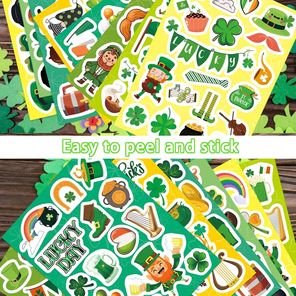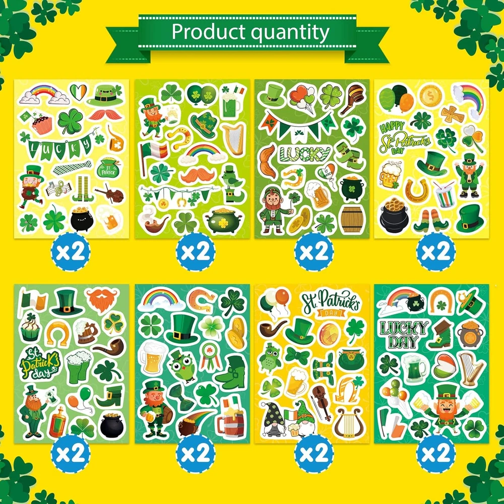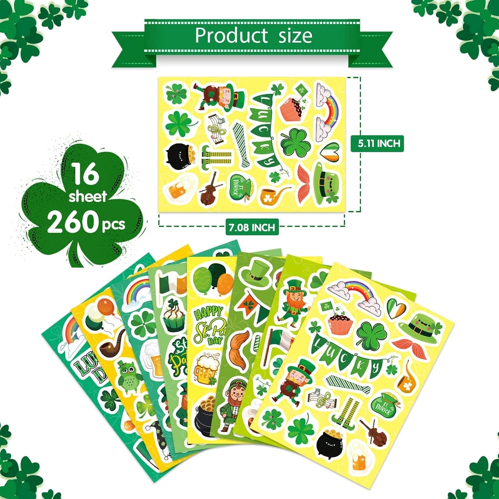 16 Sheets St. Patrick’S Day Theme Stickers for Kids-Lucky Shamrock Clover Hat Ir