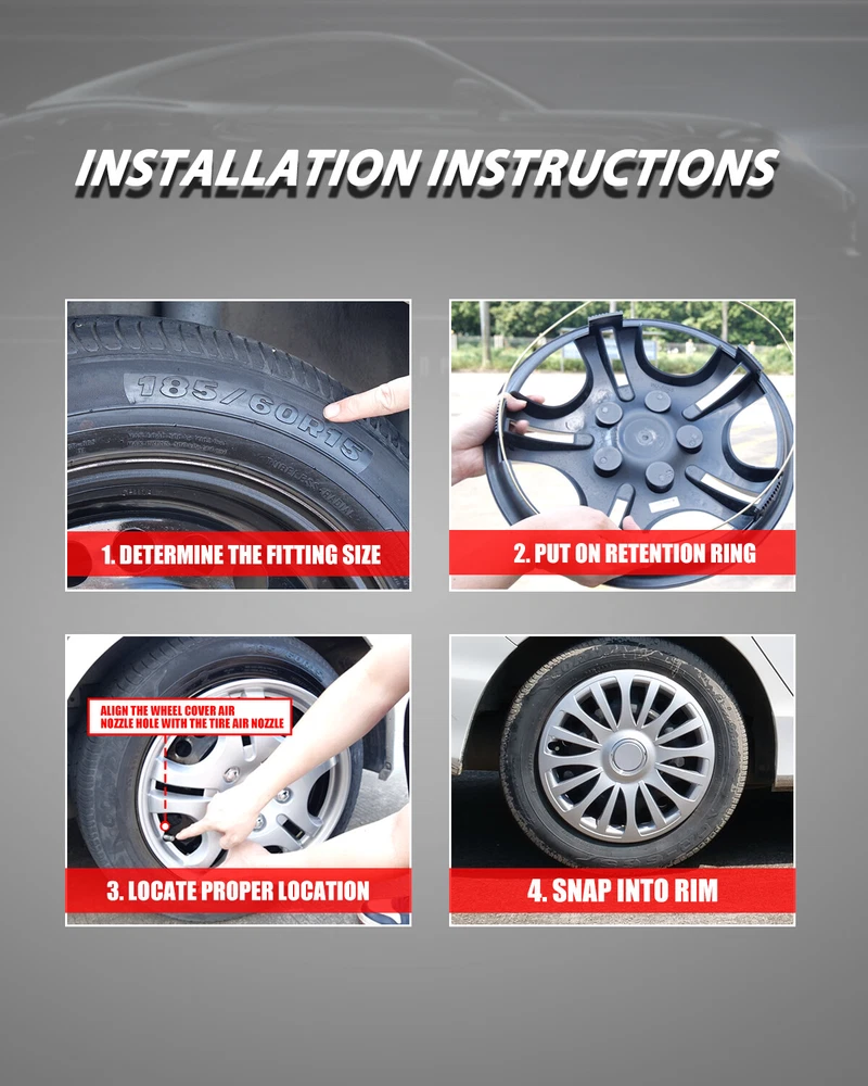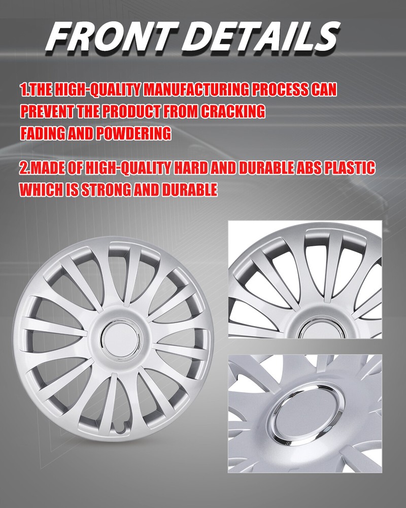 Store Categories Other Car Refrigerator Front Bumper Rear Bumper Fender Flares Inner Fenders Side Steps Running Board A-Pillar Light Mount Brackets Headlights Taillights Fog Lights LED Headlights LED Taillights LED Fog Lights Jeep Chevrolet Ford Toyota Dodge GMC Wheel Covers Features ✴ PERFECT FIT: This wheel hub cap is specifically designed to perfectly fit for 16-inch wheels, ensuring a seamless match and enhanced aesthetics. It complements the overall design of the vehicle, elevating its visual appeal. ✴ HIGH-QUALITY MATERIAL: Constructed from high-quality materials, this wheel hub cap guarantees durability and longevity. It withstands various road conditions and environmental factors encountered during daily driving, maintaining its pristine condition. ✴ EASY INSTALLATION: Installing this wheel hub cap is a breeze and requires no specialized tools or modifications. It comes with a user-friendly system, allowing for a hassle-free installation process by following the provided instructions. ✴ PROTECTIVE FUNCTION: Besides its aesthetic appeal, this wheel hub cap serves as a protective barrier for the wheels. It prevents scratches and potential damage caused by stones, debris, or other objects, safeguarding the wheel's surface. ✴ AFTER-SALES SERVICE: If There Is a Loss of Product Parts, or Any Parts of The Problem, We Can Provide After-Sales Service, Please Contact Us on The Order Page. Wheel Covers Specification ✴ Type: Hub caps ✴ Number in Pack: 4 ✴ Color: Silver Lacquer ✴ Material: ABS ✴ Compatible Wheel Diameter: 16 in ✴ Finish: Glossy ✴ Installation Type: Snap-On ✴ Model: Universal Hubcap for Iron Wheels , Not fit for 2013-2019 NISSAN SENTRA Steel Wheel,Not fit for 2011-17 NISSAN LEAF Steel Wheel Wheel Covers Package ✴ 1 Set of 4 Hub caps and 4 retention rings Payment Delivery details Terms of sales About us Contact us Payment We accept PayPal, credit card , Apple Pay & Google Pay etc. Delivery details All items will be shipped within 1-3 business days after payment received, we will try our best to ship out as soon as we can, hope for your understanding. Please double confirm your address and contact information, which will help the delivery faster and more accurately. Note :buyers who purchase international products need to pay import tariffs!!! Terms of sales Professional installation is highly recommended. Any problem of the item please feel free to contact us first , please D o Not leave negative feedback before that, or simply return it within 60 Days in original condition. We will resolve it for you ASAP. About us Any questions please do not hesitate to contact us directly by eBay message . We will reply you within 24 hours asap, thanks for your understanding. Contact us Should you have any problem or require any further information please feel free to contact us . If you are satisfied with our product and service, please kindly leave us a positive feedback. Popular Categories On Mar 14, 2025 at 20:30:26 PDT, seller added the following information: