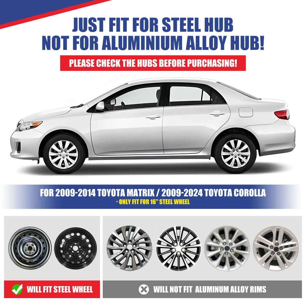 Head Lights Tail Lights Fog Lights Turn Signal Bumper Fender Flare Inner Fender Hubcaps Refrigerator Other Items for sale Head Lights Tail Lights Fog Lights Turn Signal Bumper Fender Flare Inner Fender Liners Portable Refrigerator 16" Set Of 4 Wheel Covers Full Rim Snap On Hubcaps R16 For 2009-14 Toyota Matrix Specification: Fits either LH (Driver Side) or RH (Passenger Side) Rear and Front Type: Wheel Hub Caps Compatible Wheel Diameter: 16 inches Features:Car Wash Safe, Easy to Install, No Tools Required Material: ABS Number in Pack: 4 Wheel Type: Steel Placement on Vehicle: Front, Left, Rear, Right Installation Type: Snap-On Description: 100% Brand new in box. Unused, unopened, undamaged item in its original packaging Rust proof and corrosion resistant ABS Plastic Easy push on installation with no need for tools Stainless Steel retention ring for durability and maximum grip Designed with a tire steam cut out on the hubcap and retention ring Premium designs and triple coat color paint hubcaps Come in a complete set of 4 caps and 4 retention rings About this item: ✔️Please Ensure to Check your Tire/Wheel Size Before Purchase! ✔️Designed for (P15) 16” Wheels and will not fit over aluminum alloy wheels. ✔️ Easy to Install - Mount our car hub caps onto your wheels in just 10 minutes! ✔️ Customize Your Ride - No need for a total overhaul to enhance your car's look! Conveniently replace run-down, aging or rusty car hubcaps with a stunning rim cover. ✔️Designed from OEM Replica Style Wheels– For Replacement with Fast & Easy Snap-on Installation - Made from Premium ABS Material – Lab & Road Tested for Performance and Ultimate Durability. ✔️Adjustable Retention Rings assures Firm Grip Gives Support to the Hubcaps Making Sure They Stay in Place. Locate the Curve on the Retention Ring and Match to the Tire Air Valve to Install. Payment Delivery details Terms of sales About us Contact us Payment We accept PayPal, Google Pay, Credit Cards, and Debit Cards. - International Buyers are responsible for any customs and duties fees for their country. - Please note that packages shipped to a PO BOX are shipped via USPS. Delivery details Orders placed before 2 PM PST will be processed the same day. All orders after 2 PM PST will be processed the following business day. We ship our packages out via UPS for most customers excluding PO/APO Box and international addresses in which we use USPS. We offer expedited services via UPS Next Day Air and UPS 2nd Day Air. Tracking numbers are provided within the following business day. Please note that we are located in Southern California. We offer free shipping for the 48 contiguous states. Additional shipping fees apply to Hawaii, Alaska, Puerto Rico, Virgin Islands, Guam, American Samoa, and the Northern Mariana Islands. Additional shipping fees are applicable for PO/APO Boxes, International, and expedited. Terms of sales Professional installation is highly recommended. Any problem of the item please feel free to contact us first, please Do Not leave negative feedback before that, or simply return it within 60 Days in original condition. We will resolve it for you ASAP. About us ME2-WOLFX was started in 2007 with the goal to provide products to consumers at an affordable price while providing excellent customer service. We specialize in the design and production of automotive lamps. Headlights, tail lights, fog lights, Jeep exterior parts Etc. Brand: Ford,Chevy, Dodge, Toyota, Jeep,Nissan,Honda Etc More good things are welcome to enter the my store to buy ! ! ! We are located in Southern California. Our office hours are Monday through Friday from 9 AM to 5 PM PST. Contact us We have a customer service team that can answer any questions or concerns during our hours of operations, Monday through Friday from 9 AM to 5 PM PST. You can reach us via messages.