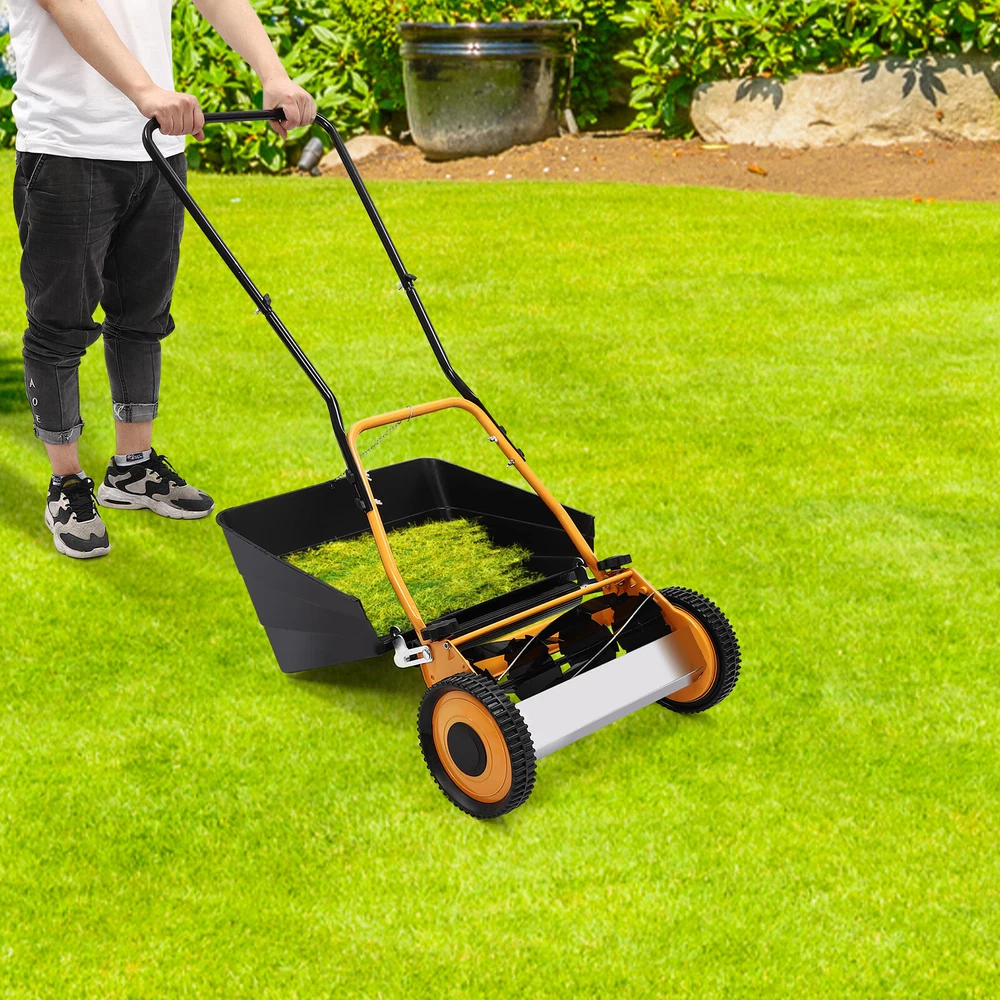 Specifications Material: Steel, Aluminum Process: Plastic Spraying Color: Orange, Black Style: Modern Assembly Required: Yes Mount Type: Freestanding Operation Type: Manual Number of Wheels: 2 Adjustable Mowing Height: 12-42mm/ 0.47-1.65 in Each Wheel Diameter: 20.5cm/ 8.07 in Cutting Width: 40.64cm/ 16 in Handle Size: 66*41cm/ 25.98*16.14 in Wheel and Handle Articulation Size: 41*27cm/ 16.14*10.63 in Overall Product Width: 53cm/ 20.87 in Package Size: 55*36*32cm/ 21.65*14.17*12.60 in Gross Weight: 9.5kg/ 20.94 lbs Package Included 1* Hand Push Lawn Mower 1* Grass Collecting Box Other Accessories for Assembly 16" Walk Behind Manual Reel Mower Adjustable 5-Blade Hand Push Lawn Catcher Yard Description Imagine a weekend morning with the sun shining as you push this lawn mower slowly through your small yard and have an intimate conversation with nature. It is made of high-strength steel, sturdy and durable. Fine craftsmanship ensures that every detail of it stands the test of time. Its ergonomic handle design makes every push a breeze. Together, let's discover extraordinary fun on ordinary days! Key Features Sturdy and Durable: The product is made of high-quality steel and aluminum, using plastic spraying technology, with high strength, wear resistance, and long service life. High Efficiency: With a cutting width of 16 inches and sharp four 5-edged blades, this product enables faster and more efficient mowing work to build your backyard or garden with ease. Adjustable Height: With the knobs on the product, you can easily adjust its cuttable height (0.47-1.65 inches) to meet your needs for different styles of lawns, creating your private oasis. 2-in-1 Function: This product combines the functions of mowing and collecting grass in one. The rear collection box with a fixing chain allows you to collect the grass as you mow to prevent it from scattering on your lawn and taking the effort to clean it up again, which is very convenient. Move at Will: The 2 front wheels with a diameter of 8.07 inches and non-slip patterns allow you to push this mower on the lawn as if you were on flat ground, helping to achieve maximum maneuverability for a better mowing experience. Environmentally Friendly: Without complicated electric power or fuel, this product operates in the most primitive and economical way with zero emission and low noise, providing a healthier and fresher living environment for you and your family. Enjoy Fun: It is not only a tool but also a link between family members' emotions. Bring your children along to participate in yard care, let them feel the charm of nature in labor, enhance the interaction and tacit understanding between parents and children, letting happiness and love permeate with the fragrance of grass. Easy Installation: With complete accessories and simple construction, you can assemble it yourself and enjoy the installation process. Ideal Gift: Thanks to its functionality, you can give it to your friends who have a beautiful backyard as a housewarming, Christmas, or Thanksgiving gift! Details Ergonomic Handle: It's the right height and comfortable to hold, making it easy to push even for novices and older people. Round Corners: They take better care of your skin when you assemble, use, and clean this product. Application It can be used for villas, homes, backyards, park landscaping, factory landscaping, grassland woodland gardens, and more. Specifications Material: Steel, Aluminum Process: Plastic Spraying Color: Orange, Black Style: Modern Assembly Required: Yes Mount Type: Freestanding Operation Type: Manual Number of Wheels: 2 Adjustable Mowing Height: 12-42mm/ 0.47-1.65 in Each Wheel Diameter: 20.5cm/ 8.07 in Cutting Width: 40.64cm/ 16 in Handle Size: 66*41cm/ 25.98*16.14 in Wheel and Handle Articulation Size: 41*27cm/ 16.14*10.63 in Overall Product Width: 53cm/ 20.87 in Package Size: 55*36*32cm/ 21.65*14.17*12.60 in Gross Weight: 9.5kg/ 20.94 lbs Package Included 1* Hand Push Lawn Mower 1* Grass Collecting Box Other Accessories for Assembly Notes Please note that this product is not recommended for use in high lawns(>1.65 inches). Please do not touch the blades with your bare hands, we recommend that you wear protective gloves(not included) when using this product. Please allow the slight color difference caused by the shooting light and 1-3cm error due to manual measurement, and make sure you do not mind before you order. Payment Delivery details Terms of sales About us Contact us Payment We accept ebay payment 。 Fees such as import duties, taxes are not included in the item price or shipping costs. These charges are the buyer's responsibility. Delivery details Shipping: 2-9 working days to: USA Terms of sales We maintain high standards of excellence and strive for hundred percent customer satisfaction. Feedback is very important to us. We hope that you contact us immediately before you give neutral or negative feedback, so that we can address your concerns. It is impossible to address issues if we do not know about them! About us Your satis faction is our ultimate goal. We work hard to earn your trust and future business. Our certified technicians have tested each item before shipping. The unit comes with 1 year limited warranty on all manufacturing defects. a) If you receive a defective item, you may return it or ask for a discount. Please contact us within 14 days after you receive the package. b) What you returned must be intact and in its original packaging as re? u. Customer is responsible for shipping costs of the returned item. c) We will cover the cost of shipping back t with the shipping rate indicated in the registration page. We will send you a new unit or refund the full payment you paid. Thank you. Contact us Business Hour Business Hour: Monday To Friday: 8:30 AM to 5:00 PM (Beijing China time) Due to time zones, our reply to your questions may not be immediately. But within above working time, we will reply your email within 24 hours. If it's non-work