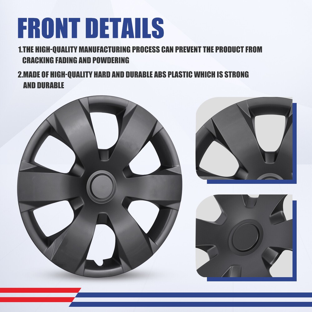 Head Lights Tail Lights Fog Lights Turn Signal Bumper Fender Flare Inner Fender Hubcaps Refrigerator Other Items for sale Head Lights Tail Lights Fog Lights Turn Signal Bumper Fender Flare Inner Fender Liners Portable Refrigerator 16'' Wheel Covers Full Rim Snap On Hubcaps For 2007-2011 Toyota Camry set of 4 Specification: Fits either LH (Driver Side) or RH (Passenger Side) Rear and Front Type: Wheel Hub Caps Compatible Wheel Diameter: 16 inches Features:Car Wash Safe, Easy to Install, No Tools Required Material: ABS Number in Pack: 4 Wheel Type: Steel Placement on Vehicle: Front, Left, Rear, Right Installation Type: Snap-On Description: 100% Brand new in box. Unused, unopened, undamaged item in its original packaging Rust proof and corrosion resistant ABS Plastic Easy push on installation with no need for tools Stainless Steel retention ring for durability and maximum grip Designed with a tire steam cut out on the hubcap and retention ring Premium designs and triple coat color paint hubcaps Come in a complete set of 4 caps and 4 retention rings About this item: ✔️Please Ensure to Check your Tire/Wheel Size Before Purchase! ✔️Designed for (P15) 16” Wheels and will not fit over aluminum alloy wheels. ✔️ Easy to Install - Mount our car hub caps onto your wheels in just 10 minutes! ✔️ Customize Your Ride - No need for a total overhaul to enhance your car's look! Conveniently replace run-down, aging or rusty car hubcaps with a stunning rim cover. ✔️Designed from OEM Replica Style Wheels– For Replacement with Fast & Easy Snap-on Installation - Made from Premium ABS Material – Lab & Road Tested for Performance and Ultimate Durability. ✔️Adjustable Retention Rings assures Firm Grip Gives Support to the Hubcaps Making Sure They Stay in Place. Locate the Curve on the Retention Ring and Match to the Tire Air Valve to Install. Payment Shipping Return About us Contact us Payment Appreciated for the prompt payment, Contact us if bid by mistake, system open unpaid item automatically. Payment must be complete within 3 days from the date you purchase or after the end of auction. Items unpaid within 3 days of the auction end will be forfeited. We reserve the right of cancel the order and re-selling the items. Shipping All shipment will ship by UPS or USPS . All items will be ship within 1 working days , and we will ship out all orders as soon as possible after payment verified, please allow up to 1-4 business days for delivery. CANADA & International customers please note: your government might charge a duty tax (brokerage fees). We do not responsible for any custom duty or import tax. Why Choose the US Stock? 1. Us Local Shipping, No Extra Customs Cost to the US. 2. Fast Delivery: 1-4 Working days Delivery. 3. Best After-Sales Service!!! Return The buyer is responsible for all return shipping including a result of customer error or defective item. 1) If you received an incorrect, damaged, defective, or item not as described, contact us for full refund or replacement on our cost. 2) If you want to return the item, please contact us within 60 days after package received. Return products must also be in its original condition: including box, packaging and all other accessories. About us We are the best auto parts, we have been pursuing excellence, continuous exploration as the slogan, let customer satisfaction is our purpose! We adhere to the United States local delivery, one year warranty! Welcome! Contact us How Should You Contact us? Please Read The Item Description And See if The item Fits Your Vehicle Exactly. If You Found Any questions, Feel Free to email us by "Ask a question" Our Office Hours Are Monday - Friday 8:00am - 5:00pm PST / 11:00am - 8:000pm ET, We Do Not Answer Any E-Mails On Weekend, And We Will Reply All E-Mails In The Order It Was Receive. All E-Mail Take Us Around 24 Hours To Respond To Any E-Mail. We Are Close During The Weekends And We Do Not Answer Any E-Mails During That Time.