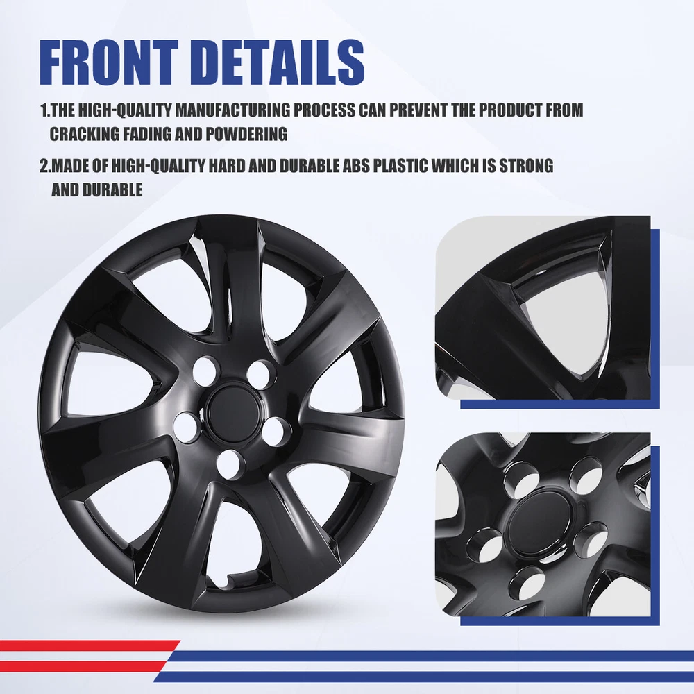 Head Lights Tail Lights Fog Lights Turn Signal Bumper Fender Flare Inner Fender Hubcaps Refrigerator Other Items for sale Head Lights Tail Lights Fog Lights Turn Signal Bumper Fender Flare Inner Fender Liners Portable Refrigerator 16'' Wheel Covers Full Rim Snap On Hubcaps For 2007-2011 Toyota Camry set of 4 Specification: Fits either LH (Driver Side) or RH (Passenger Side) Rear and Front Type: Wheel Hub Caps Compatible Wheel Diameter: 16 inches Features:Car Wash Safe, Easy to Install, No Tools Required Material: ABS Number in Pack: 4 Wheel Type: Steel Placement on Vehicle: Front, Left, Rear, Right Installation Type: Snap-On Description: 100% Brand new in box. Unused, unopened, undamaged item in its original packaging Rust proof and corrosion resistant ABS Plastic Easy push on installation with no need for tools Stainless Steel retention ring for durability and maximum grip Designed with a tire steam cut out on the hubcap and retention ring Premium designs and triple coat color paint hubcaps Come in a complete set of 4 caps and 4 retention rings About this item: ✔️Please Ensure to Check your Tire/Wheel Size Before Purchase! ✔️Designed for (P15) 16” Wheels and will not fit over aluminum alloy wheels. ✔️ Easy to Install - Mount our car hub caps onto your wheels in just 10 minutes! ✔️ Customize Your Ride - No need for a total overhaul to enhance your car's look! Conveniently replace run-down, aging or rusty car hubcaps with a stunning rim cover. ✔️Designed from OEM Replica Style Wheels– For Replacement with Fast & Easy Snap-on Installation - Made from Premium ABS Material – Lab & Road Tested for Performance and Ultimate Durability. ✔️Adjustable Retention Rings assures Firm Grip Gives Support to the Hubcaps Making Sure They Stay in Place. Locate the Curve on the Retention Ring and Match to the Tire Air Valve to Install. Payment Shipping Return About us Contact us Payment Appreciated for the prompt payment, Contact us if bid by mistake, system open unpaid item automatically. Payment must be complete within 3 days from the date you purchase or after the end of auction. Items unpaid within 3 days of the auction end will be forfeited. We reserve the right of cancel the order and re-selling the items. Shipping All shipment will ship by UPS or USPS . All items will be ship within 1 working days , and we will ship out all orders as soon as possible after payment verified, please allow up to 1-4 business days for delivery. CANADA & International customers please note: your government might charge a duty tax (brokerage fees). We do not responsible for any custom duty or import tax. Why Choose the US Stock? 1. Us Local Shipping, No Extra Customs Cost to the US. 2. Fast Delivery: 1-4 Working days Delivery. 3. Best After-Sales Service!!! Return The buyer is responsible for all return shipping including a result of customer error or defective item. 1) If you received an incorrect, damaged, defective, or item not as described, contact us for full refund or replacement on our cost. 2) If you want to return the item, please contact us within 60 days after package received. Return products must also be in its original condition: including box, packaging and all other accessories. About us We are the best auto parts, we have been pursuing excellence, continuous exploration as the slogan, let customer satisfaction is our purpose! We adhere to the United States local delivery, one year warranty! Welcome! Contact us How Should You Contact us? Please Read The Item Description And See if The item Fits Your Vehicle Exactly. If You Found Any questions, Feel Free to email us by "Ask a question" Our Office Hours Are Monday - Friday 8:00am - 5:00pm PST / 11:00am - 8:000pm ET, We Do Not Answer Any E-Mails On Weekend, And We Will Reply All E-Mails In The Order It Was Receive. All E-Mail Take Us Around 24 Hours To Respond To Any E-Mail. We Are Close During The Weekends And We Do Not Answer Any E-Mails During That Time.