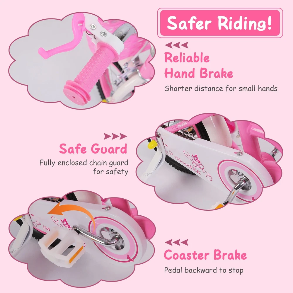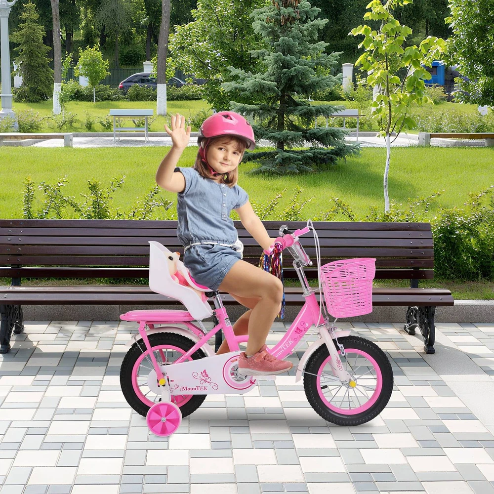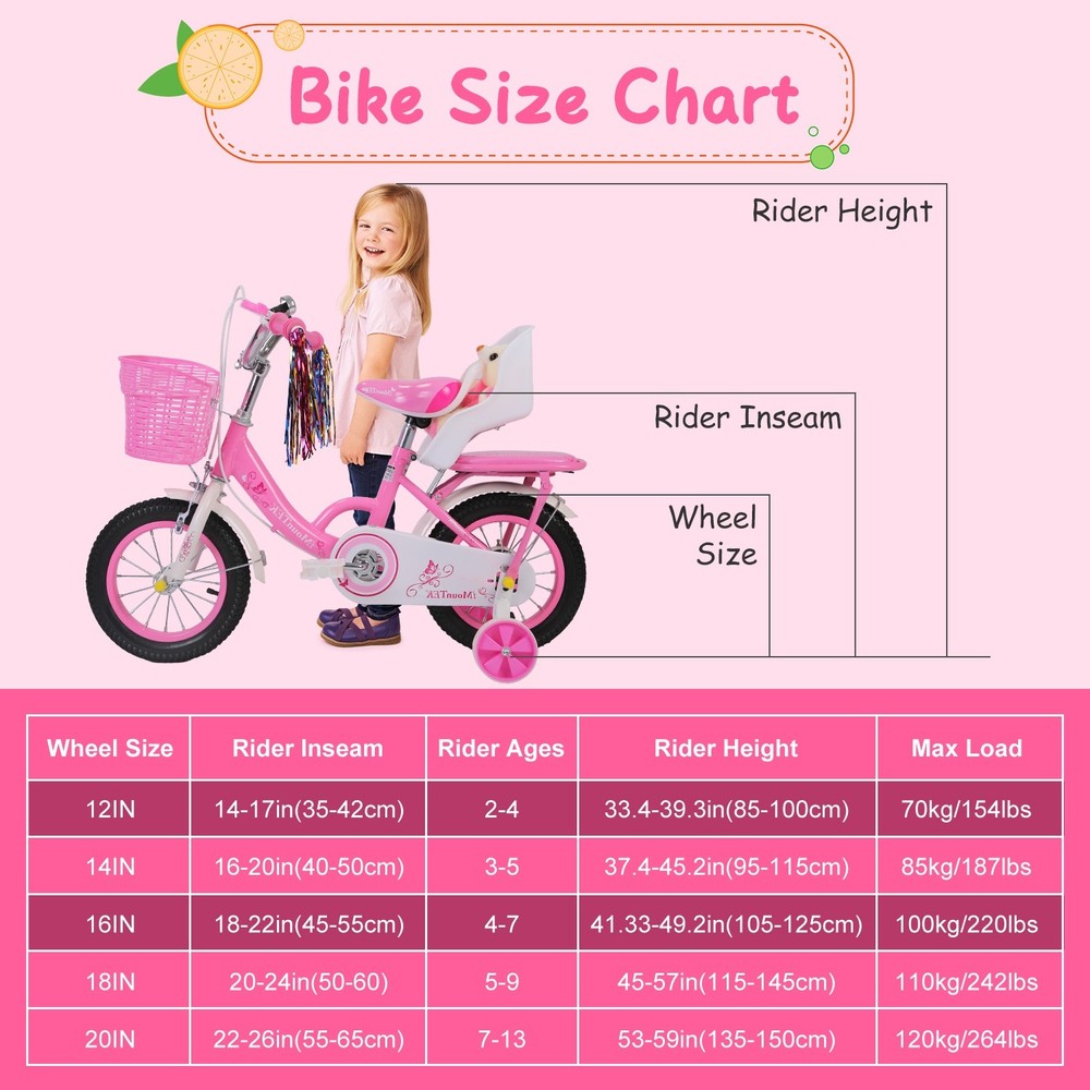Free Shipping Featured Item Product Detail Image Gallery Product Description Overview: From the first wobbly strides on the balance bike to the first time hitting real singletrack, our all-new kid's bikes are designed to create amazing rides. The cute and lovely outlook attracts kids to ride on it. The bike has extra-wide tires and pedals, making it easy to maintain balance and ride even for young beginners. Low stance and delicate curve frame is easy for kids to hop on. Considerate helmet renders your kid more safety when riding. Extra backpack is great for your kids to put water bottles, paper tissues and other riding gadgets. Equipped with never-bend training wheels that will support them as they learn to master two wheels. Easy for kids to learn riding! A must-have gift for them in their childhood. Features: Cute & Attractive Outlook: Cute bike in lovely colors and patterns,detachable training wheels for excellent steadiness,a ,and a basket for her dolls. It's a great first bike with all the bells and whistles a child will need to learn and get comfortable with biking. Easy Cycling: The bike has extra-wide tires and pedals,making it easy to maintain balance and ride even for young beginners. Low stance and delicate curve frame is easy for kids to hop on. Great Protection: Full cover chain guard provides a great protection for kids riding. Come with soft grip and beautiful streamers,easy for the little one to manipulate the bike. And front caliper brake & rear brake with handbrake provide great speed control. Extra Helmet & Backpack: Considerate helmet renders your kid more safety when riding. Extra backpack is a great companion when riding,you can put water bottles,paper tissues and other riding gadgets. Training Wheels: Equipped with never-bend training wheels that will support them as they learn to master two wheels. Strengthened bracket is more secure & strong for kids’ riding. Also features full chain guard & anti-slip resin pedal for added safety. Specifications: Brand: iMountek Color: Pink Wheel Diameter Options: 16in Load Bearing: 100kg/220lbs Materials: Carbon Steel 16in Bike Height: 105cm-125cm/41.33in-49.2in (4-7Years Old); 100kg/220lbs Max Load 16in Package Size & Weight(2Pcs): 89x32x46cm/35.04x12.6x18.11in; 18.6kg/41lbs Package Contents: 1 x Kids Bike 1 x Helmet 1 x Backpack 1 x Toy Seat 1 x Toy Terms & Conditions Thank you for your business !