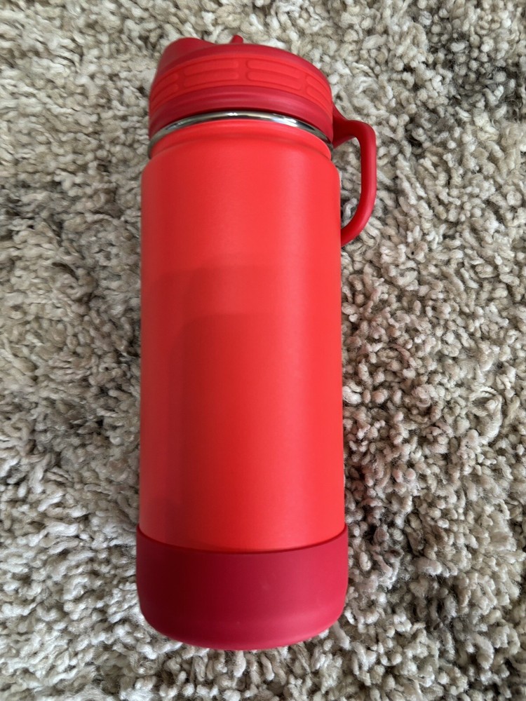 Keep your cold beverages chilled with this ThermoFlask 16 oz. Temp Lock Stainless Steel Insulated Bottle in Red. Made of high-quality stainless steel, this bottle features a twist lid and a solid color pattern. It has a capacity of 474 mL and stands at 8.5 inches tall with a width of 3.5 inches. This insulated bottle is perfect for guys or girls who love to enjoy cold drinks on the go. It is manufactured in Chile and comes in a unit quantity of 1. With its brand name, ThermoFlask, you can trust that this bottle will keep your drinks cold for a longer period. Get yours now and enjoy your favorite cold beverages anytime, anywhere! Visit my eBay store for more new and lightly used clothing, collectibles, and other items.