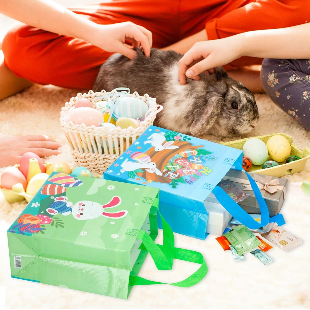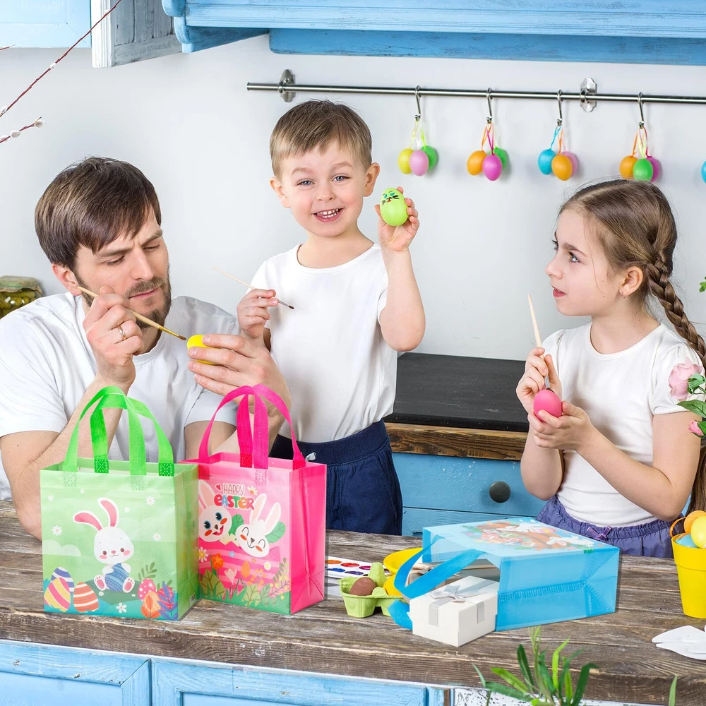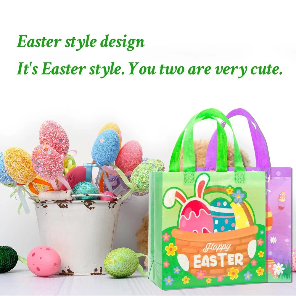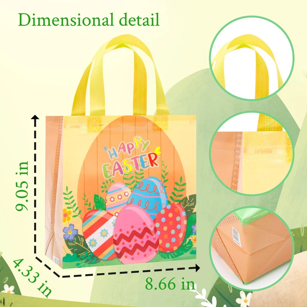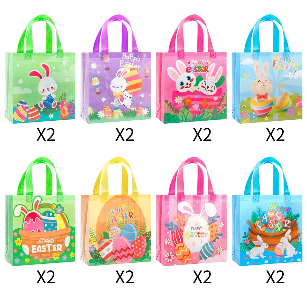 Features & Benefits: 16 pack Easter non-woven bags, patterned with holiday elements and printed with related words, with the portable and strong handles, are easy to carry and saves energy for you. Durable and reusable, suitable to be used as gift return bags, candy bags, storage bags at parties, such as Easter party, Easter egg hunt game, birthday parties, full of fun. Specifications: Material: non-woven Size: 9 x 8.6x 3.1 inch Package includes: 16 x Easter Non-Woven Bag Party Supplies: 16 packs Easter party bags in 8 designs, each style will fun to you,and catch the child's eye.Perfect for giving out birthday party favors and game theme small gifts. Game Of Party Supplies Size Measurement: Each Cartoon party bag at the Open size of 9 x8.6 x3.1 inches.These Cartoon game party bags are the perfect containers for candies, gifts, goods in the kids game themed parties decorations. Cute Theme: Our Easter bags are patterned with watercolor Easter egg and bunny, colored in pink, yellow, green and blue, purple and orange, cute and delicate, which will attract people's attention at the party. Durable Material: Made from good quality non-woven fabric, lightweight and reusable, with the portable and strong handles, easy to carry around when you are going out, printing and dyeing craft, look beautiful and delicate. Wide Range of Use: Suitable to be used as gift return bags, candy bags, storage bags at parties, such as Easter party, Easter egg hunt game, birthday parties, very practical.