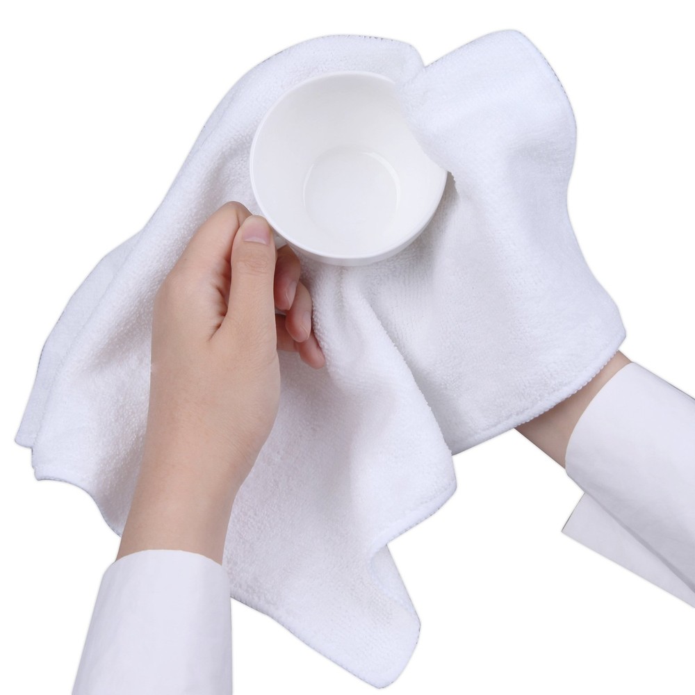 These microfiber cleaning cloths from are an effective and reusable tool for cleaning your car, truck, boat, or household surfaces. Each microfiber cleaning cloth is small and convenient (16-inches x 24-inches) and can be used for a variety of cleaning jobs. Perfect in the garage for cleaning cars, trucks, boats, and RV's as well as in your home on TV's, counter tops, and more. The soft microfiber used in these cloths is super absorbent and made to trap dirt, grime, and other particles without leaving any lint or streak residue behind or scratching paints, coats, or other surfaces. The soft, non-abrasive microfiber material can absorb eight times its own weight and doesn't require any chemicals to clean. Unlike paper towels or other disposable cleaning cloths, microfiber cleaning cloths are machine washable and can be reused hundreds of times without losing absorbency. For best washing results, wash cleaning cloths with like colors in cold water. Premium ultra-soft, large and thick, highly absorbent towel, great for cleaning windows, kitchenware, car and dry anything without scratching the surface. Made of 80% polyester & 20% polyamide can soak up water from the countertop and tables instantly and without lint or streaks left behind. Professional grade microfiber towels, premium quality stitching with reinforced edges, make the towels durable and last hundreds of washing. Fabric Weight 350GSM(grams/square meter), can be used as car wash towel, window glass cleaning towel, car drying towel, auto polishing buffing towel, finishing towel, and so on. This pack contains 12pcs white towels which are 16x24 inches in size that gives you both quality and quantity. Use them everyday to enjoy your cleaning.