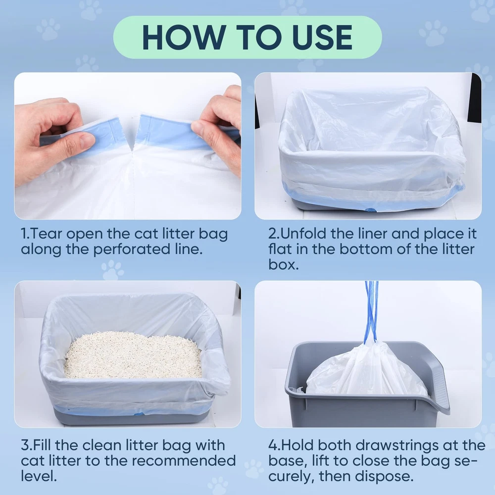 160 Count Cat Litter Box Liners Compatible with Litter Robot 3 & 4, Cat Litter Liners for Automatic Litter Box, 10-12 Gallon Heavy Duty Waste Bags with Drawstrings, 25.19" x 15.7" Fits Most Automatic Litter Boxes: Compatible with Litter Robot 3 & 4 and other self-cleaning cat litter boxes models. These heavy-duty replacement cat litter bags provide a secure, reliable fit for automatic litter box. Ensures hassle-free, leak-proof cleanup. Extra Large Capacity & Long-Lasting: Includes 160-count cat litter bags for automatic litter box. 25.19" x 15.7" heavy-duty litter box liners hold 10-12 gallons—fewer changes, less waste. Leakproof & Scratch-Resistant: Crafted from thick, premium material with a robust seal, these litter box liners resist tears, scratches, and leaks to lock in liquids and odors. Keep your cat litter box area clean, fresh, and make changing cat litter bags effortless. Strong Drawstring Design: Featuring robust, easy-lift handles for a secure, spill-proof seal. Just pull, tie, and toss—no mess, no odor, and no dirty hands.Our cat litter box liners are ideal for busy pet owners who value cleanliness and convenience. Compact Rolls: Space-saving design for easy storage and quick access. Perfect as litter box liners, pet cleanup bags, or trash bags.