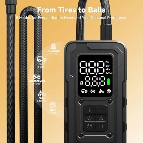 160 PSI Portable Tire Inflator - 4X Faster Air Compressor Pump for Cars & Bikes
