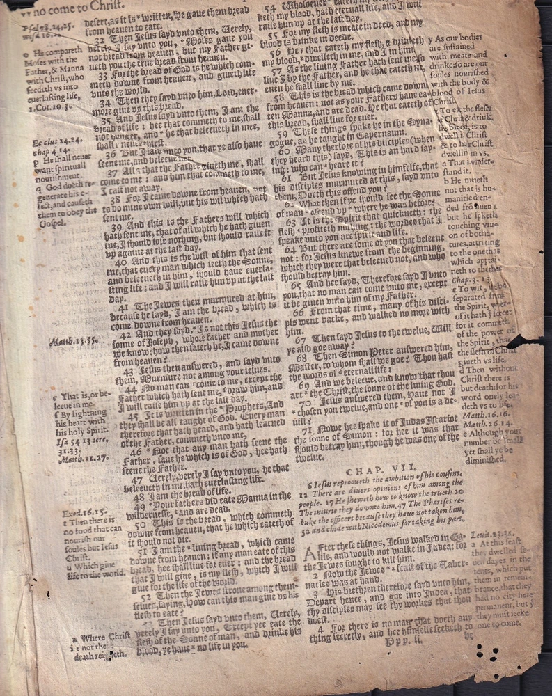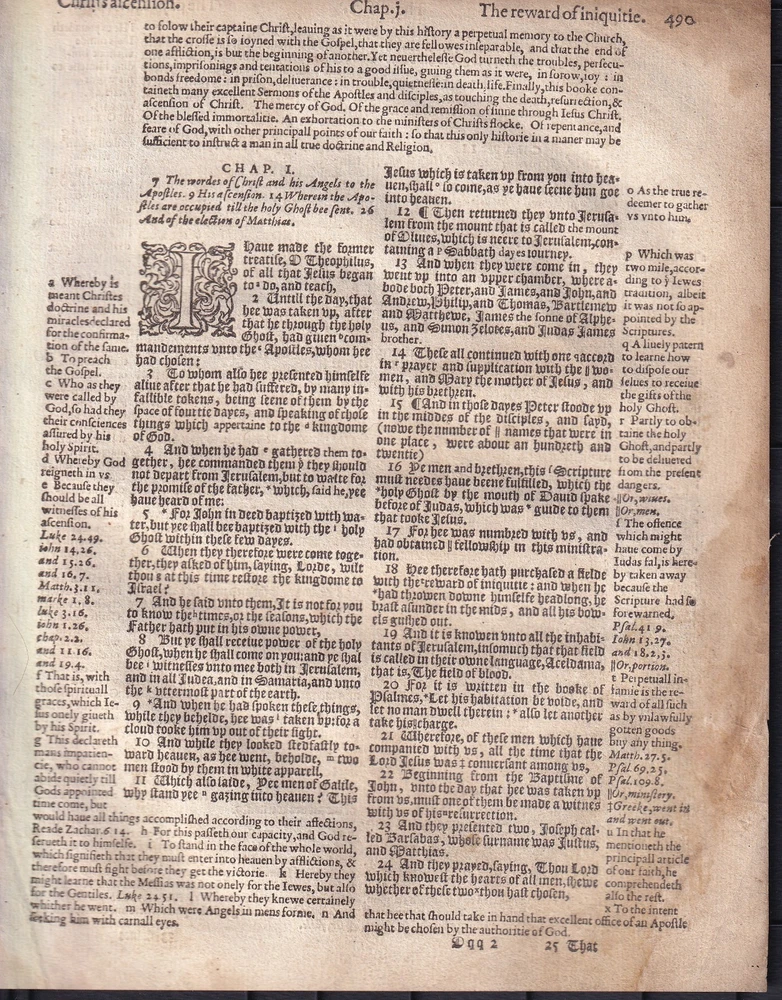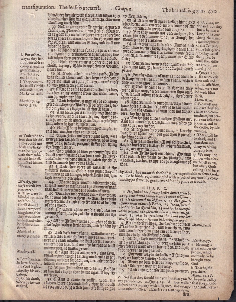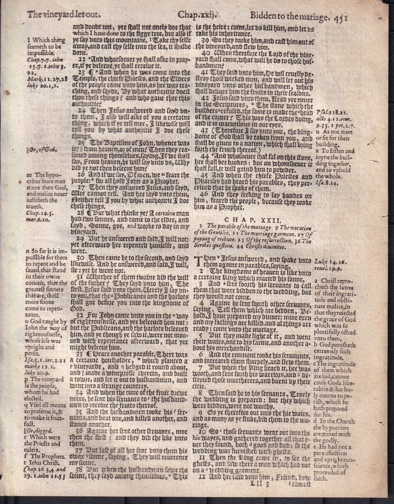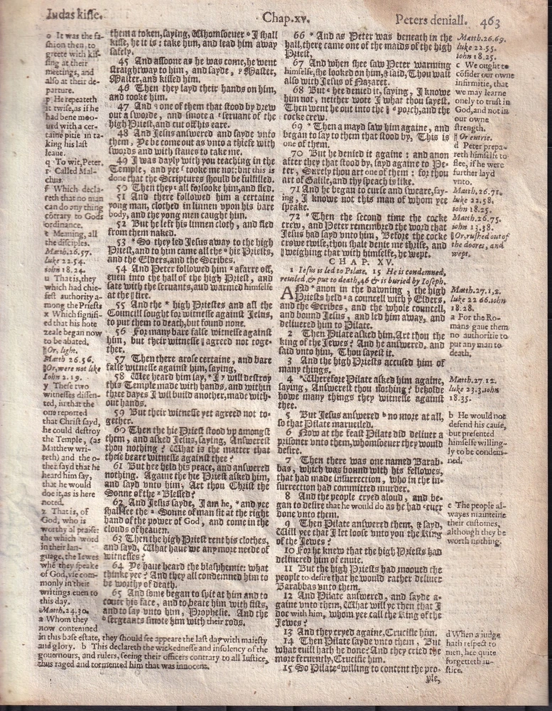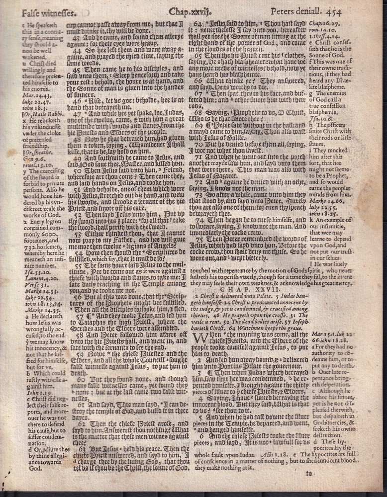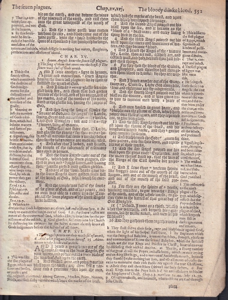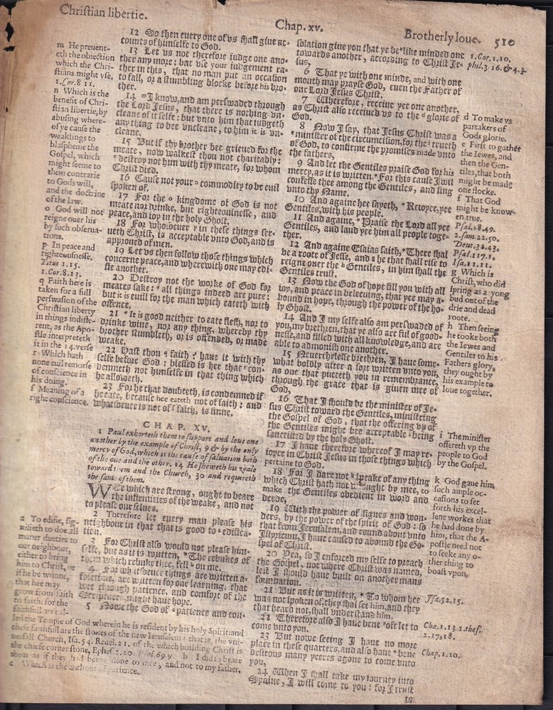 Description: Offered here is a substantial group of original leaves from a 1605 Geneva Bible, one of the most historically important English Bibles of the Reformation period. The Geneva Bible was the Bible of the English Puritans and Pilgrims and was widely used in the late 16th and early 17th centuries, predating the King James Version of 1611. These leaves are printed in two-column blackletter type with extensive marginal commentary, the distinctive study notes for which the Geneva Bible is famous. The pages include running chapter summaries, cross references, and theological marginal notes typical of the Geneva edition. The paper is period rag paper, printed on a hand press with movable type. Despite being over 400 years old, the text remains generally clear and readable. Condition varies from leaf to leaf but overall is typical for early 17th-century printed material, with expected edge wear, toning, occasional staining, and minor losses. This group represents a large portion of the New Testament, spanning multiple books including the Gospels, Acts, the Pauline epistles, and Revelation. Because these leaves are loose, they may be used for: collectors of early Bibles framing or display study of early English Bible printing bookbinding or conservation projects Condition: Overall good antique condition for the age. Expect typical early paper wear including: edge chipping light staining or toning occasional wormholes or small losses minor corner damage on some leaves Please review photos carefully for condition details. Missing Leaves / Page Gaps: This group represents most of the New Testament but the following pages are missing: p. 442 pp. 447–449 p. 457 pp. 473–481 p. 488 pp. 511–514 pp. 519–529 pp. 536–544 Additionally, the following sections of Matthew are not present: Matthew chapter 6 Matthew chapter 7 Matthew chapter 12 Matthew chapter 13 All other pages appear to be present within the surviving portion. There is the option to choose which leaf, per availability. Historical Note: The Geneva Bible was first published in 1560 by English Protestant reformers in Geneva. It introduced several innovations including verse numbering and extensive marginal commentary, making it one of the earliest true “study Bibles.” It remained the most popular English Bible until the King James Version began to replace it in the 17th century. Dimensions (Approximately): Height - 22cm Width - 16.5cm