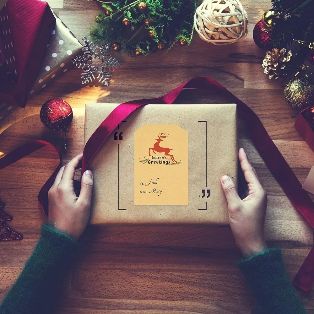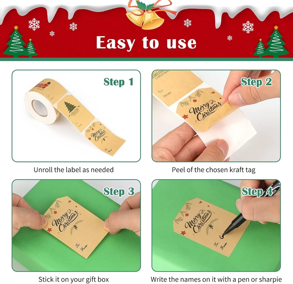 Product details 2 X 3 Inch Christmas Label Stickers (160 PCS), Brown Kraft Stickers for Festival Card, Gift Sticker Labels with 4 Pattern Designs(christmas tags, name tags sticker) Specification: Name: Self-adhesive sticker Size: 7.5*5cm/2*3 inch Color:As shown Material: paper Function: envelope seal / birthday card / diary / notebook/festival gift Shape: Square Features: 1.These 160 PCS set self adhesive Christmas tags stickers are exactly what you need! 2.Stickers are go well with many wrapping papers. Each of the Christmas labels self adhesive is 2 by 3 inches in size which is big enough to write on. 3.The patterns are clear, flat, and designed well. The xmas gift tags are 80 pieces on each roll. 4.These Christmas tags are easily removable from the roll and easy for use 5.Finishing your gifts with this stickers will make it perfect for a Christmas present! Packing list: 2 Rolls of Sticker (TOTAL 160 PCS)( Christmas Stickers) Note: 1.Please allow slight size deviations due to manual measurement,measuring methods and tools. 2.The picture may not reflect the actual color of the item because of different photographing light and display monitor.Thanks for your understanding. Large Tags: Die-cut special shaped tags that measure 2” x 3” inches. They have the shape of a Holiday tag. The edging on the corners makes these easy to peel from the roll and apply by hand. The gift tags are easy to see on any present or gift basket. They especially blend in well with handmade crafting gifts. Perfect Adhesive: These gift tags have a strong adhesive backing. The neat thing is that they will adhere to fabrics, clothing, blankets, and more, all without harming the material when the tag is removed. These stick very well to flat surfaces and will be tougher to remove from things such as poly bags, glass, and of course gift wrapping paper. Perfect as Gifts Too: Yes, you can place these on gifts but even better, these holiday gift tags are wonderful to give as gifts. Perfect to give to your child’s teacher as a little gift during their Christmas party at school. Also good to give to family members and close friends. Just put a bow on the roll!