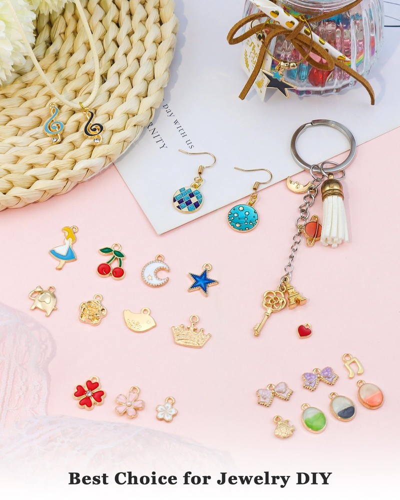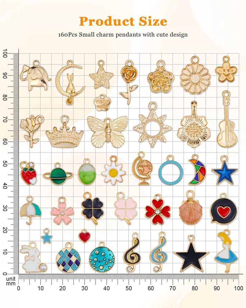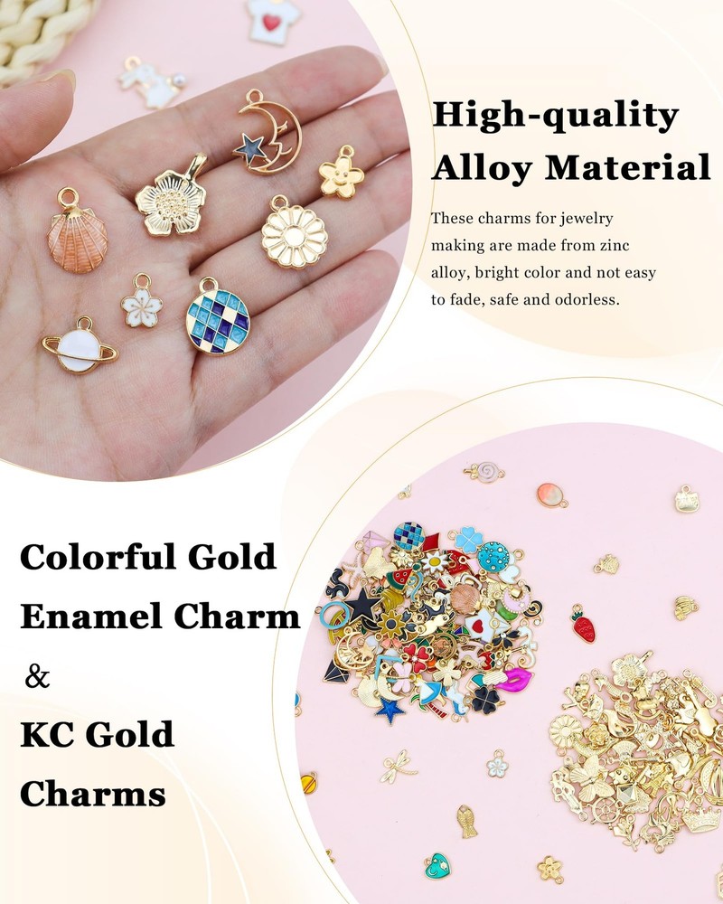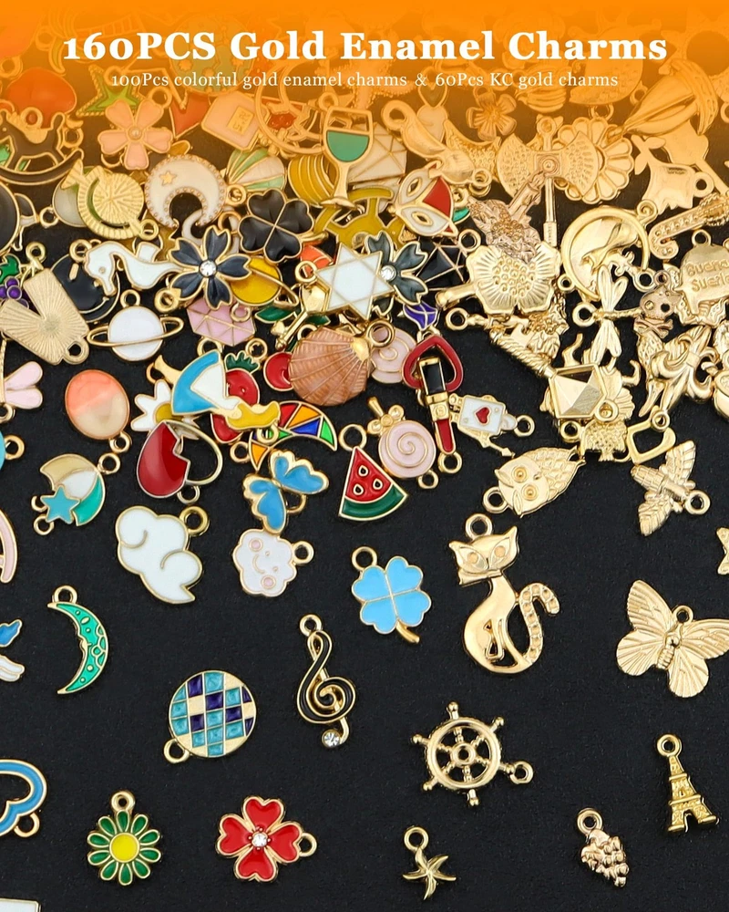 160Pcs Charms for Jewelry Making Wholesale Bulk Lots Assorted Gold-Plated Enamel 【Wholesale Bulk Charms Kit】-- The jewelry charms kit come with 160pcs gold enamel charms including 100pcs colorful gold enamel charms and 60pcs KC gold charms. Enough quantity and designs to meet your different needs for DIY crafts and jewelry making. 【Premium Alloy Material】-- These charms for jewelry making are made with a fine alloy material, which are rigidity and not bendable, bright color and not easy to fade, safe and odorless, very safe for the skin, perfect little cute charms for those who like DIY jewelry. 【Perfect Size and Great Selection】-- The size of our jewelry making charms is between 0.5 inches and 1.4 inches, exquisite and small. You will get a large variety and enjoyed sorting the cute charms to match your craft works. 【Rich Styles】-- These colorful pendants come with a cute design, like stars, moon, crown, starfish, mixed flower, mixed animals, lipstick, smiley, snowflake, mixed fruits, keys, cross and so on fashion charms. Each charm is exquisite, fashionable, and novel. 【Wide Applicability】-- The DIY bracelet charms for jewelry making are good for necklaces, dangle earrings, bracelets, keychains, keyrings, sweater chains, anklets, cellphone decorative accessories, etc. A charm bracelet making kit can show your creativity and personal style. It is a wonderful DIY charm gift with a unique personality for friends, lovers, or yourself. 160Pcs Charms Bulk Wholesale Assorted Gold Plated Enamel Pendants Earring for Bracelet Necklace DIY Jewelry Making Craft Supplies Color: Multicolor. Size: 0.5 inches - 1.4 inches (12 mm - 36 mm). Main Material: Alloy, Enamel. 100% new and high quality. Package Include: 60pcs KC gold charms. 100pcs colorful gold enamel charms. 1 pcs chamois cloth of . (Suitable for cleaning and polishing jewelry.) -- Gold enamel charm, it's fashion, creative, full of special means, is a very useful accessory,Exquisite and classical design charms.It can be used in all kinds of decoration. -- Gold mini enamel charms are a great choice for DIY jewelry making. Very suitable for necklaces, bracelets, earring, key chains, sweater chains, anklets making. And fits for scrapbooking project, cellphone, art craft decorations. Also it can be used as a beautiful gift for your friends or family members. They will be very happy. -- You can wear them in many occasions, such as birthday parties, beach parties, themed gatherings, Christmas, Halloween, parades and more. About “” A registered that will make all your fashion jewelry dreams come true. Hit up its forward-thinking and trend-driven jewelry for resin earrings, tassel earrings, layered bracelets, delicate necklaces and art craft decorations. You can also search or click on “” to see our complete collection on . Enjoy your shopping in Jelly&Peak now! Shipping We offer FREE shipping on all orders! We ship within Three business days of payment, usually sooner. We use a selection of shipping services such as UPS, FedEx, USPS etc. We only ship to the lower 48 states, no APO/FPO addresses or PO Boxes allowed. Local pickups and combined shipping options are not provided at this time. Return You can return a product for up to 30 days from the date you purchased it. Any product you return must be in the same condition you received it and in the original packaging. Please keep the receipt. Payment We accept payment by any of the following methods: PayPal Please pay as soon as possible after winning an auction, as that will allow us to post your item to you sooner! Feedback Customer satisfaction is very important to us. If you have any problem with your order, please contact us and we will do our best to make you satisfied. Contact Us If you have any queries, please contact us via ebay. We usually respond within 24 hours on weekdays. Please visit our eBay store to check out other items for sale! Thank you for shopping at our store.