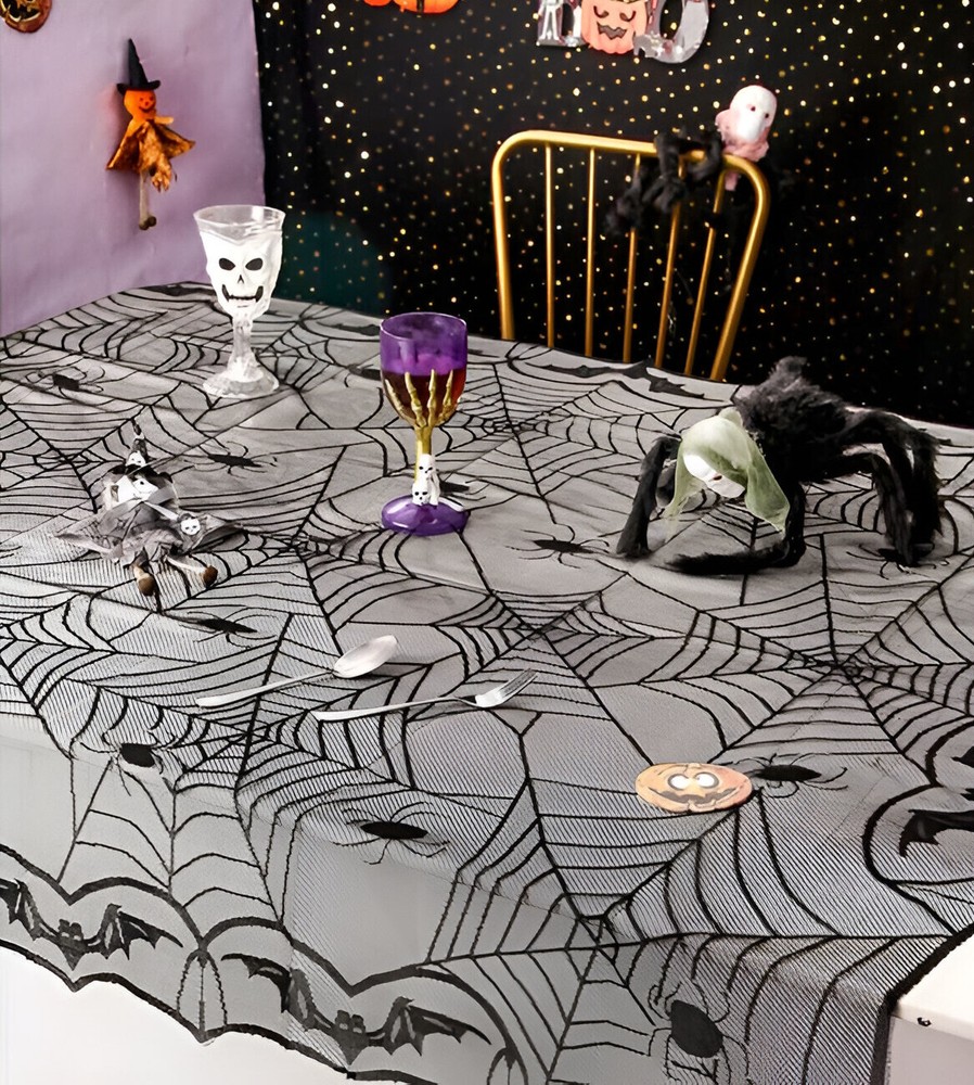 Perfect for spooky parties! This huge Halloween tablecloth transforms any table into a creepy centerpiece. The spiderweb and bat design adds just the right amount of eerie fun, and the size easily covers large tables. Great quality fabric that stays in place. A must-have for Halloween decor!