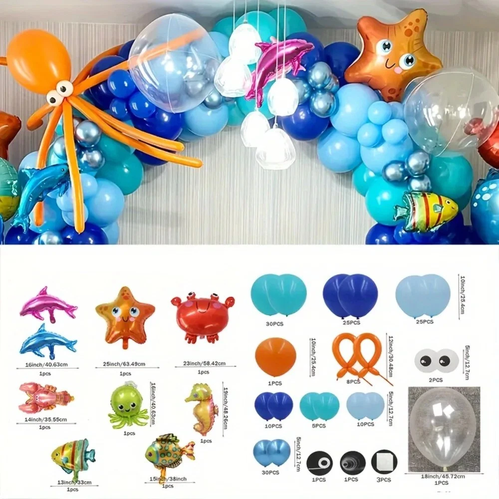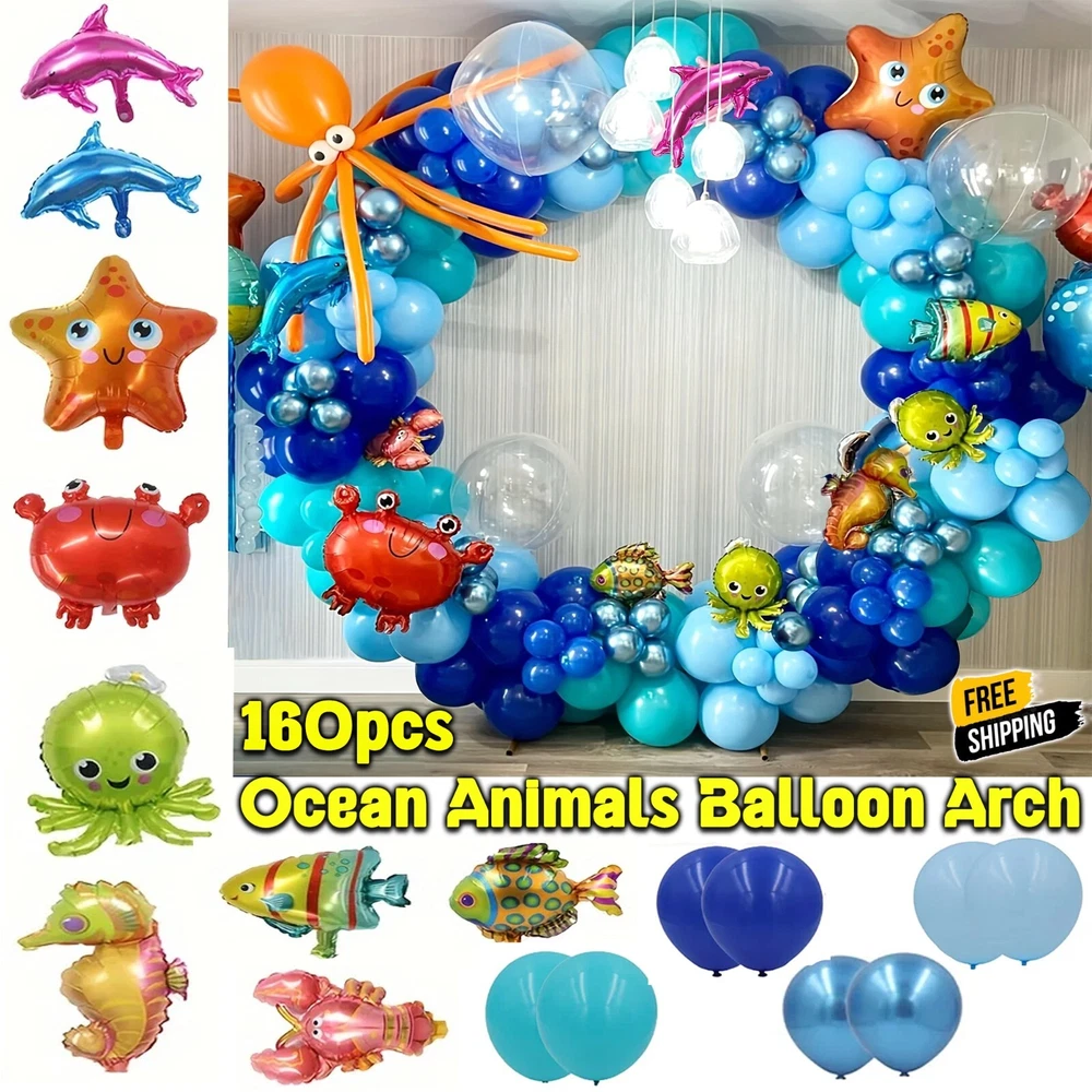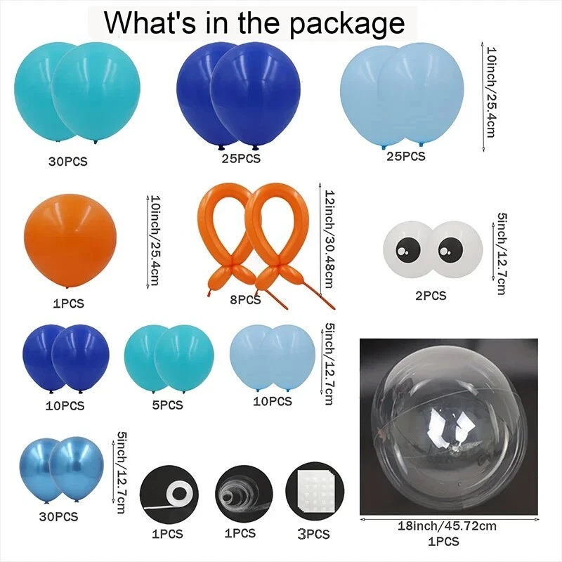 159pcs Ocean Animals Balloon Arch Kit Birthday Baby Shower Party Balloon Garland CHOKING HAZARD – Children under 8 yrs. can choke or suffocate on uninflated or broken balloons. Adult supervision required. Keep uninflated balloons from children. Discard broken balloons at once.