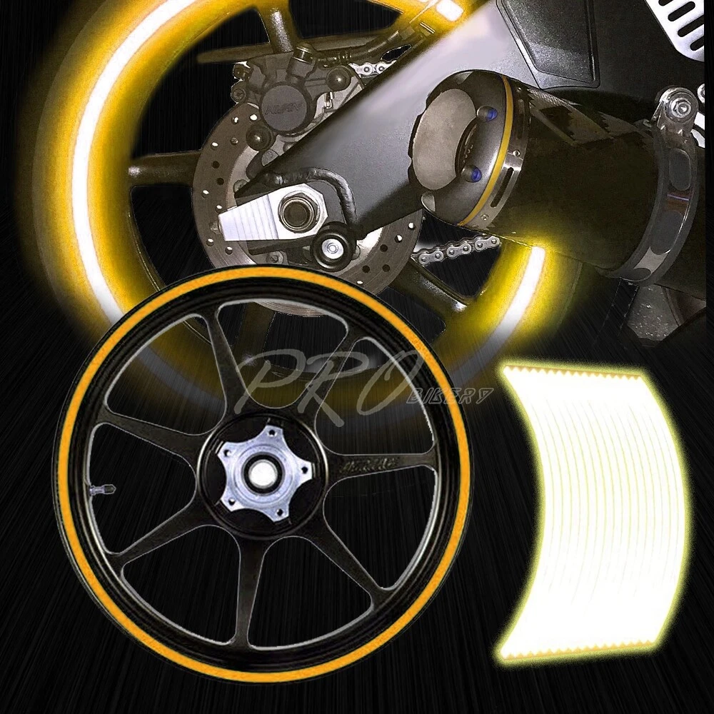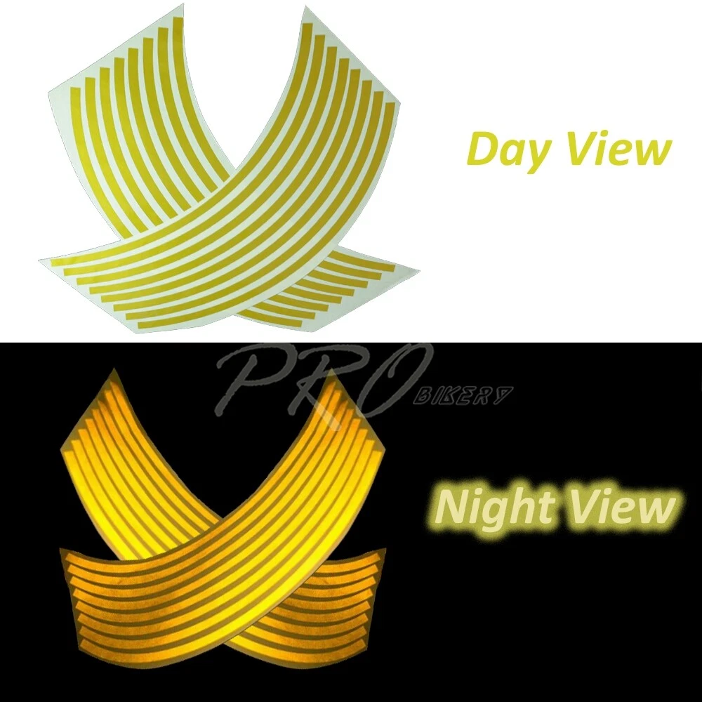 Welcome to our eBay store eMotorcycle USA Business Hours: Monday - Friday, 10 AM to 5 PM PST. Store Home Payment Shipping Returns Need Help Add to Favorites About Us 16/17/18"Inches Reflective Rim Tape/Front+Rear Wheel 4-Side Stripes Sticker Gold Product Description Reflective Rim Tapes Specifics: Reflective Look ALL decals are machine laser cut Made with 3M Strong self-adhesive backing Enough precision cut curved tape for one complete bike (both wheels, both sides) 4 stripes per wheel edge Gas tank surface has to be really clean (not just a quick soap and water wash) Highly recommended using degreasing cleaning agent Once applied correctly it will not come off during normal use or high speed Can be removed later without leaving any marks if needed 8mm (5/16 inch) width stripes 100% Brand New Package Includes: 16 X Rim Stripes Application: Universal Application for Any Venicles - Motorcycles/ Cars/ Trucks/ Bikes ((Please Make Sure to Use on 16""/ 17""/ 18""/ 19"" Inches Wheels ONLY)) About Us Payment Shipping Returns Feedback Contact Us Have any questions or need info about something you already purchased? We'd love to hear from you! For items already purchased, please kindly include your eBay item number for faster response time. eMotorcycle USA operates from Monday through Friday, 10 am to 5 pm (PST). ATTENTION: We are closed on Saturdays and Sundays. All messages will be replied in the order it was received during business days Thank you for choosing eMotorcycle USA and happy bidding! We accept PayPal only. We reserve the right to file Non-Paying Bidder if payment is not received 10 days after the auction ended. Shipping Methods All shipments are made via either UPS or United States Postal Service depending on the types of products purchased. Majority of our orders will be ship within 2 business days (mostly within 24hrs) (All mail transit time stated above is best estimated but not guaranteed.) All shipments requires physical addresses, no PO Box address will be shipped. Shipping and handling charges are not negotiable. Return Policy **We stand behind the products we sell. If for any reason you are not satisfied with your purchase, we'll be happy to process an exchange or refund the product less S&H within 30 Days of your purchase. All return items will require a RMA number, which is given by our Customer Service Department only. Please allow 10-14 days for returns and exchange to be process. Please inspect all your order(s) upon receipt. All return items MUST be in brand new condition which means the item is never installed and kept in the original packaging, otherwise you will be subjected to a 20% restocking fee. We will not reship replacement(s) before we get a claim approval for the lost or stolen item(s) or the returned item from customers. In most cases, all shipping and handling fees are non-refundable, unless it has been approved by our Customer Service Department. Any item(s) that the buyer states as defective will be tested by our Returns Department, if there is no problems or errors found during testing, there will be a mandatory 20% restocking fee for the price of the item. Once the RMA# is issued, the buyer will have 30 days to return the item, if any items that is return after 30 days, the item(s) are subject for rejection. If the items are returned without an RMA#, we reserve the rights to reject the item or charge the buyer a 20% restocking fee. All items are brand new unless otherwise stated. PROFESSIONAL installation is highly recommended. Buyer assumes all risk on usage. About Us Have any questions or need info about something you already purchased? We'd love to hear from you! For items already purchased, please kindly include your eBay item number for faster response time. eMotorcycle USA operates from Monday through Friday, 10 am to 5 pm (PST). ATTENTION: We are closed on Saturdays and Sundays. All messages will be replied in the order it was received during business days Thank you for choosing eMotorcycle USA and happy bidding! Payment We accept PayPal only. We reserve the right to file Non-Paying Bidder if payment is not received 10 days after the auction ended. Shipping Shipping Methods All shipments are made via either UPS or United States Postal Service depending on the types of products purchased. Majority of our orders will be ship within 2 business days (mostly within 24hrs) (All mail transit time stated above is best estimated but not guaranteed.) All shipments requires physical addresses, no PO Box address will be shipped. Shipping and handling charges are not negotiable. Returns >Return Policy **We stand behind the products we sell. If for any reason you are not satisfied with your purchase, we'll be happy to process an exchange or refund the product less S&H within 30 Days of your purchase. All return items will require a RMA number, which is given by our Customer Service Department only. Please allow 10-14 days for returns and exchange to be process. Please inspect all your order(s) upon receipt. All return items MUST be in brand new condition which means the item is never installed and kept in the original packaging, otherwise you will be subjected to a 20% restocking fee. We will not reship replacement(s) before we get a claim approval for the lost or stolen item(s) or the returned item from customers. In most cases, all shipping and handling fees are non-refundable, unless it has been approved by our Customer Service Department. Any item(s) that the buyer states as defective will be tested by our Returns Department, if there is no problems or errors found during testing, there will be a mandatory 20% restocking fee for the price of the item. All returns are subject to a 20% shipping or restocking fee, especially for personal reasons, such as "Purchased Wrong" or "Changed Mind". All items are brand new unless otherwise stated. PROFESSIONAL installation is highly recommended. Buyer assumes all risk on usage. Feedback Contact Us Copyright, eMotorcyc