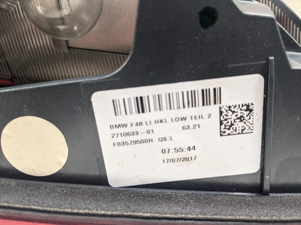16-19 OEM BMW F48 X1 PRE LCI Rear Left Driver Side Inner Trunk Tail Light SKU: 31908 Brand: BMW Condition: Used Notes: 30 day warranty! MPN: 2710633 Manufacturer Part Number: 63212710633 OE/OEM Part Number: 2710633 Interchange Part Number: 2710633 We're on Instagram! Follow us! oe_mgarage All parts are used unless otherwise noted! Please understand that being that parts are used there may be some wear and tear & scratches etc. We cannot guarantee the condition of paint & or that paint color will be an exact match as yours. We try to show as much of the condition as possible through photos and notes! Original Car: 2018 BMW X1 Series: F48 Vin Number: WBXHU7C33J5H39430 Engine: B46O Transmission: Automatic Part number: 2710633, 63212710633 Notes: 30 day warranty! SKU: 31908 Location: W27 IF ITEM IS MARKED AS FREIGHT SHIPPING AND YOU ARE SHIPPING TO A RESIDENTIAL ADDRESS OR A BUSINESS WITHOUT A FORKLIFT/LOADING DOCK Our shipping carriers charge extra fees for these deliveries! Please inquire BEFORE purchasing We will invoice you for it post purchase Thank you 90 day warranty on Engines purchased through eBay! 30 day warranty otherwise Engine is guaranteed to turn & the cylinder block is not cracked & and the cylinder head is not cracked Engine warranty details: Any maintenance items such as gaskets & fluids & seals & filters & spark plugs & belts & aluminum bolts (the ones holding valve cover & oil pan & etc.) are not warrantied and must be replaced Failure to replace valve cover gasket & oil pan gasket & new bolts for said gaskets voids the warranty Any aftermarket or performance parts or software present on the car voids the warranty Engine components such as timing chain & vanos gears & vacuum pump & chain guides are not warrantied. Other engine components external to the cylinder block and cylinder head are not warrantied. Any parts left on the engine are not warrantied and are for installation convenience only & buyer assumes all risk and responsibility reusing them. Overheating engine voids all warranties & Low oil or oil starvation voids all warranties for engine All work must be performed by a licensed & ASE certified mechanic shop or BMW dealership & failure will result in voiding all warranties Warranty covers the cost of the item! It does not cover shipping or labor! Used condition items may have minor imperfections. Please look at pictures for details! And understand that this is a USED part after all! Compatibility is the responsibility of the customer to ensure!! Please feel free to reach out with any questions!! Follow us on Instagram! @oe_mgarage.