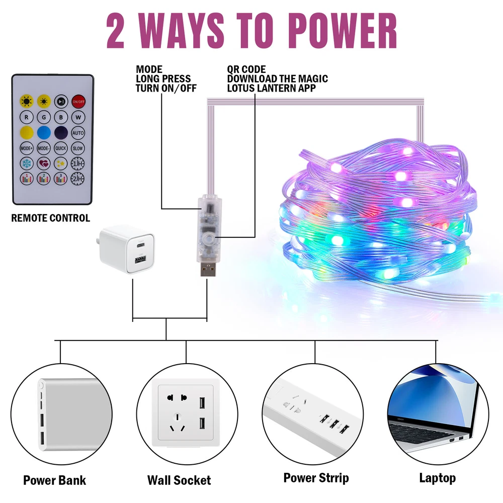 Color: Multicolor Style: Romanticism Power Consumption: 10 W - 24 W Light Source: Neon/Electroluminescent Wire Year Manufactured: 2025 IP Rating: IP65 Amperage: 5 A Installation Area: Indoor & Outdoor Voltage: 5 V MPN: Does Not Apply Features: Color Changing, Dimmable, Flexible, RGB, Waterproof, With Remote Control Department: LED Light Material: LED Occasion: Anniversary, Baby Shower, Bachelorette Party, Bachelor Party, Bar Mitzvah, Birth & Baby, Birthday, Bridal Shower, Casual, Christmas, Congratulations, Easter, Engagement, Gender Reveal, Graduation, Halloween, Housewarming, Jewish Holidays & Festivals, Love & Romance, Multipurpose, New Home, Party, Passover, Someone Special, Spring, Sympathy & Condolence, Thanksgiving, Valentine, Wedding Type: LED Light Theme: Animation, Anime & Manga, Barware, Beauty, Buildings & Monuments, Cars & Vehicles, Celebrity, Celestial & Horoscope, Circus, Computer & Office, Fairytale & Fantasy, Family & Friends Lumens: 200 lm - 399 lm Lighting Technology: LED LED String/Strip Type: LED String Fairy Lights Copper Wire Room: Attic, Bathroom, Bedroom, Cloakroom, Closet, Den, Dining Room, Entryway, Garage, Greenhouse, Home Office/Study, Kitchen, Living Room Number of Settings: 8 Sensor Type: Light Light Color: Multicolor / White/ Warm White Power Source: USB Output Voltage: 5 V Brand: Unbranded Control Style: Remote Control