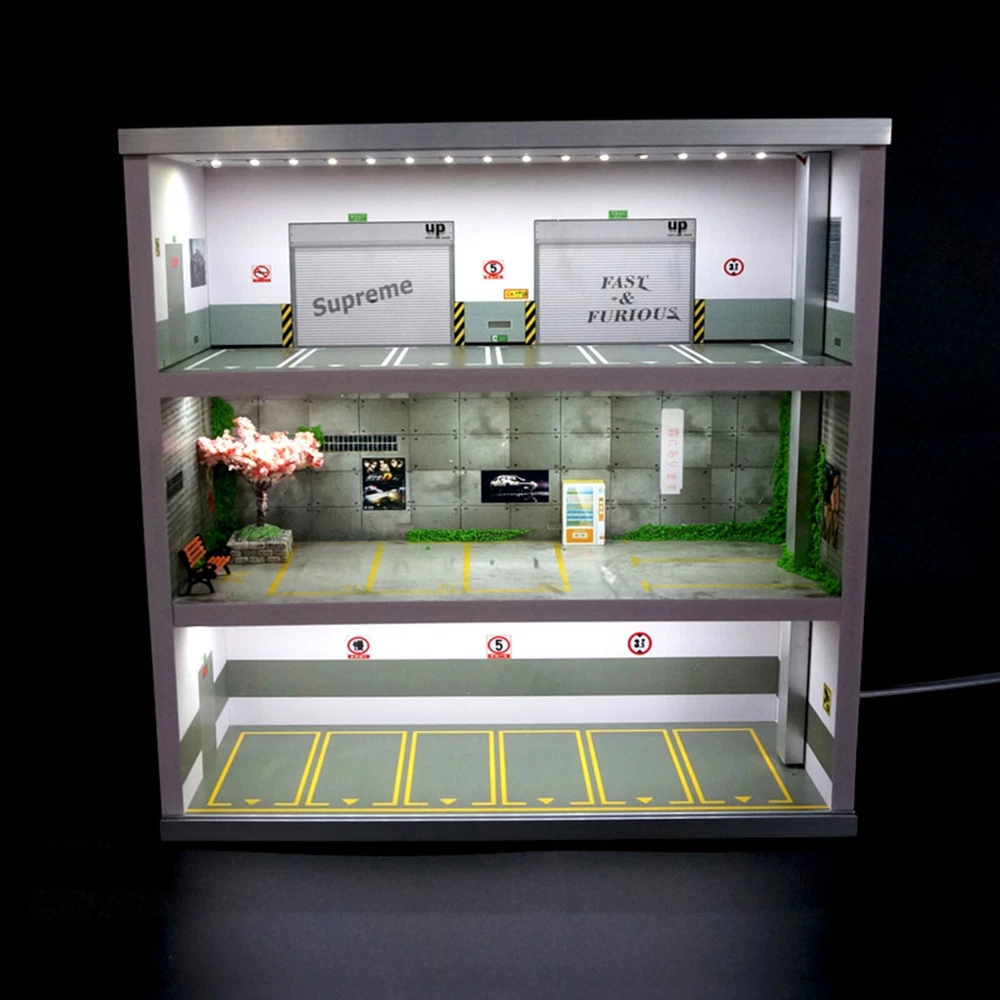 1:64 Parking Lot Display LED Lighting Car Garage Diorama Connector Scene Model