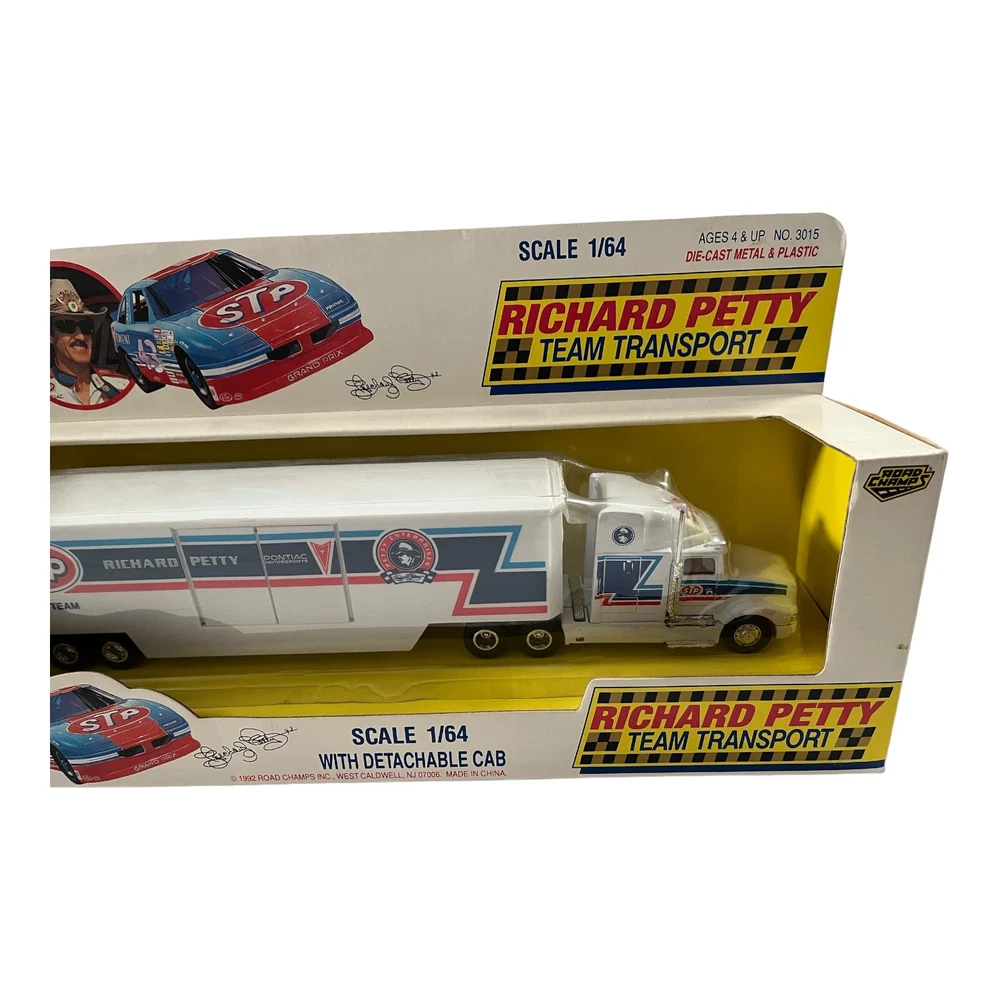 1:64 STP Richard Petty Team Transport Diecast & Plastic 1992 Road Champs Condition: New in package. Package has damage.