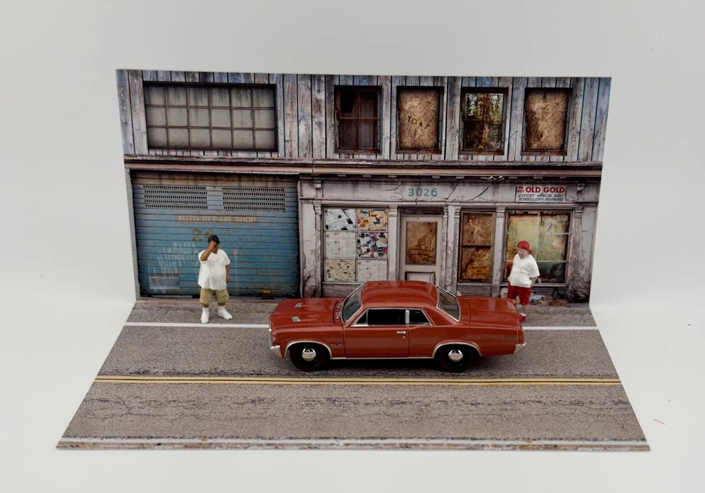 093 Please read the description. Vehicles and people are not included. Thank you for looking, this item is %100 paper and it was designed to be a photo prop for your Diecast Photography, but they make great displays to show off your collection. The uses are only limited by your imagination. The size of this Paper Pop Up Diorama is 6 inches wide, the height is 3 inches tall, the base is 4 Inches, overall it’s a 6x7. This Pop Up Diorama is one piece and is ready to use immediately. Printed on flat Matte Photo Paper with a flat color profile. I print these Photo Props in such a way that compliments most cameras shooting in RAW as I only print after I have taken the display photos and feel confident that the colors are set well so that the customer will get the most out of their photography with minimum editing (but photography is subjective and at least I tried :). Why the black backing? Well for two reasons, the black backing adds stability to the prop and most importantly to know is the black backing adds depth to the colors, it really brings the best out of them especially when you consider that matte photo paper is relatively thin and back lighting bleeds through but the backing prevents this. These Pop Up Diorama’s are made to order and usually ships out the next day but in some instances I might need an extra day. Please take note that these Pop Up Diorama Photo Props are made from %100 paper and I know I already mentioned this but experience has taught me I should really make sure that it’s conveyed to potential buyers so that you feel like you got what you expected. The small tab located on the back near the bottom is there convenience reasons and the most important reason is positioning. This tab will help you position the Pop Up Diorama vertically and it really helps. Please examine the item photos so you can judge if the Pop Up Diorama is right for you and notice how the back tab is working. Thank you for your interests in these items and I hope they work well for you.