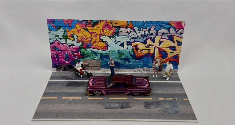022 Please read the description. Vehicles and people are not included. Thank you for looking, this item is %100 paper and it was designed to be a photo prop for your Diecast Photography, but they make great displays to show off your collection. The uses are only limited by your imagination. The size of this Paper Pop Up Diorama is 7 inches wide, the height is 3 inches tall, the base is 4 Inches, overall it’s a 7x7. This Pop Up Diorama is one piece and is ready to use immediately. These Pop Up Diorama’s are made to order and usually ships out the next day but in some instances I might need an extra day. Shipping will be economy via regular envelope and a tracking number may not always be available but if it is I will provide it to you. Please take note that these Pop Up Diorama Photo Props are made from %100 paper and I know I already mentioned this but experience has taught me I should really make sure that it’s conveyed to potential buyers so that you feel like you got what you expected. The small tab located on the back near the bottom is there for two reasons and the most important reason is positioning. This tab will help you position the Pop Up Diorama vertically and it really helps. The second reason it’s there is for you to remove the Pop Up Diorama from the envelope (try and use it to pull it out). Please examine the item photos so you can judge if the Pop Up Diorama is right for you and notice how the back tab is working. Artwork is sourced from my imagination and I also use free open source images. Some Artwork use elements generated by Adobe Firefly generative AI. Thank you for your interests in these items and I hope they work well for you. 1/64 Scale Paper Pop Up Diorama Display Photo Prop For Diecast Vehicles