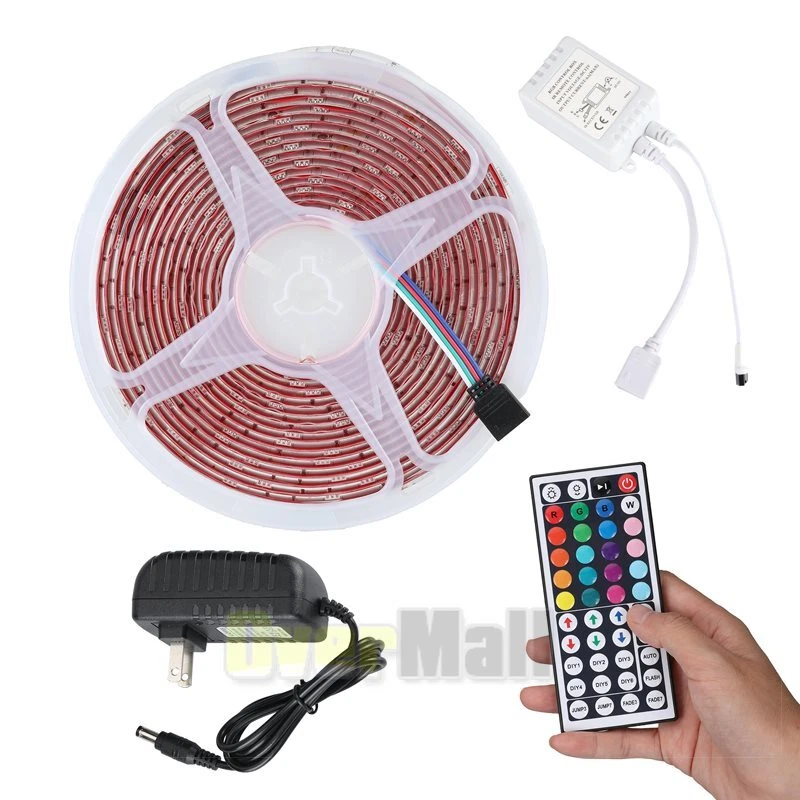 16.4FT 12V 300 LED RGB Strip Light Waterproof 5050 SMD Tape with Remote