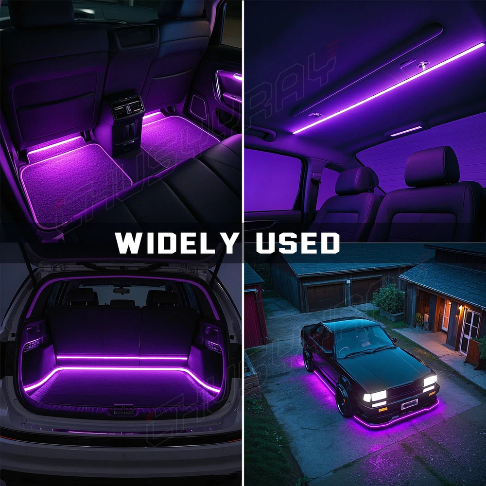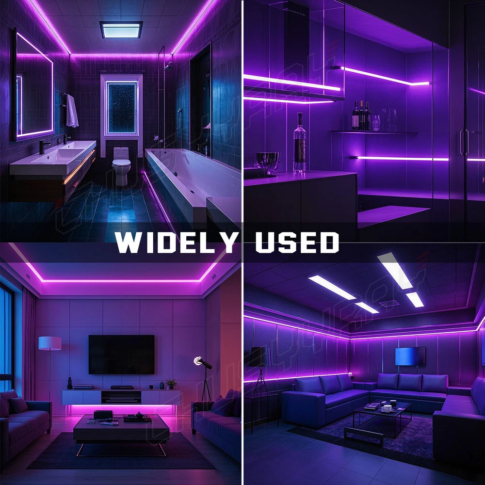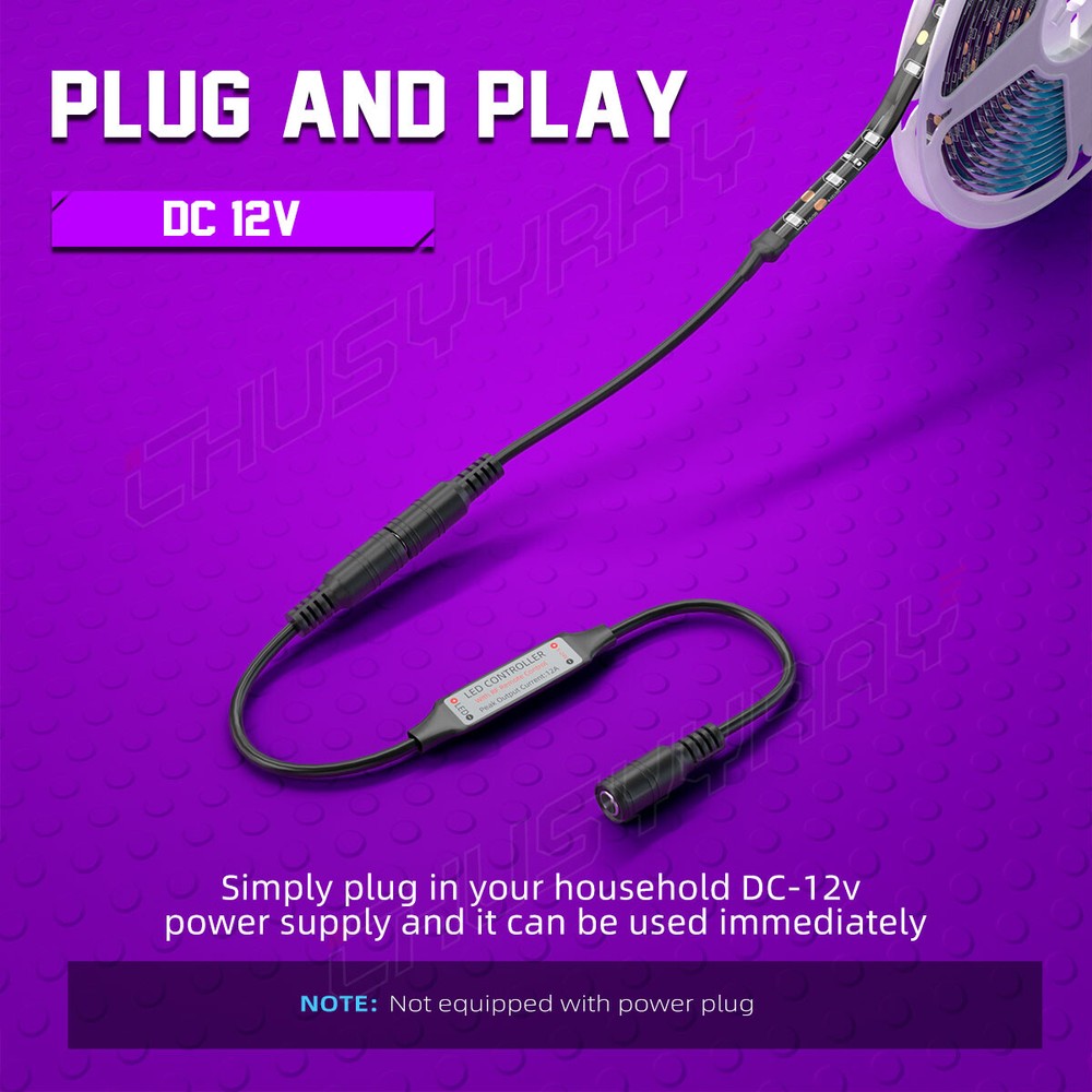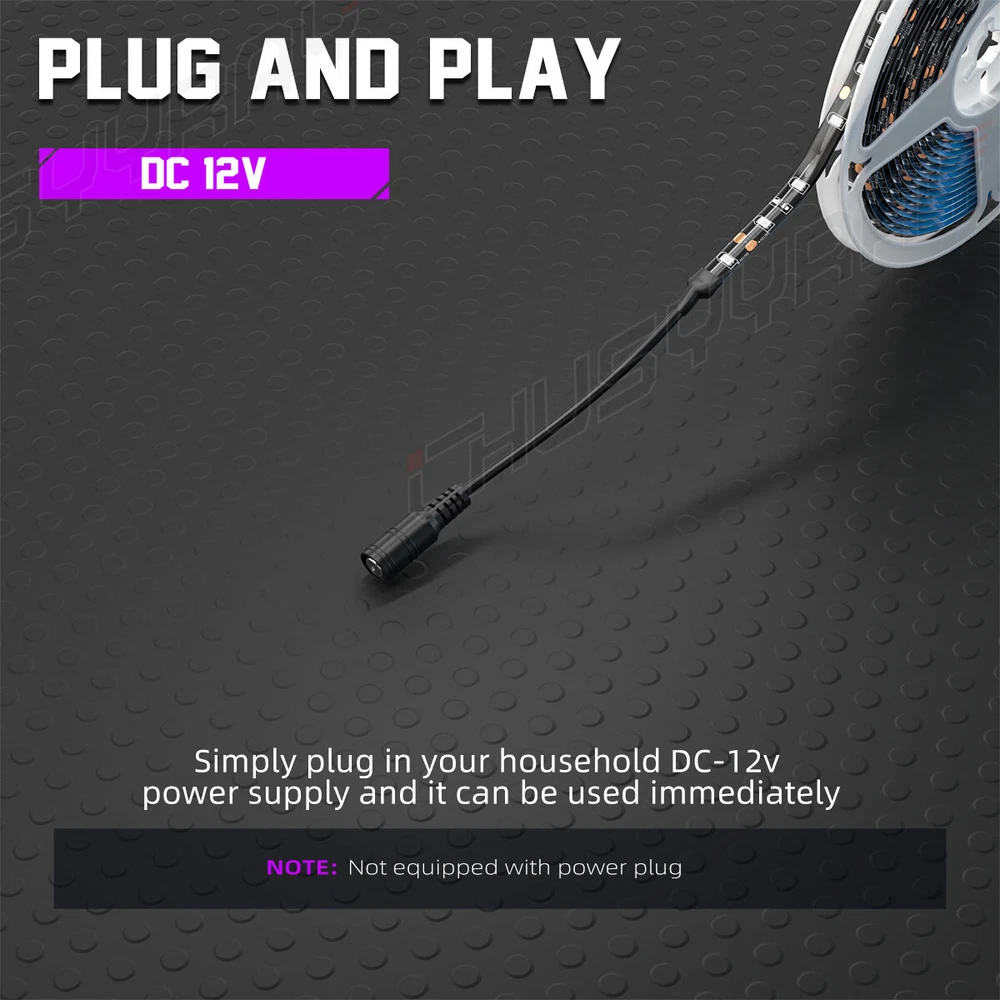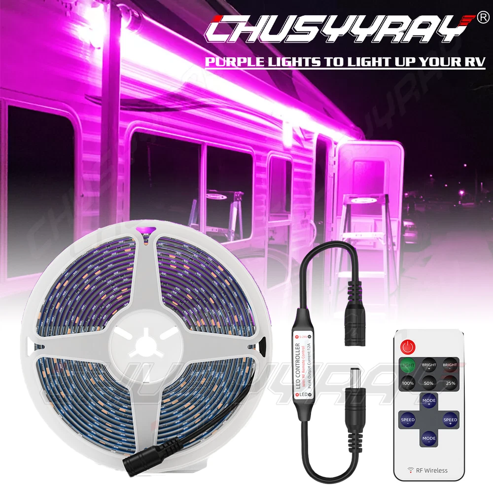 Note:Power adapter not included. About this item: Bright SMD 3528 LED Chip, high intensity and reliability Waterproof flexible LED strip (IP65 Waterproof level) 60 SMD LEDs per meter, total 300 LEDs for 5 meters (16.4 ft) Self-adhesive back with double side adhesive tape Every 3-LED cutable without damaging the rest strip Product Specification: Type: Flexible Strip Lights Colors: Purple Light Strip Length: 16.4 FT Light source: SMD 3528 Brightness: 95LM/W Light Source type: LED Number of Lights: 300 Power Source: Dc Input Voltage: DC 12V Power: 30W Beam angle: 120 degree Waterproof: Yes Life Span: About 50,000 hours Installation notes: - Select & clean desired place, stick on by the dbouble side adhesive tape of the light - Each strips come with 2 wires (positive(+) / negative(-), about 30cm length). - Use with any 12V DC Car, Motorcycle, any other vehicles, require clear connect to the (+)/(-) side. - If after correct installation and no light, simply try to reverse the polarity of the wire. Wide Rage of Application: 1、Widely for home decoration use, hotels, clubs, shopping malls, car industry. 2、 Architectural decorative lighting, boutique atmosphere lighting. 3、 Extensively applied in Backlighting, concealed lighting, channel letter lighting. 4、 Emergency & security lighting, advertisement sign. 5、 Decorative lights for holiday, event, show exhibition. 6、 Applicable for automobile and bicycle decoration, border or contour lighting. 7、 Soft texture, can be bent, can be arbitrarily fixed in the uneven places. 8、 Easy installation, behind the strip, are free to paste. 9、 Each group of three lights to form a loop, low current, low power, energy and beautiful. Three LED can cut an incision. 10、 Mainly used for car decoration, home decoration, lighting, signs, advertising signs, wine, jewelry cabinets, entertainment and other decorative lighting. Package Includes: 1x 16.4 ft RGB led strip (waterproof) 1 x Remote controller