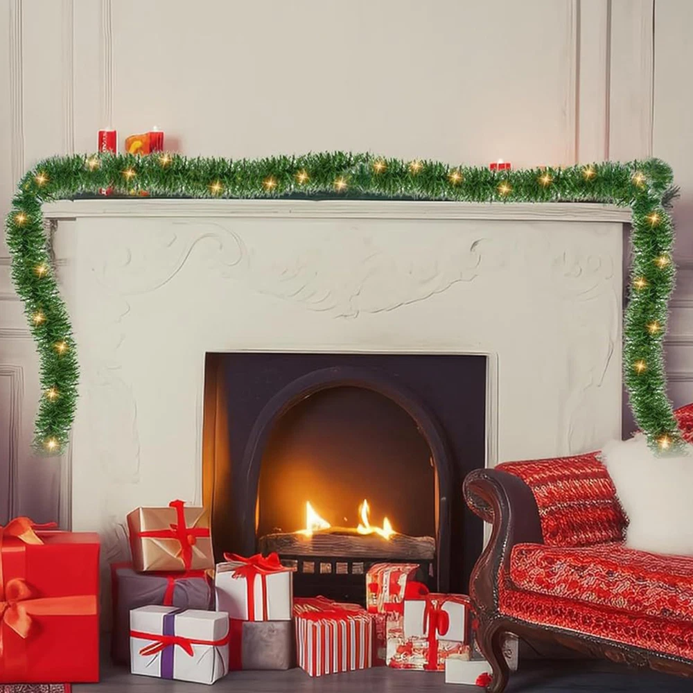 16.4ft Pre-Lit Artificial Christmas Mantel Garland Lighted With 50 Clear Lights