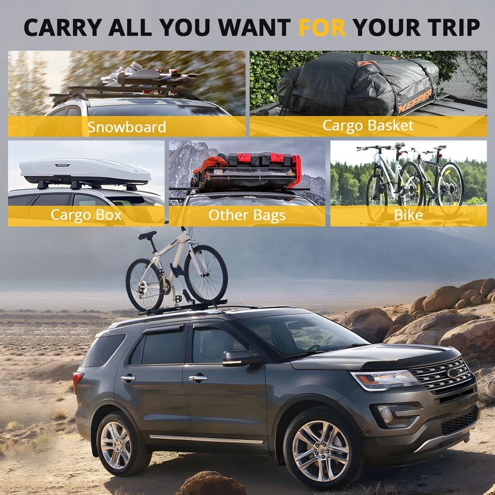 Specifications: Color:Black Load Capacity:165 Pounds Mounting Type:U-Bolt Material:Aluminum Is Foldable:No Features: 【Fitment】 Compatible for 2016-2019 Ford Explorer . Please check your vehicle's Year, Make and Model before purchase 【Maximize Your Car Capacity】 This crossbars bear a load of 165 LBS. Ideal for transporting items which won’t fit in your vehicle such as: roof bags, roof boxes, bike carriers, surfboards, kayaks, canoe, sporting goods, ladders, luggage and much more you want. 【Bring You Security & Durability】 The roof rack is made of Aluminum, anti-rust, base feet are made of high quality plastic. Aluminum is on average 30% lighter than steel. Our roof rack crossbars can withstand greater stresses than the best all-steel roof rack at 1/4rd less the weight. 【Less Noise & Lockkable】 Aerodynamic shape makes it effective to minimize wind noise. And the locking system keeps the bar secure and prevents theft. 【Easy To Assemble In Minutes】 The mounting rack install and secure with just a screwdriver, easily attaches to roof mounts without drilling. Labeled front and back so no guessing on which one goes where. The front crossbar is longer than the rear to accommodate vehicle size. Please read the installation manual before installing. Payment Delivery Returns Feedback We accept Payoneer only. All major credit cards are accepted through secure payment processor PayPal. Payment must be received within 7 business days of auction closing. If you have bought multiple items from me, you can send me one payment for all the items instead of paying for them individually. When you click the Pay Now button, eBay will automatically determine if there are other items you have won or purchased from me and will combine them for your review. NOTE: Import duties, taxes and chargers are not included in the item price or shipping charges. These charges are the buyer's responsibility. Please check with your country's customs office to determine what these additional costs will be prior to bidding buying. 1. We will delivery out at the handing time when we receive the payment. 2. The delivery time is 3-5 business days to US by usually time.The parcel maybe delay 1-2day of the weekend.Due to the bad weather,Holidays,Hot Season ect.the parcel maybe delay,If you have any problems,mssage us,we will try our best to solve it. 3. We ship to your eBay address. Please make sure your eBay address is correct before you pay. 4. If you want to change the shipping address,message us before our send out. 5. We cannot deliver your order if your state is PR. 1. If you donot receive the items at the delivery time,the parcel has broken/missing,Please message us before you open case/return,we will try our best to solve it. 2. We offer a 30 day return policy from checkout winning date. 3. An RMA number is required for all returns. Message us for return instructions. Items Returned without a RMA number will not be processed. 4. Items defective upon receipt must be packaged in their retail packaging as if new and returned with a detailed description of the problem. 5. Return shipping fees are not refundable.We reserve the right to decline any returns if the above guidelines are not followed. If you are not satisfied with the item for any reason, please do not quick to leave negative/neutral feedback even open request and case without any communication with us. We devote ourselves making EVERY CUSTOMER in 100% Satisfactory and resolve any problem. Thank you for your understanding and recognition,we are always leave positive feedback to all our customers. About Reply: All replies will be sent to your email box, if you do not get response within 24 hours (Sat. & Sun. excluded) please check your eBay My Messages in case that our emails will be filtered automatically by your settings.