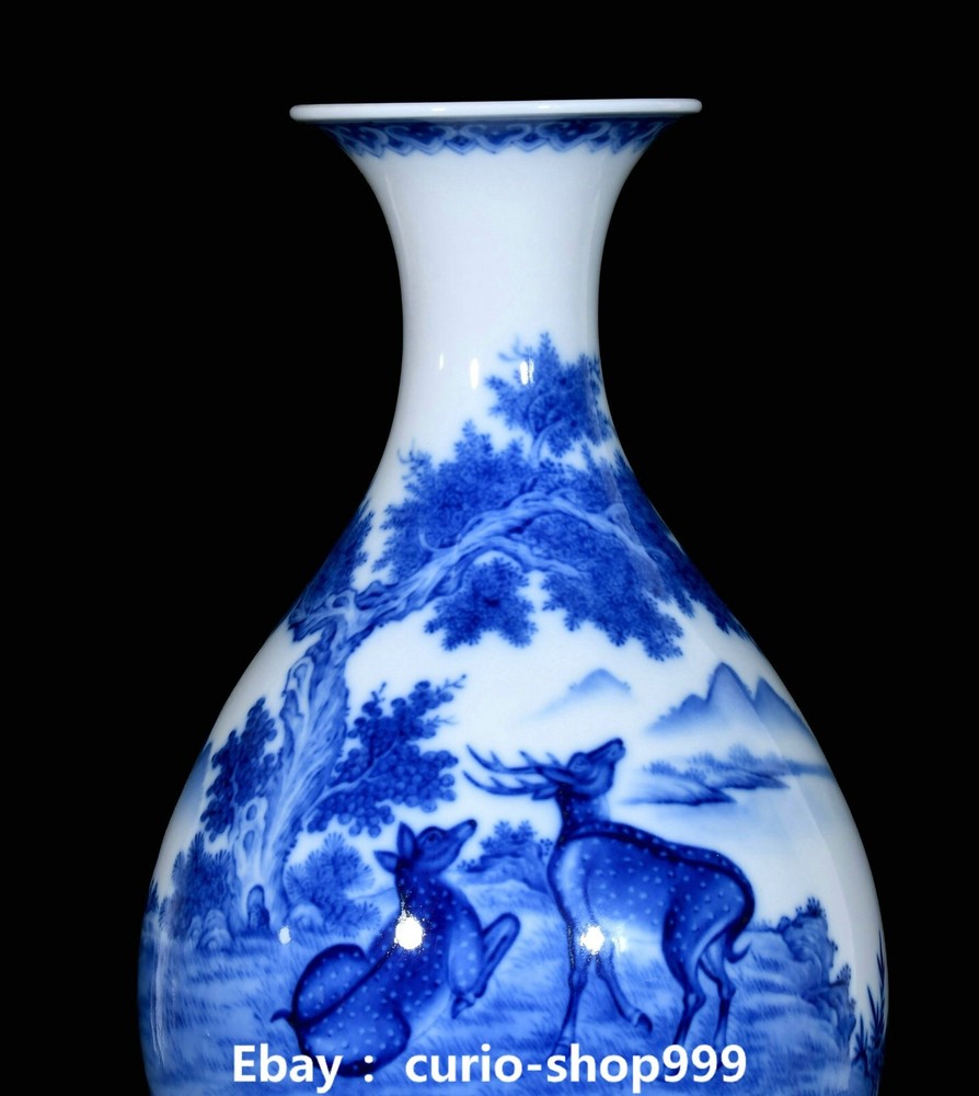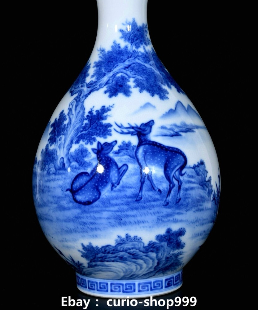 **** Welcome to our antique & Collectable Shop : Porcelain**** Description: Here is 16.5" Qianlong Blue White Porcelain Sika Spotted Deer Animal Bottle Vase Pair. It is in good condition, and was created by skilled craftsmen in traditional style with fine handcrafts.This is a great piece of valuable collection, a valuable personal alter or a very good present. the handwork is very fine with incredible detailling. Don't miss out this chance to get it.Wish you good luck! . Material : Blue White Porcelain Size : Heigh t 16.5 Long 9.8 B readth 9.8 (inch) Condition Perfect Condition. Perfect, with no scratches, flaws or repairs. Weight: 7.6 KG----included the weight of packing materials Shipping cost to all over the world countries in Free Honored Customers: We are selling the collectibles products and crafts in Beijing ,China since 1993 and collected them all over the world all the time . In our shop the bronze sculpture, animal, vase, urn, flowerpot,Incense Burner.Table chair sets. Militaria goods. buddha statues, Bodhisattva Statues, Buddhist Ritual Items etc is our speciality .Many of the items we sell come from our own personal collection and have been in our family for a very long time .My great-grandfather was the first in this family to start collecting art & antiques when he still lived in San Xi and Tibet around 1922 ,some of the paintings he once collected can now be seen in museums around the globe.We won't make money from t he shipping cost, if you dislike the item when you receive it,we can refund all of your money to you within thirty days. Please confidence for bidding . We recommend the combine shipping and offer you an big price discount if you order more items together ! 2025.02.17 四 号