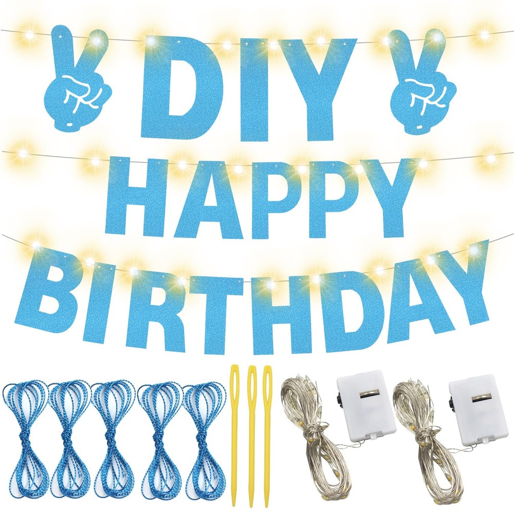 【What you can GET】167 pieces of letters and numbers Banner Kit, including 6pcs'A,B,E,I,R,T,L,M,N,O,P,S,Y' letters, 3pcs 'C,D,G,H,U,V,W,F,J,K,Q,X,' letters, 2pcs '0-9' numbers,2pcs' #,',&, !,? ',and 2 'stars, crown,snow, hearts,Yeah’ come with 5 ropes ,2 LED light strings and 3pcs Plastic Sewing Needles ; Nice combination meet your various parties decorative demands,exquisite decorations can make your party more attractive! 【HIGH QUALITY BANNER】 Personalized banner Kit are made of high quality cardstock material, won't wear or fade easily.make sure your kit is ready for long-term use.,Earth Friendly!Happy DIY!! 【PERFECT DESIGN &EASY USE 】 The personalized banner Kit is a perfect gift for you can DIY the words as you want, using attractive glitter gold color, these customizable banner letters are delicate and attractive, and improve your hands-on ability,also can be used as wall decoration. 【All OCCASIONS 】Our Customizable Banner Kit perfect for birthday, baby shower,anniversary,back to school seasons, Thanksgiving,Christmas,Halloween wedding, engagement parties, bridal showers and more party, leaving deep impression for your guests. 【100% SATISFACTION 】If you have any issue or concern on the product. It will be our great honor to serve you.Remember that our mission is to keep increasing customer satisfaction.